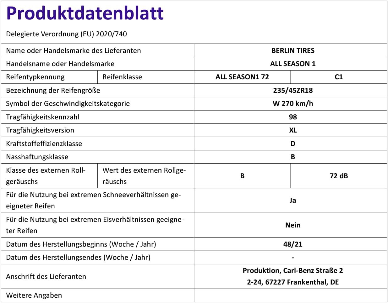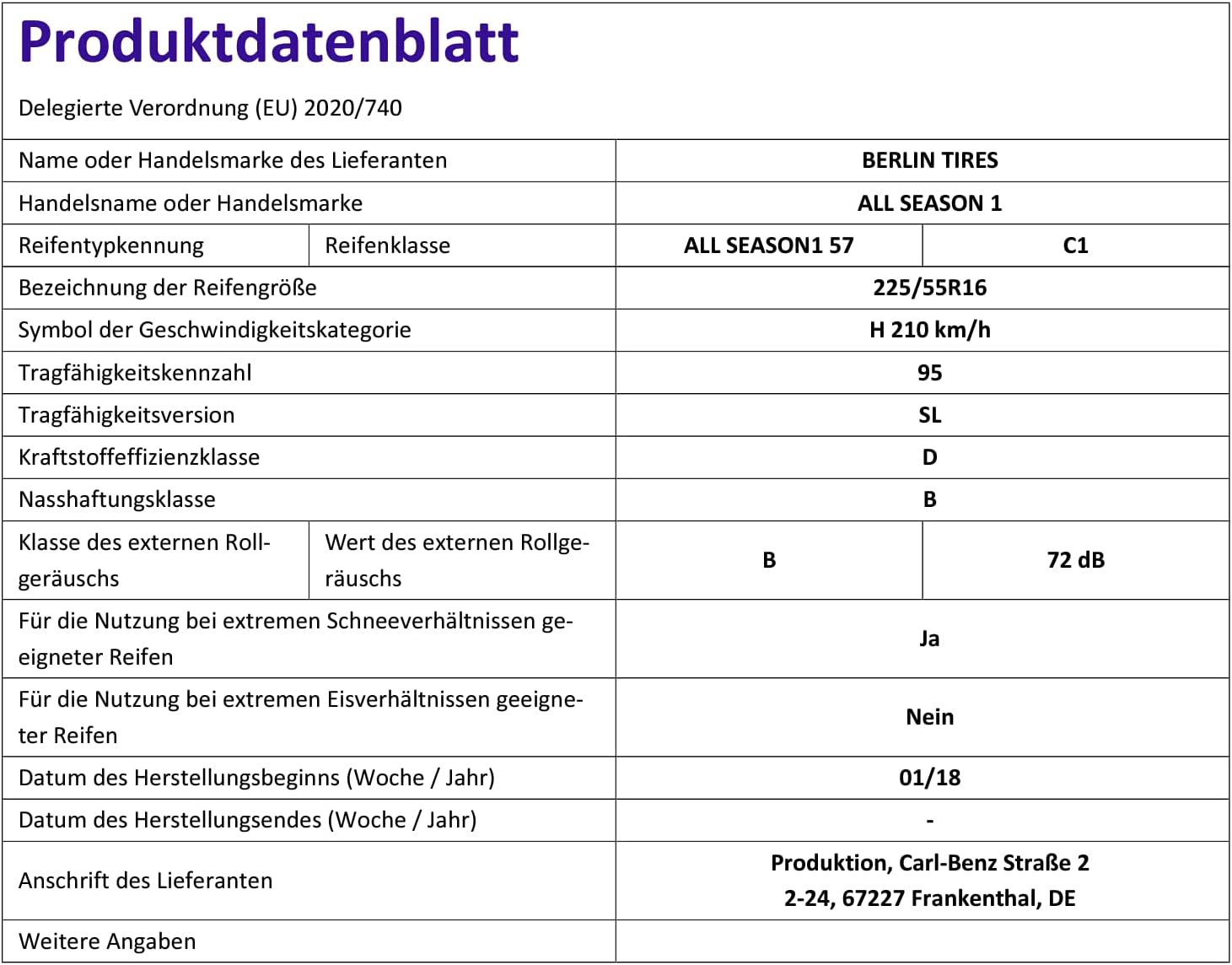 Berlin Tires All Season 1 205/60 R16 96H XL - D/B/72dB Pneumatico 4 stagioni