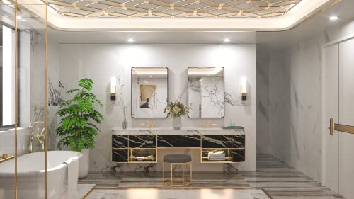 2025 Specchio TETOTE con cornice nera per bagno, specchio da parete 56x76 cm con cornice in metallo spazzolato