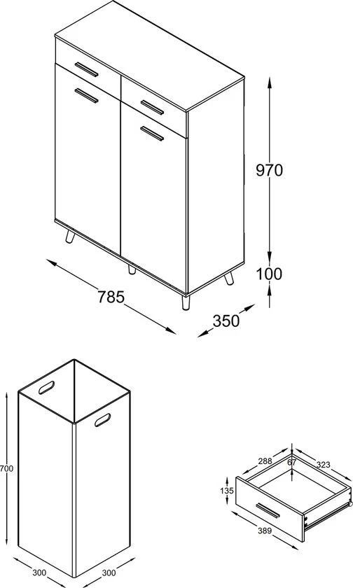 cesto della biancheria H. 97 x L. 79 x P. 35 cm rovere-bianco