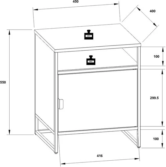 Comodino consolle H. 55 x L. 45 x P. 40 cm Bianco