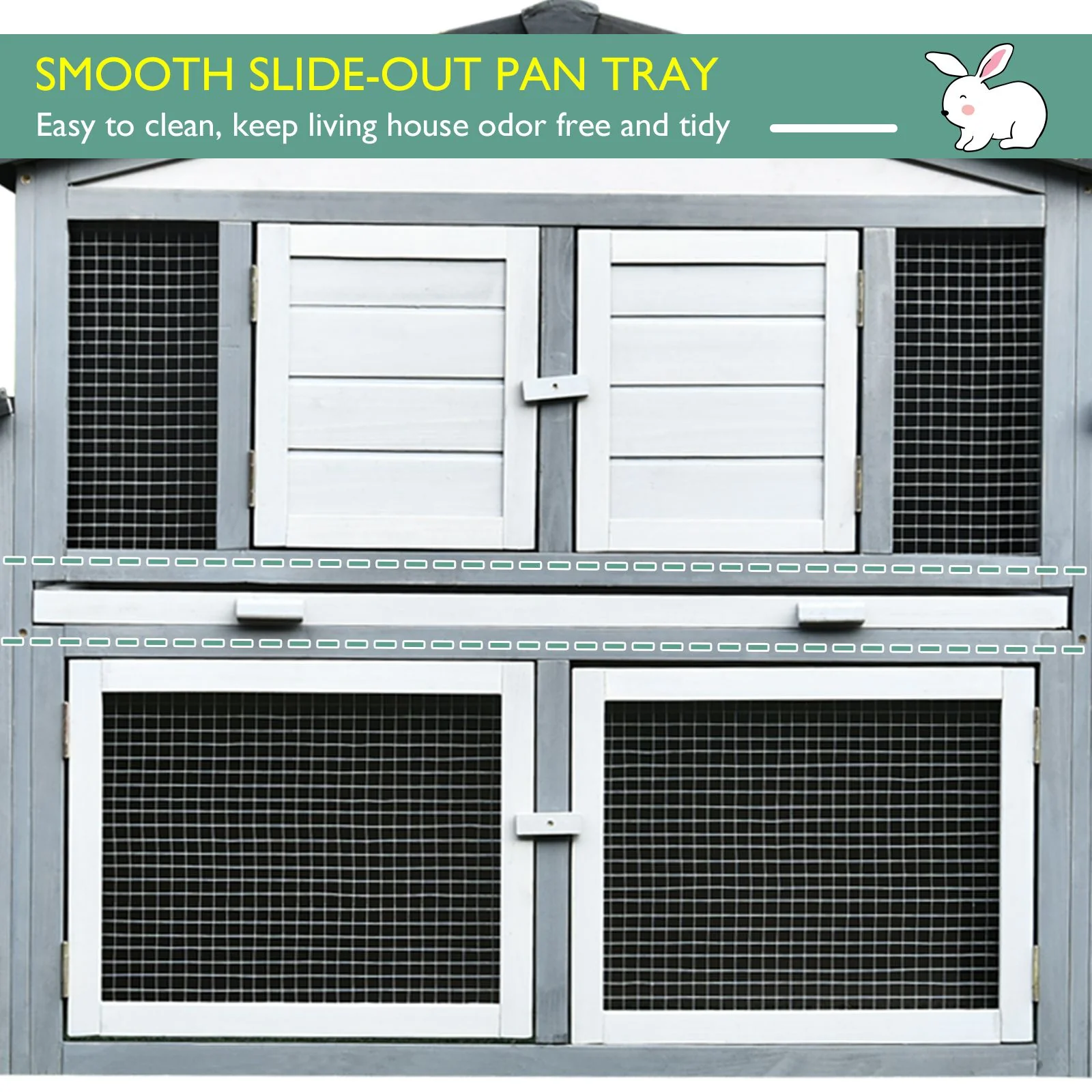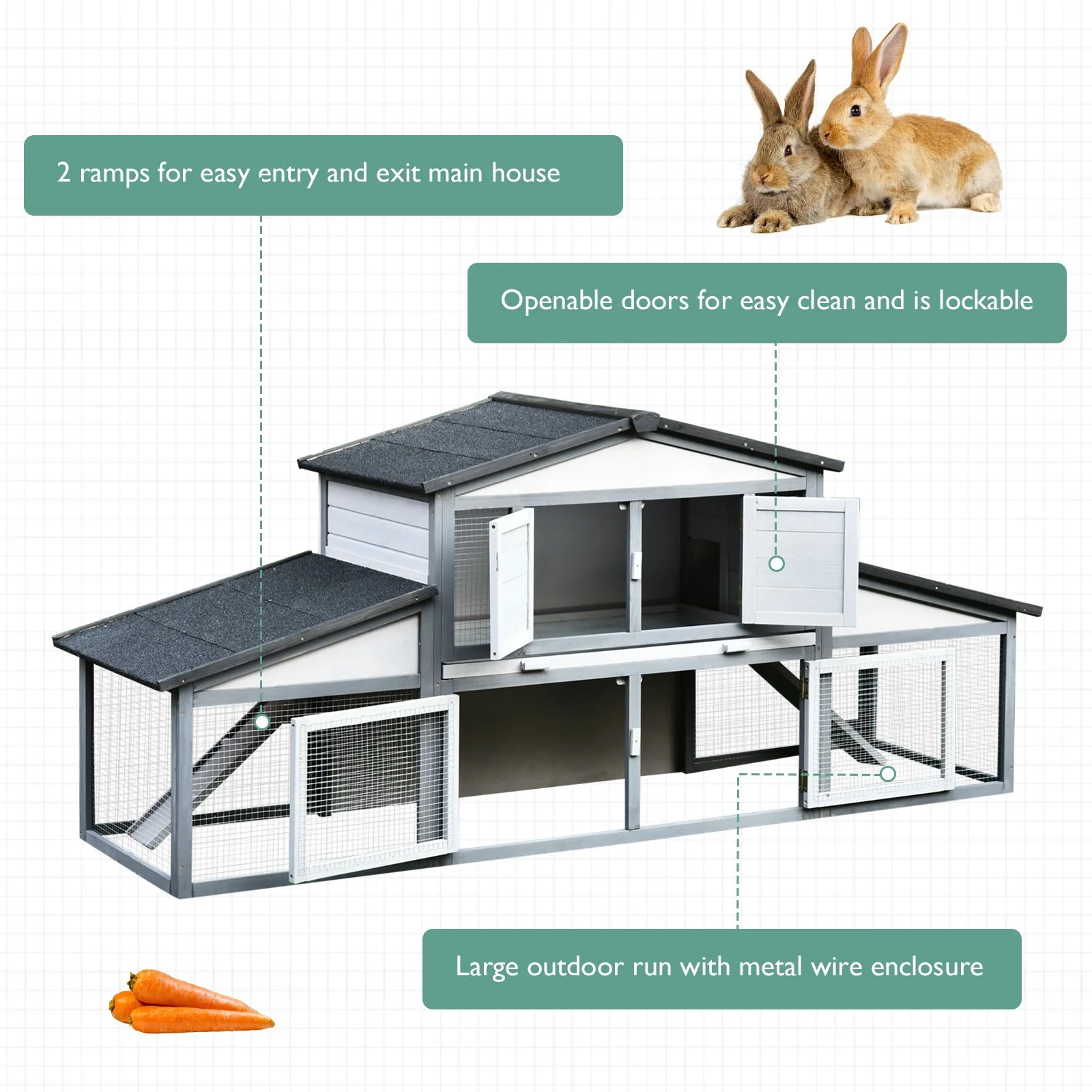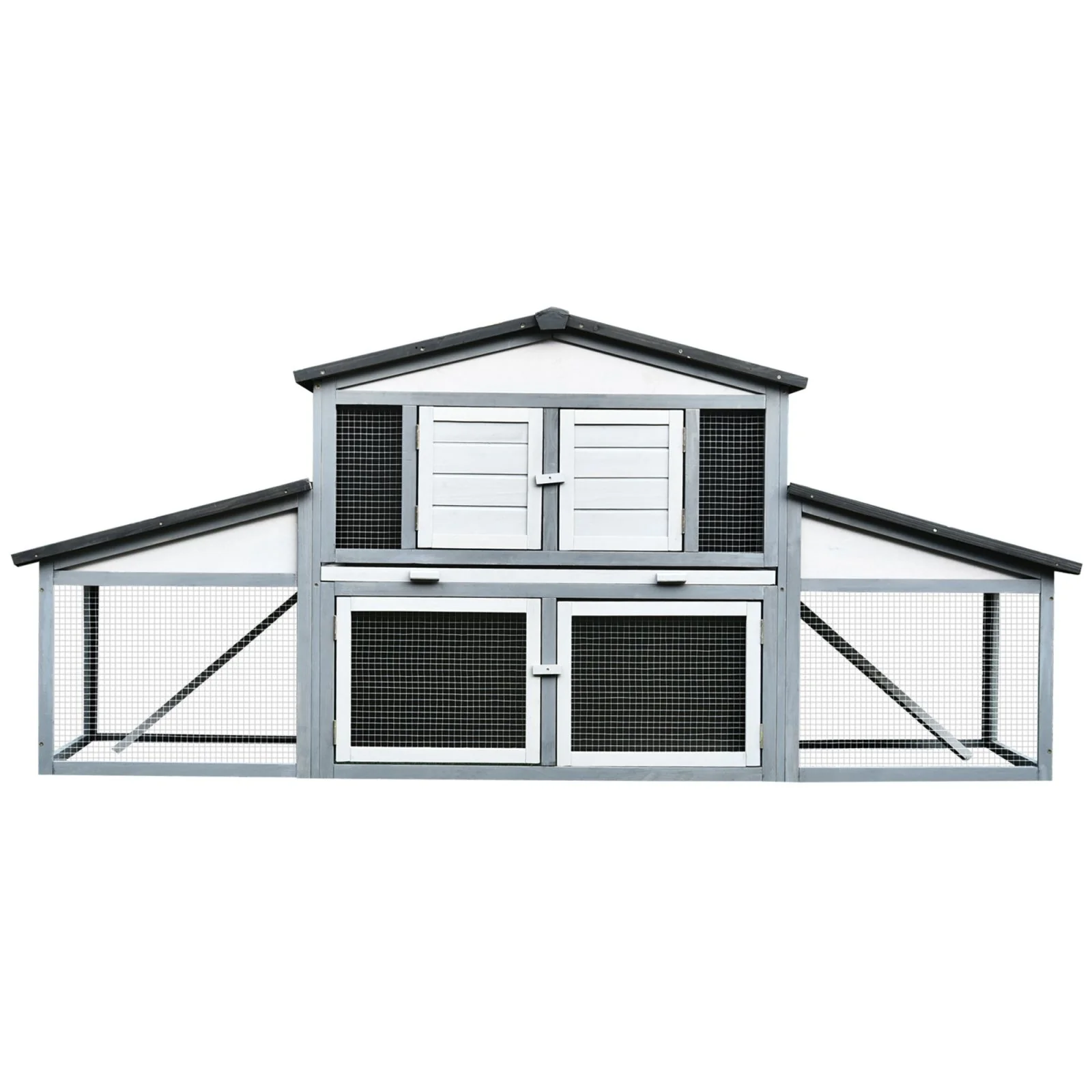 Easycomfort Conigliera da Esterno in Legno e Metallo, Gabbia per 2-3 Conigli o Roditori, Grigia e Bianca 225x70x100cm
