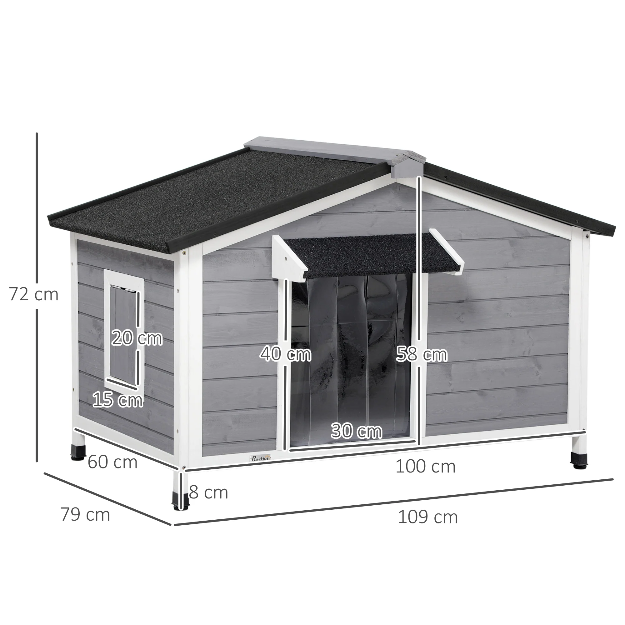 Easycomfort Casetta per Cani in Legno con Design Rialzato, Tenda Protettiva e 2 Finestre, 109x79x72 cm