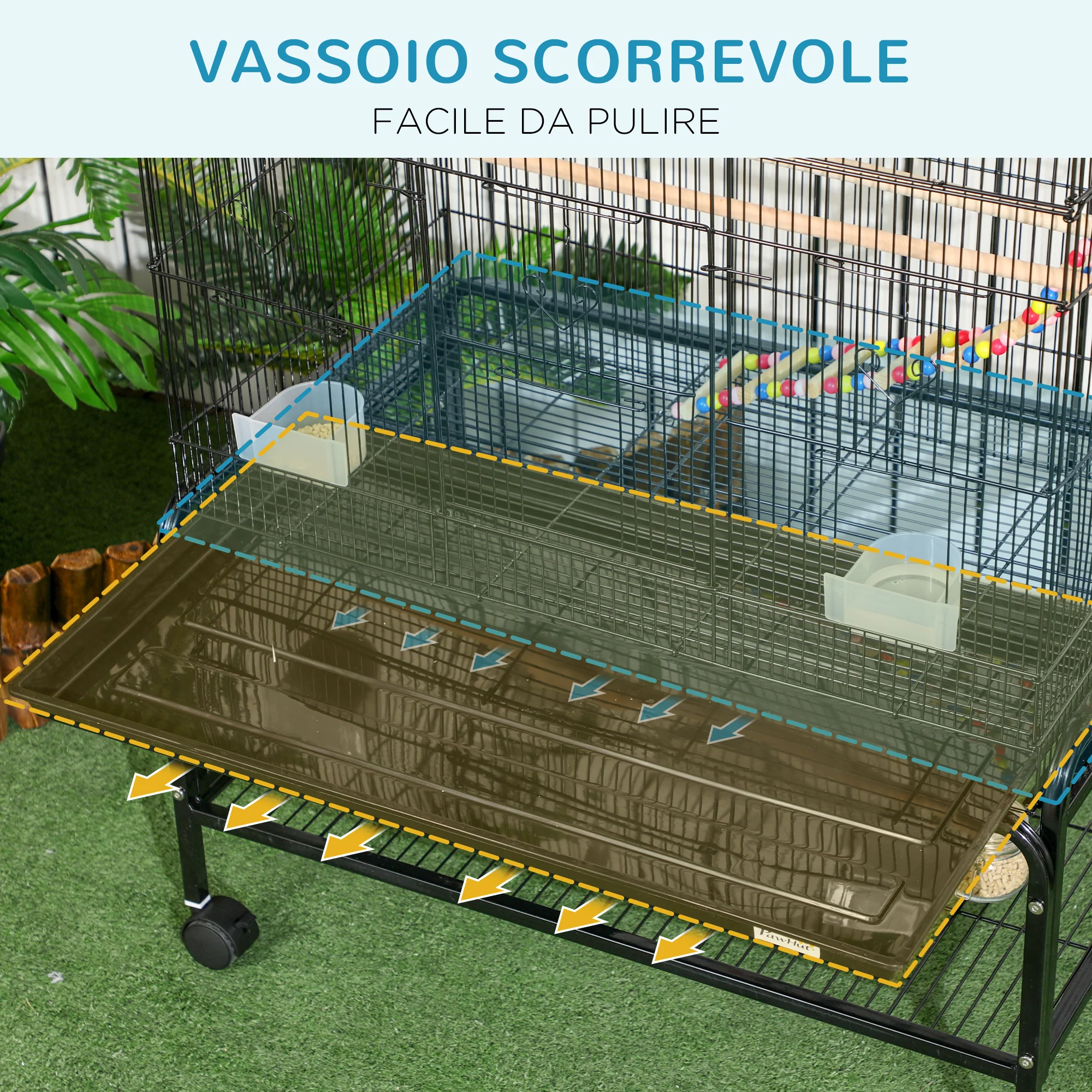 Easycomfort Gabbia per Uccelli in Acciaio con Posatoi, Giochi, Contenitori per Cibo e Vassoio, 79x49x133 cm, Nero