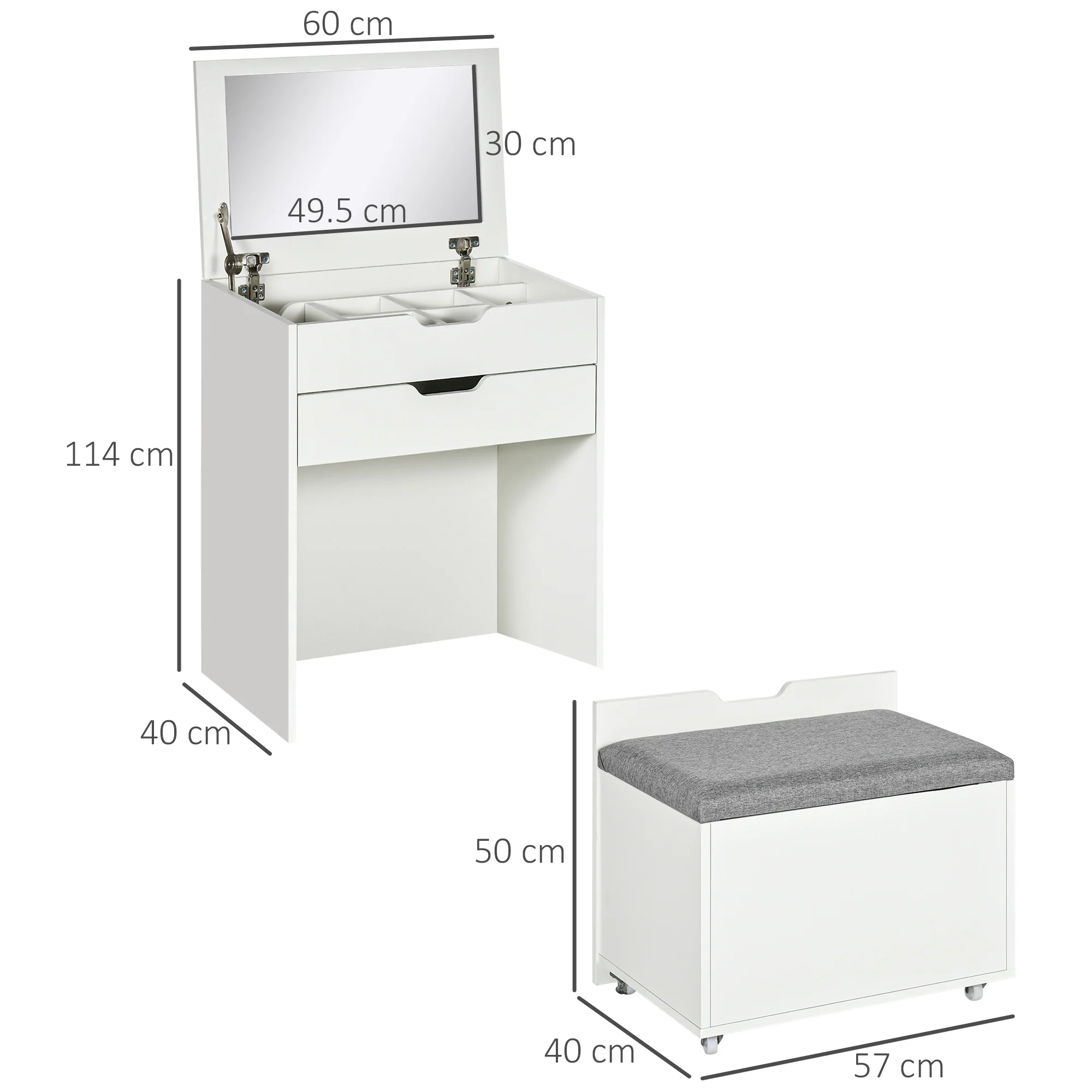 Easycomfort Toeletta da Camera con Specchiera, Cassetto e Sgabello Abbinato in Legno, Bianco