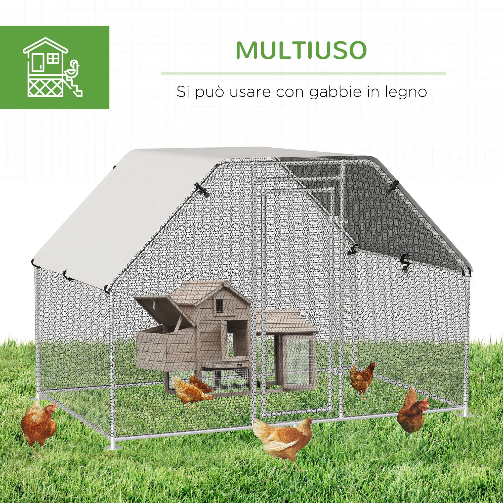 Easycomfort Recinto per Galline in Metallo Galvanizzato e Tessuto Oxford con Porta con Blocco 280x193.5x195 cm