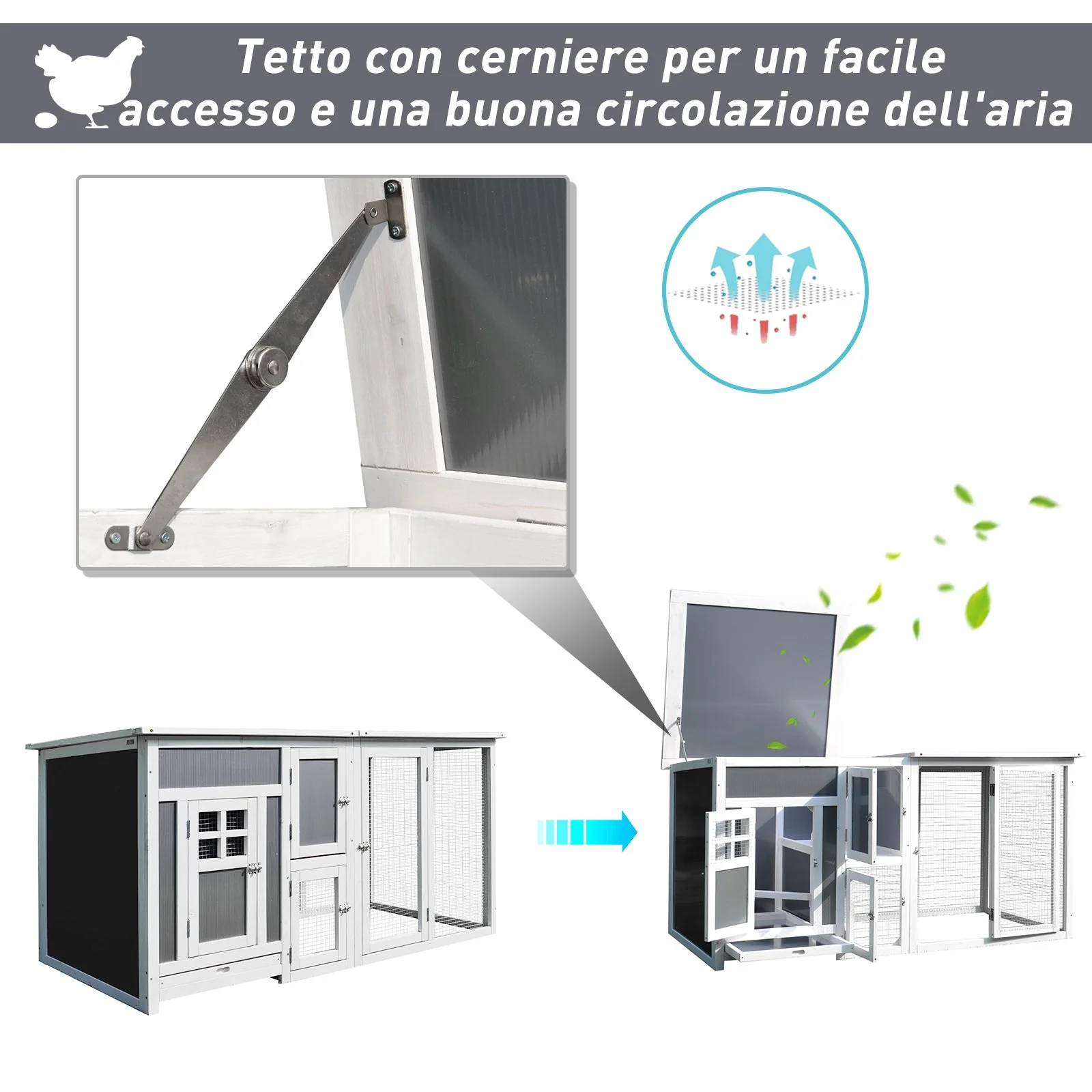 EasyComfort Pollaio per Galline Ovaiole da Esterno con Tetto Impermeabile e Zona di Corsa, Nidificazione in Legno, 160x75x80 cm, Grigio e Bianco