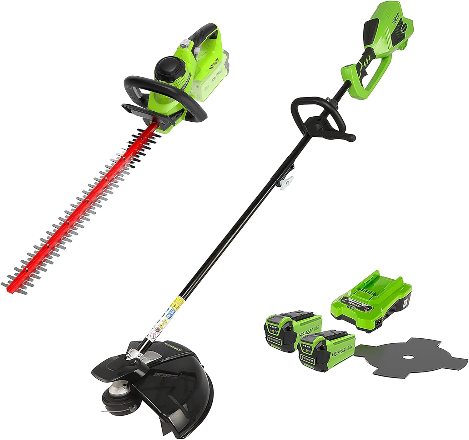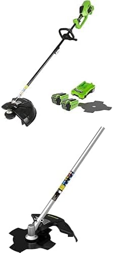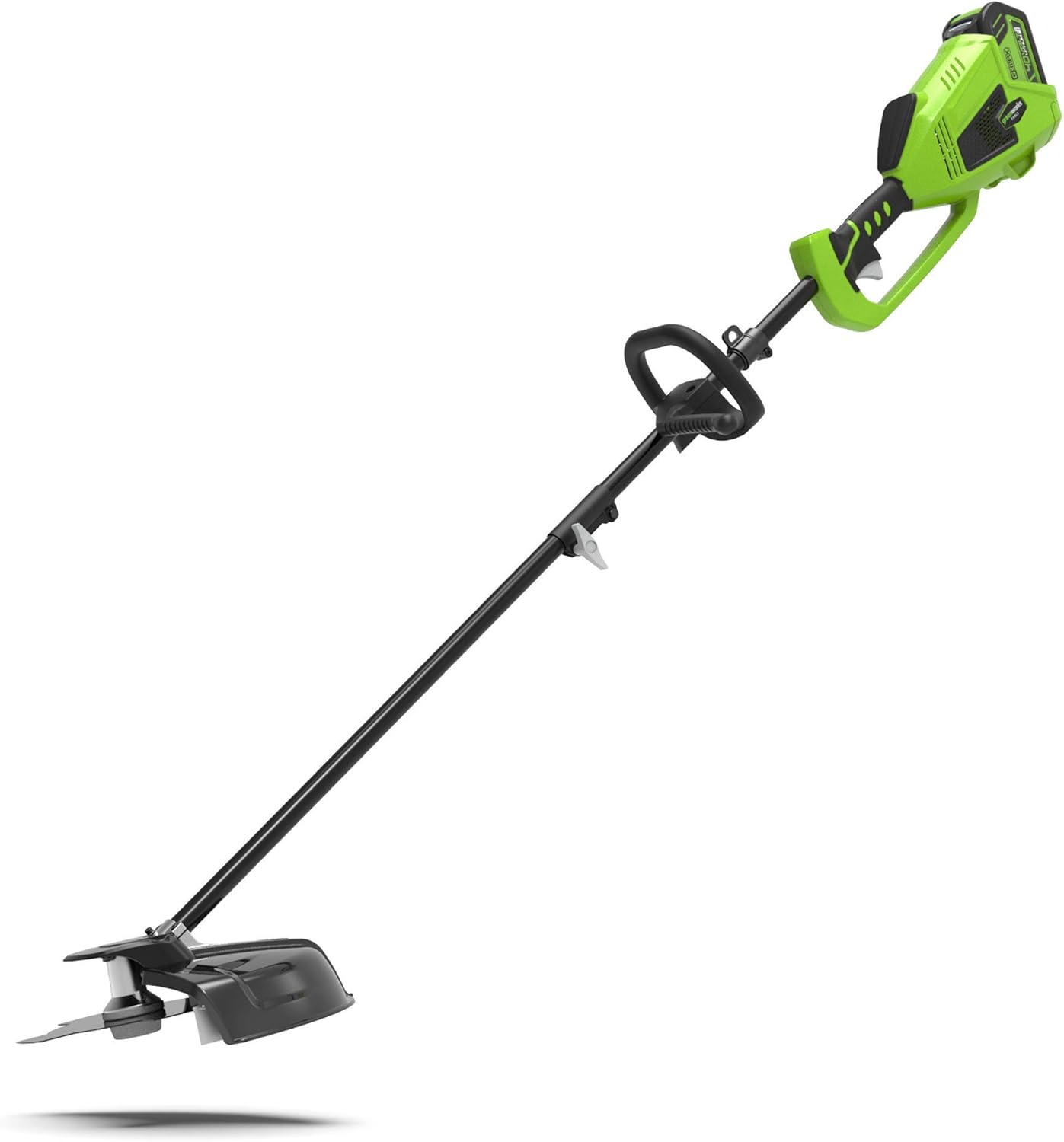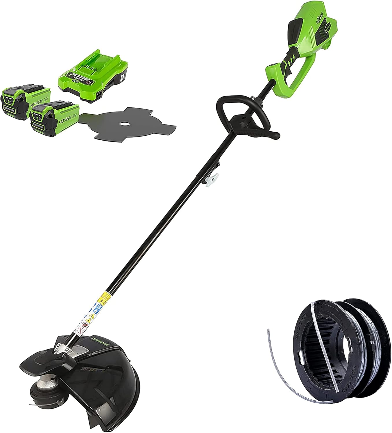 Greenworks 40V Decespugliatore a Batteria con motore Brushless, Imbracatura, Altezza Regolabile, Ampiezza Taglio 40cm, Filo Nylon 2mm, Lama 25cm, 2 Batterie 40V e Caricabatterie GD40BCK2X