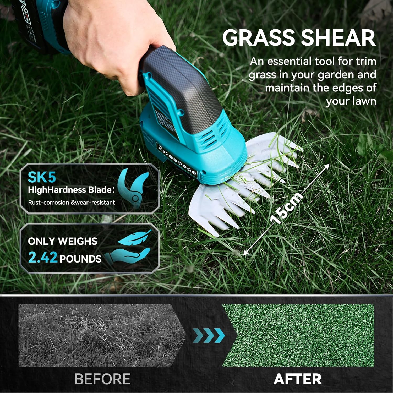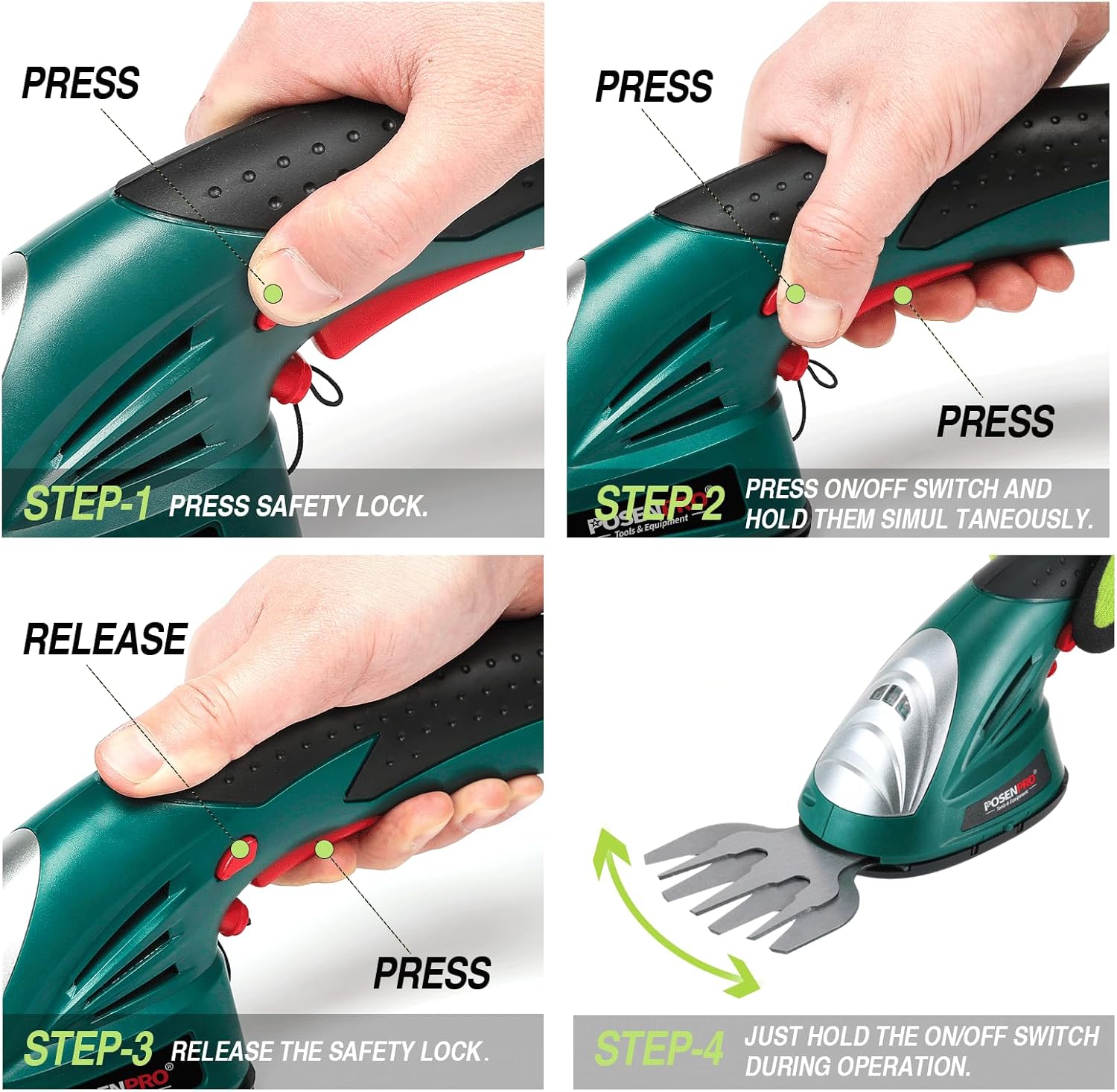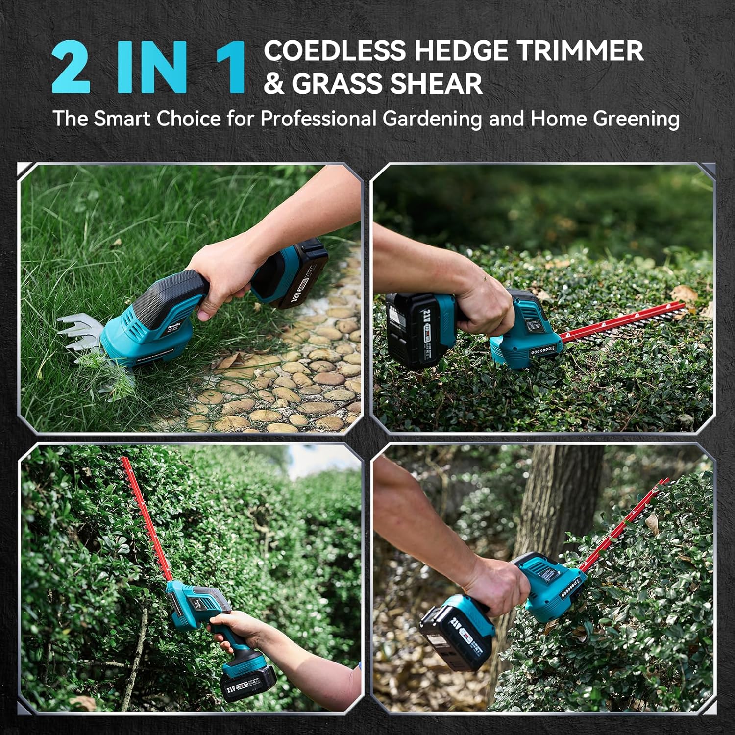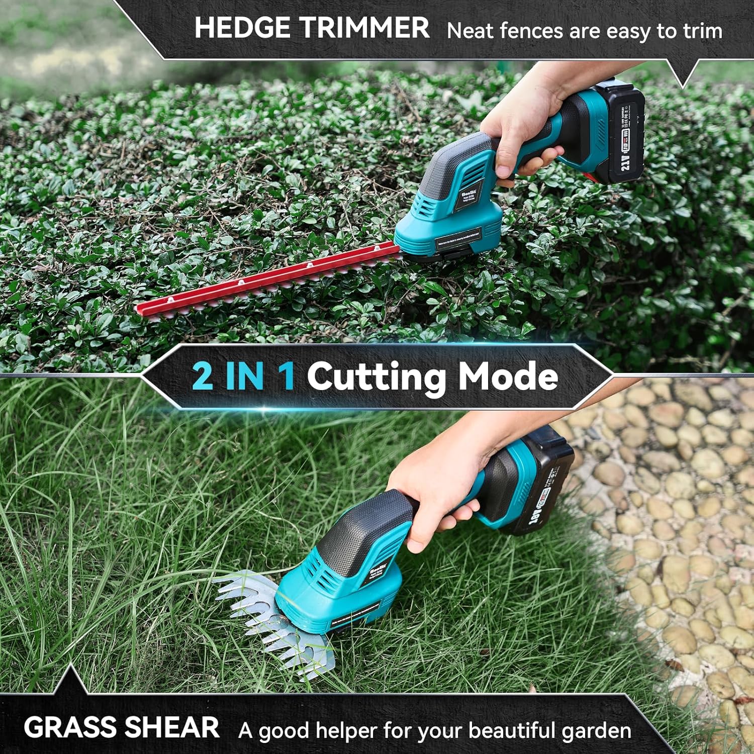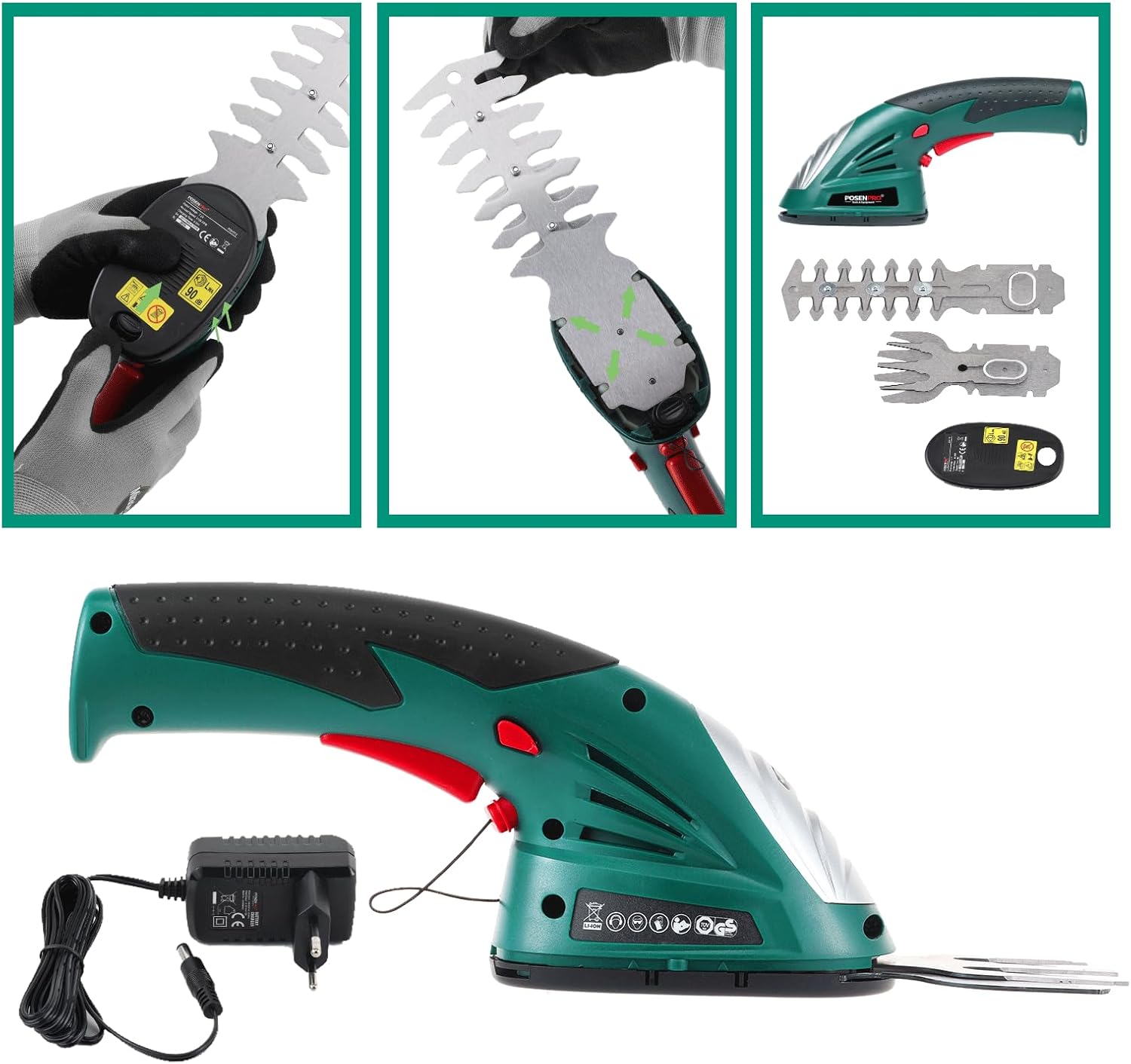 POSENPRO 7.2V Hedge Trimmer, Electric Shears, 2 in 1 Cordless Shears/Hedge Trimmer, Built-in 1.5Ah Battery, 2 Blades, Electric Hedge Trimmer with Safety Key, Grass Trimmer/Shrub