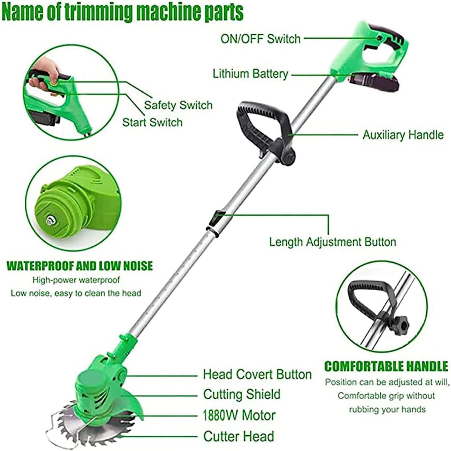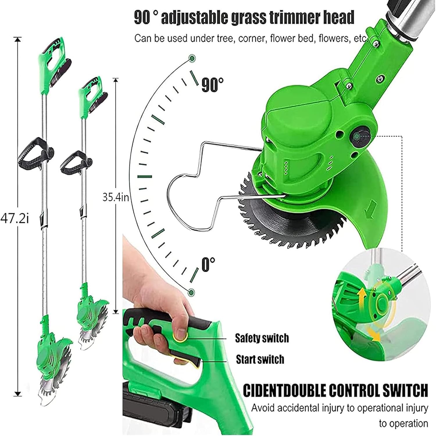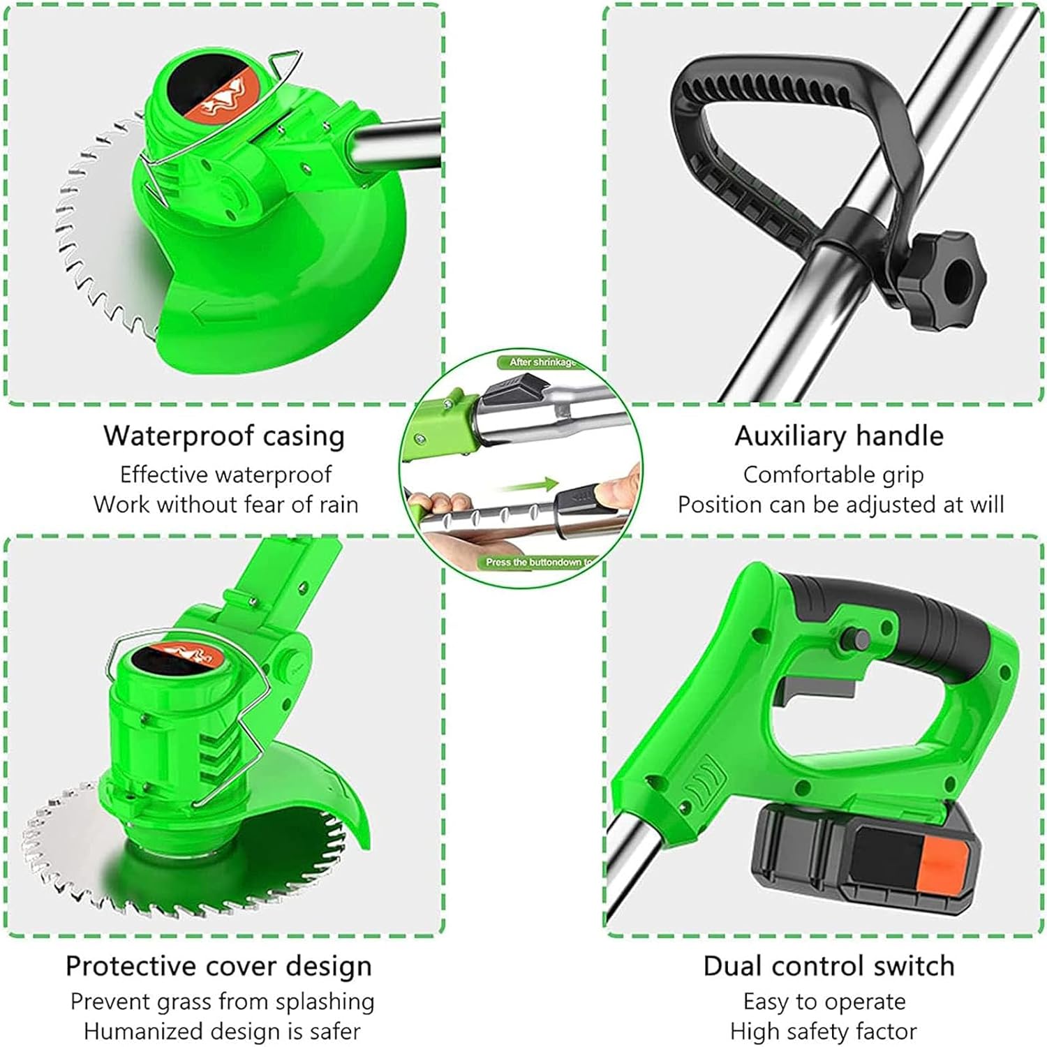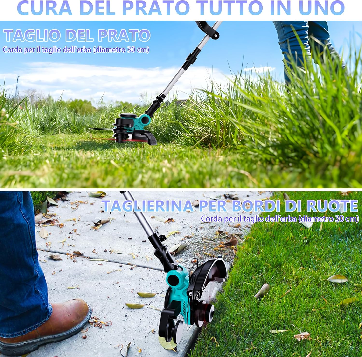 Tagliabordi a Batteria 24V Decespugliatore Elettrico con 2*Batteria e Caricatore, con 3 Tipi di Lame,Testata e Maniglia Telescopica per Prato Campo da Giardino