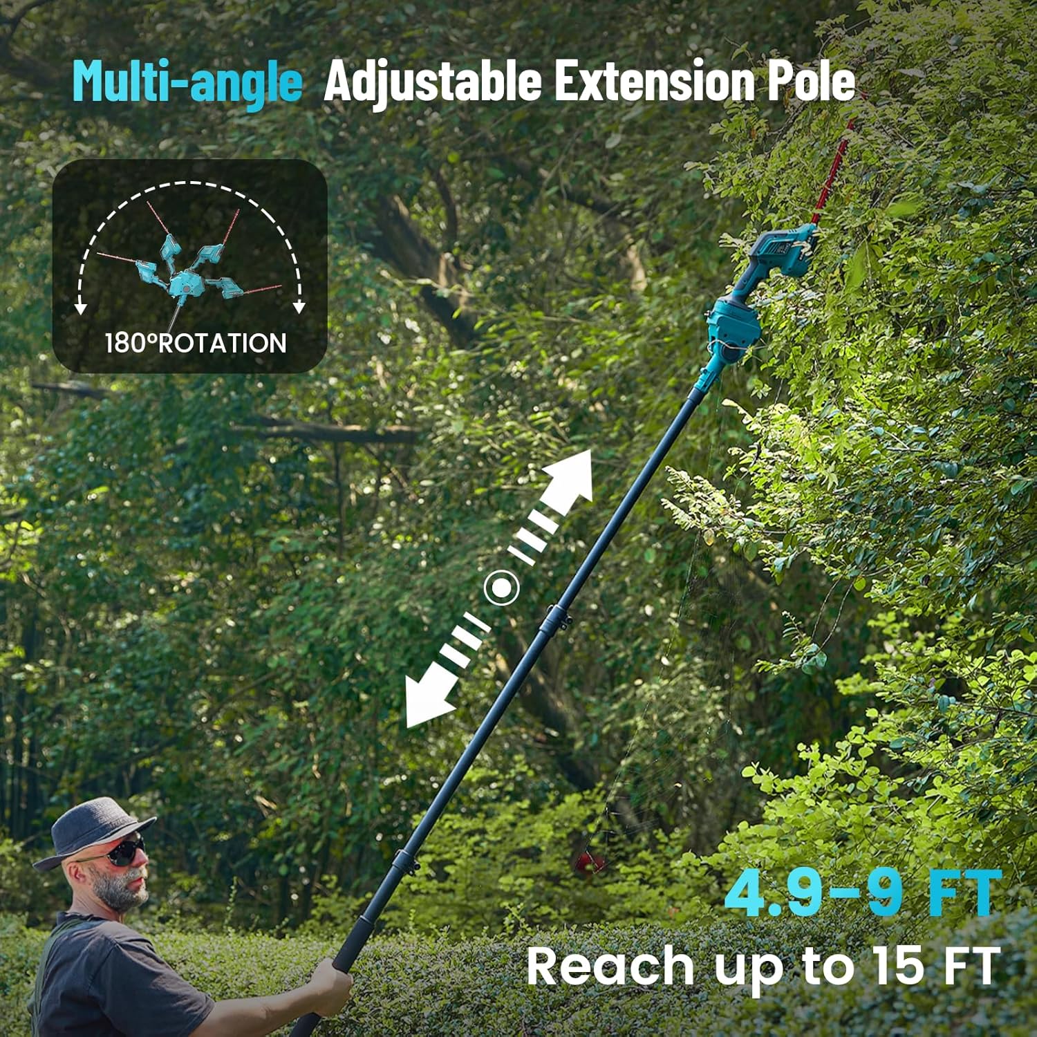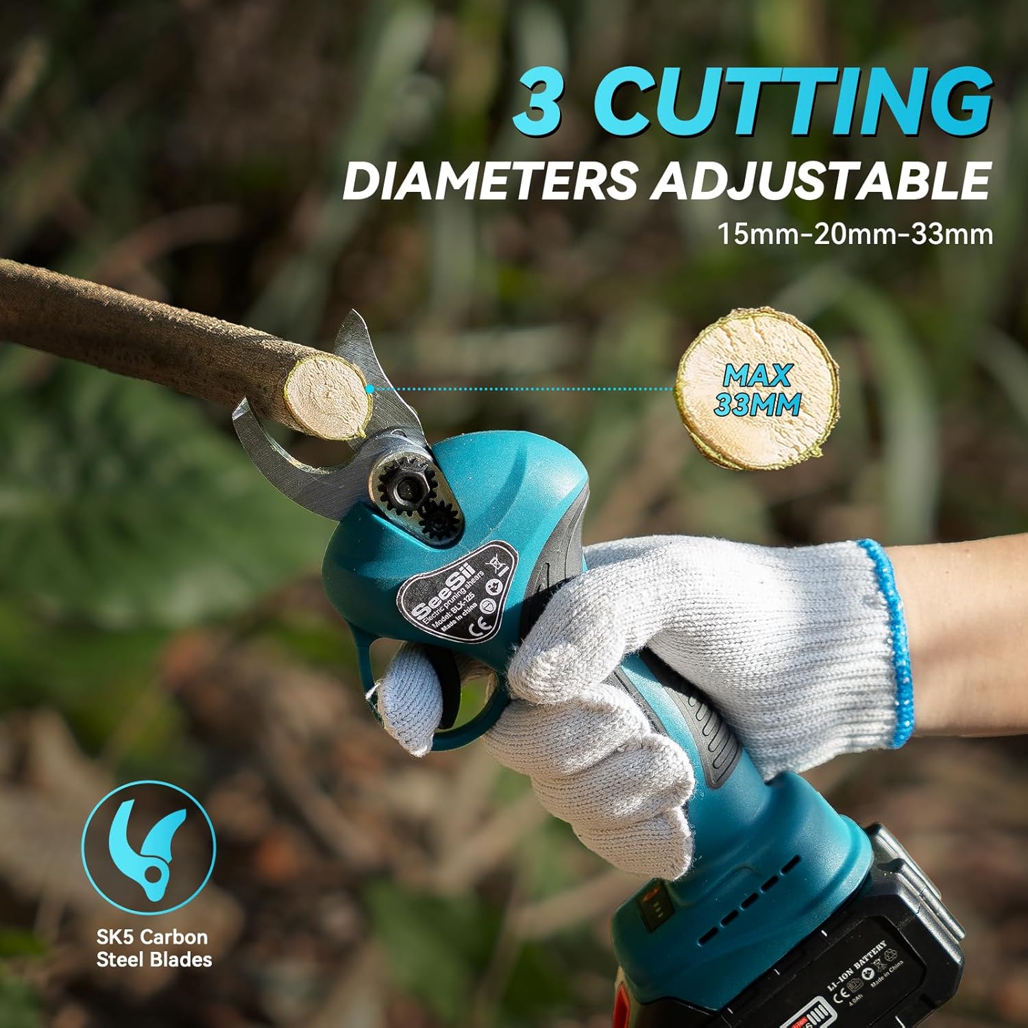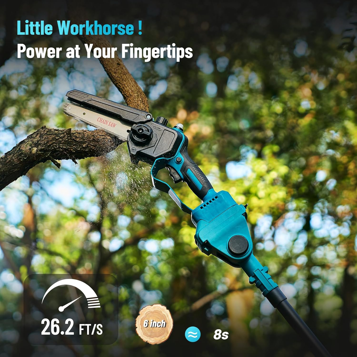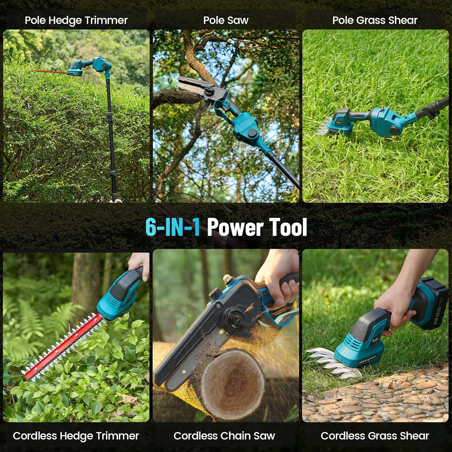 SEESII P6 Combo 6 Pollici Motosega a Batteria Telescopica & 33 mm Forbici Potatura a Batteria, 4-in-1 Kit Motosega e Forbici con 2 * 4000 mAh Batterie, Portata Massima Fino a 4,57 m