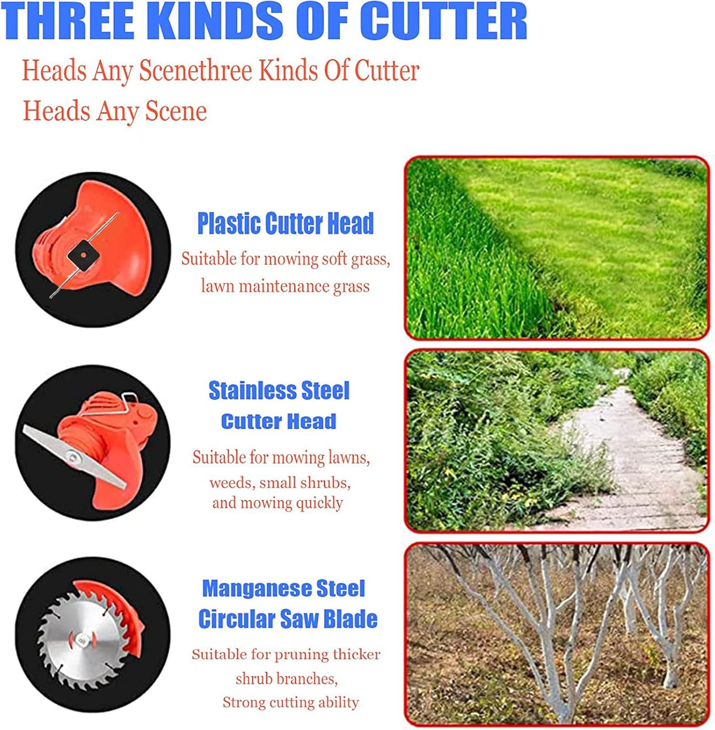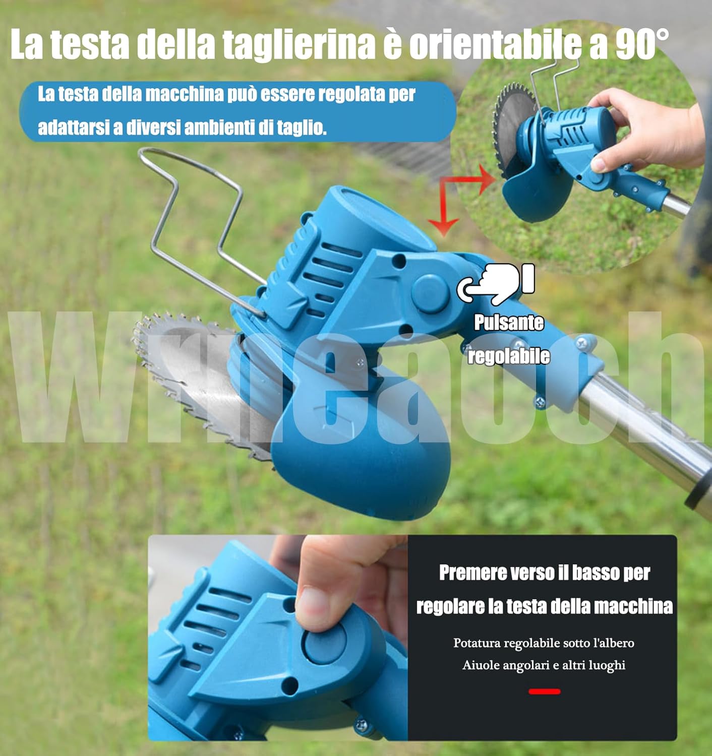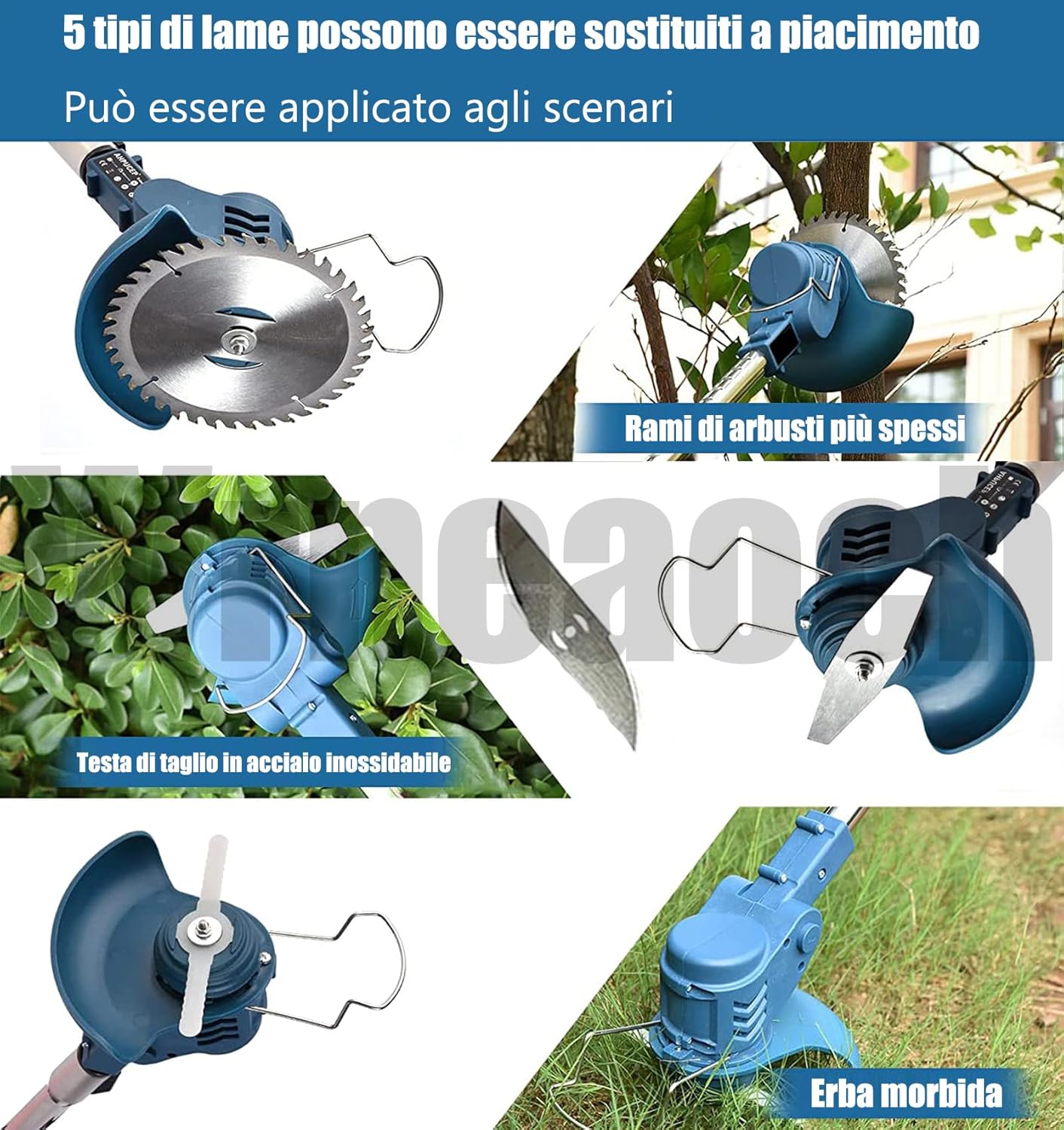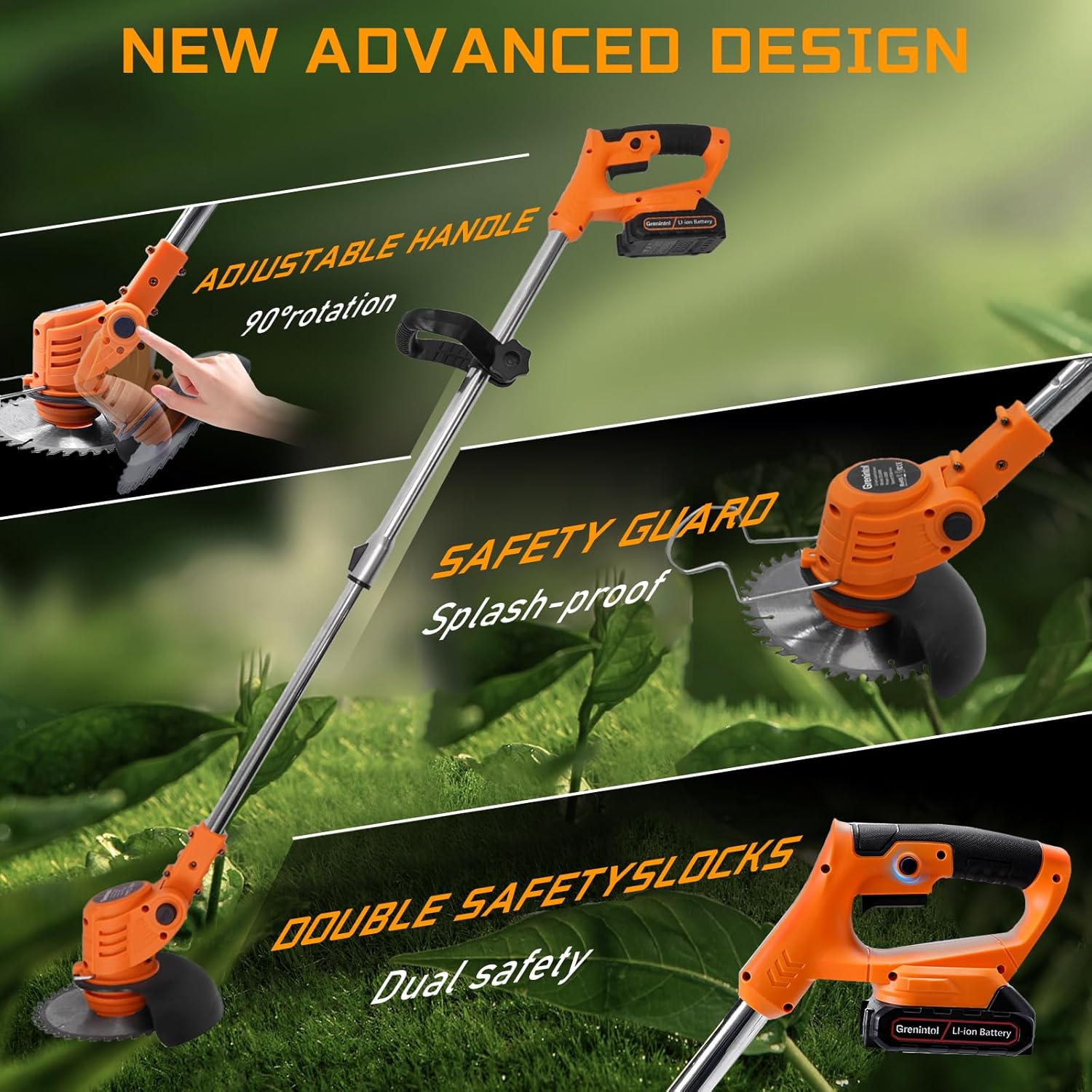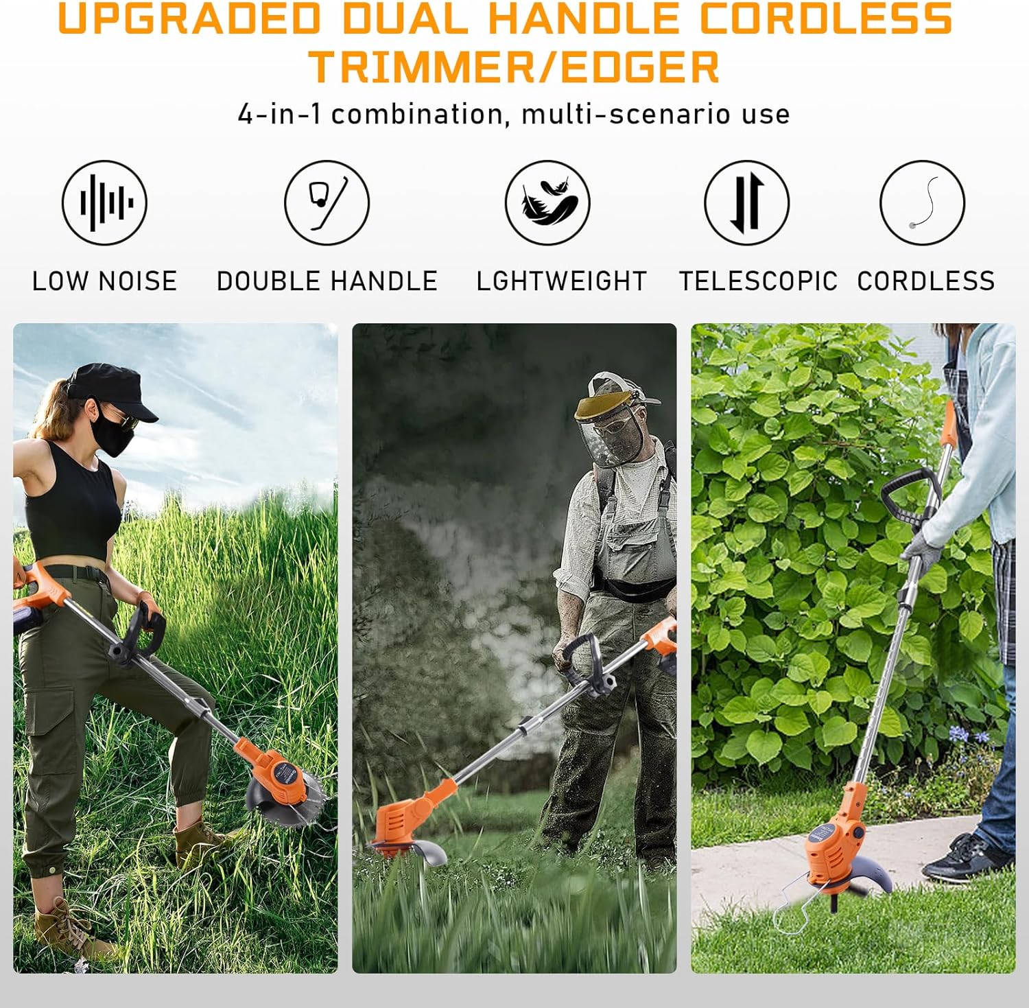 Decespugliatore a batteria,Tagliaerba a Batteria, Decespugliatore Elettrico, Tagliabordi a Batteria con 2 batterie, 4 Tipi Lame,Testata Regolabile e Maniglia Telescopica Tagliaerba per Giardino