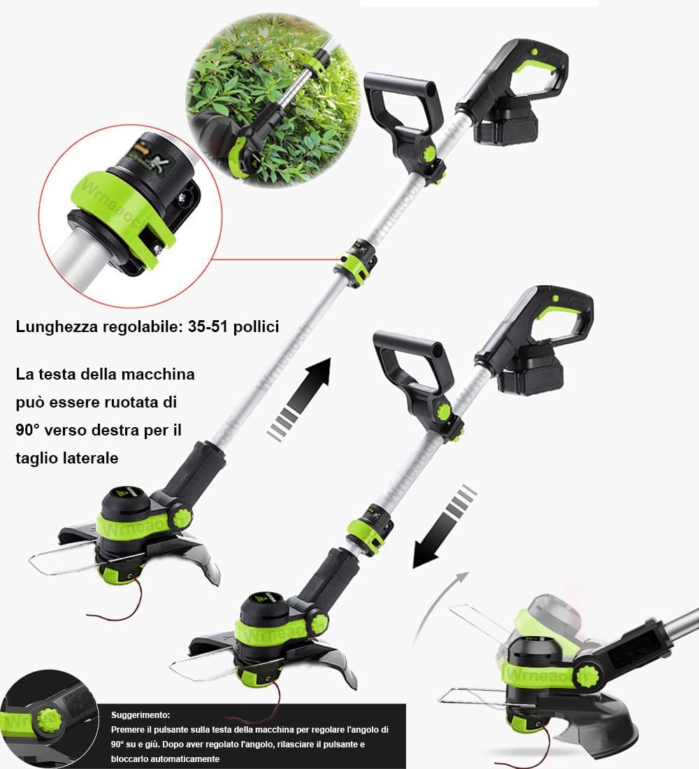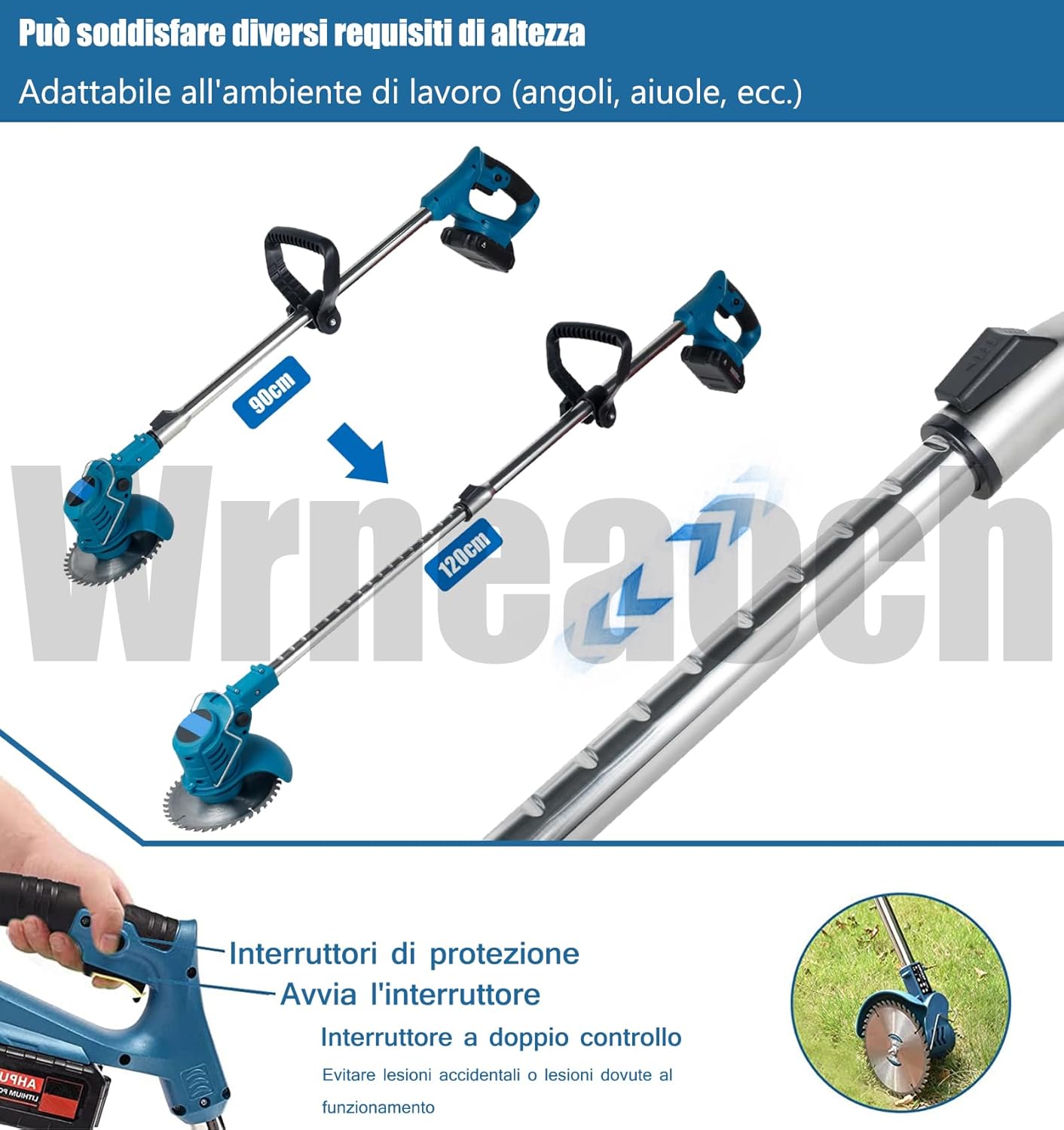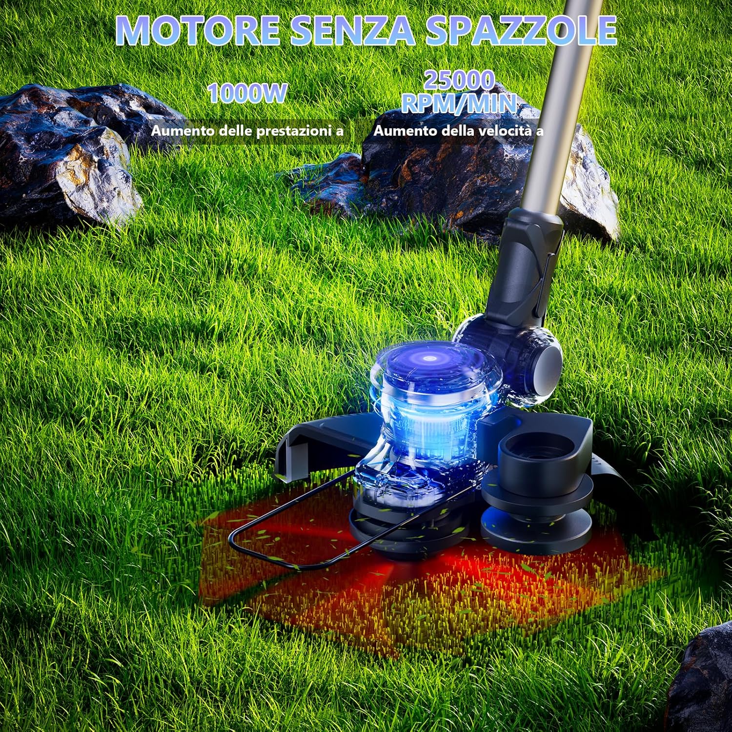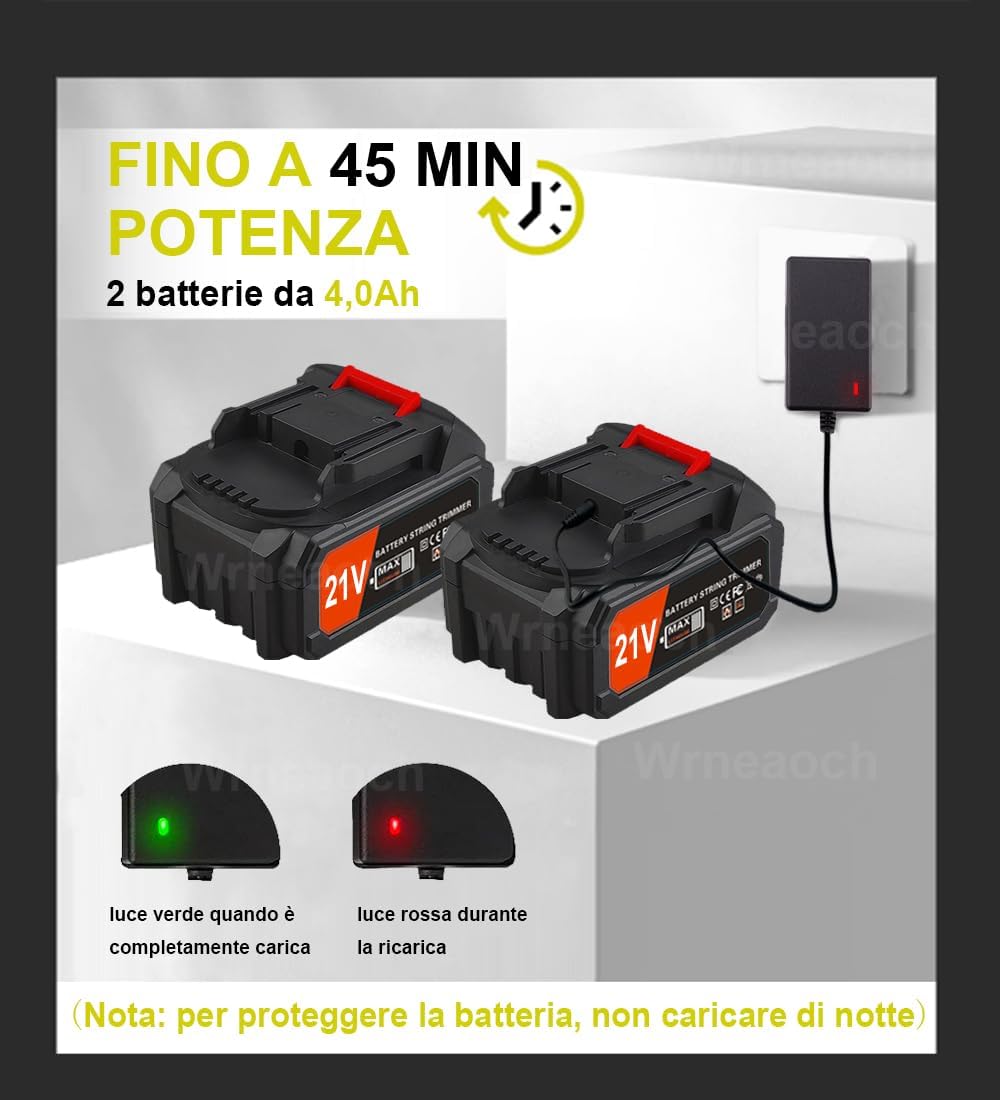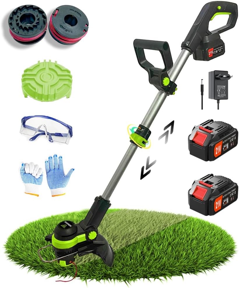 Wrneaoch Tagliabordi Decespugliatore a Batteria 21V Decespugliatore Elettrico con 11.000 RPM e motore da 750W con 2 Batterie da 4,0 Ah è Ideale per Tagliare l'erba in Modo Efficace e Senza Sforzo