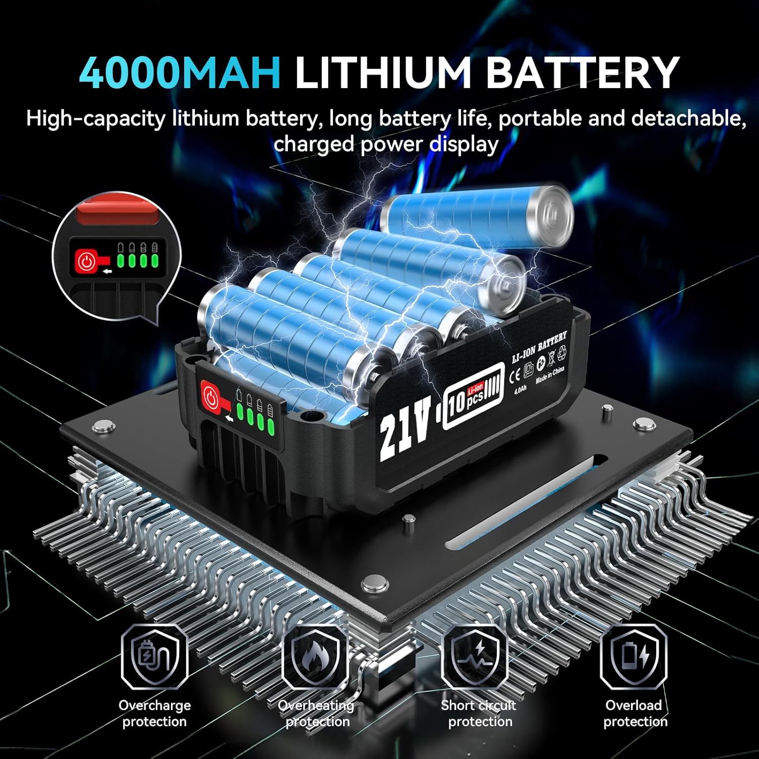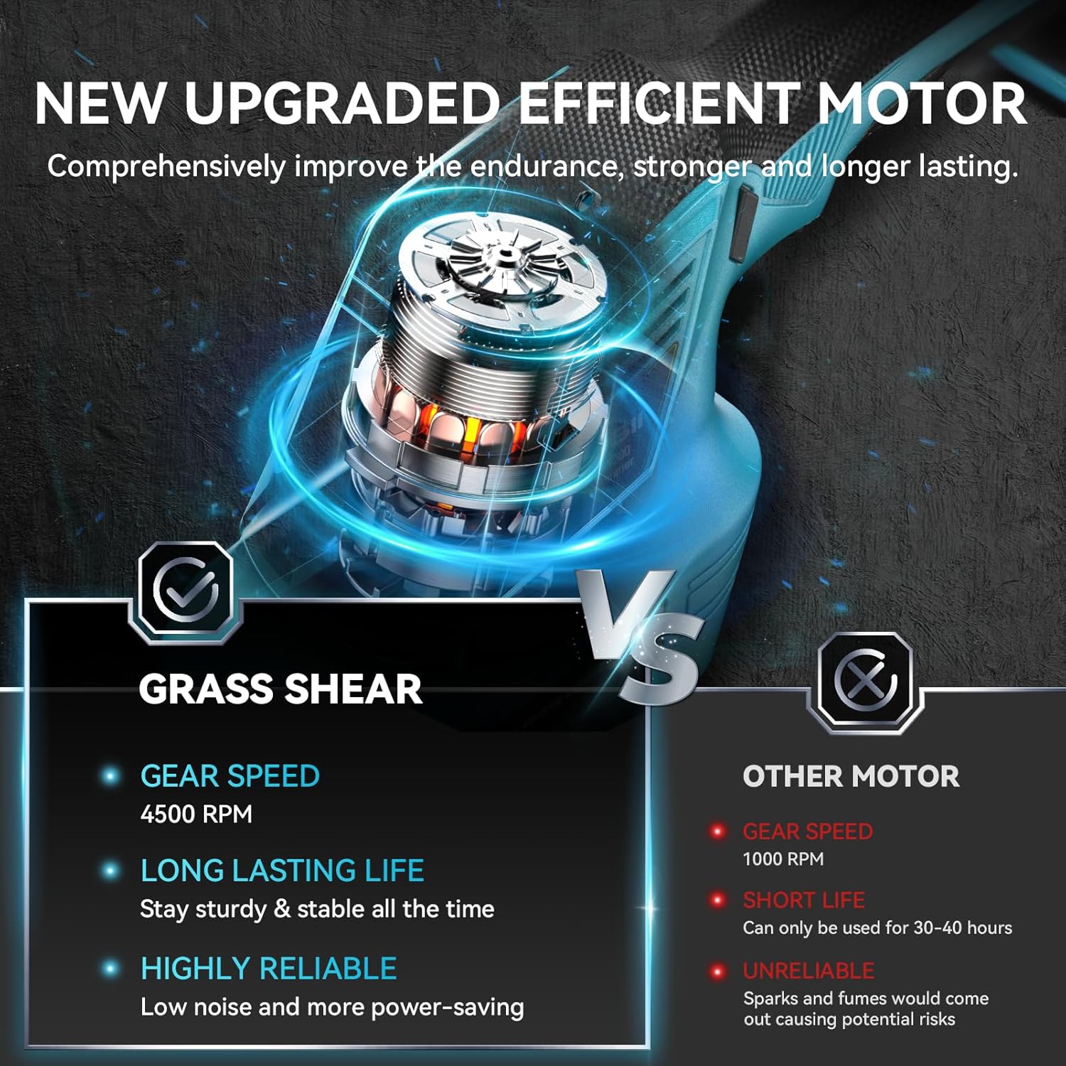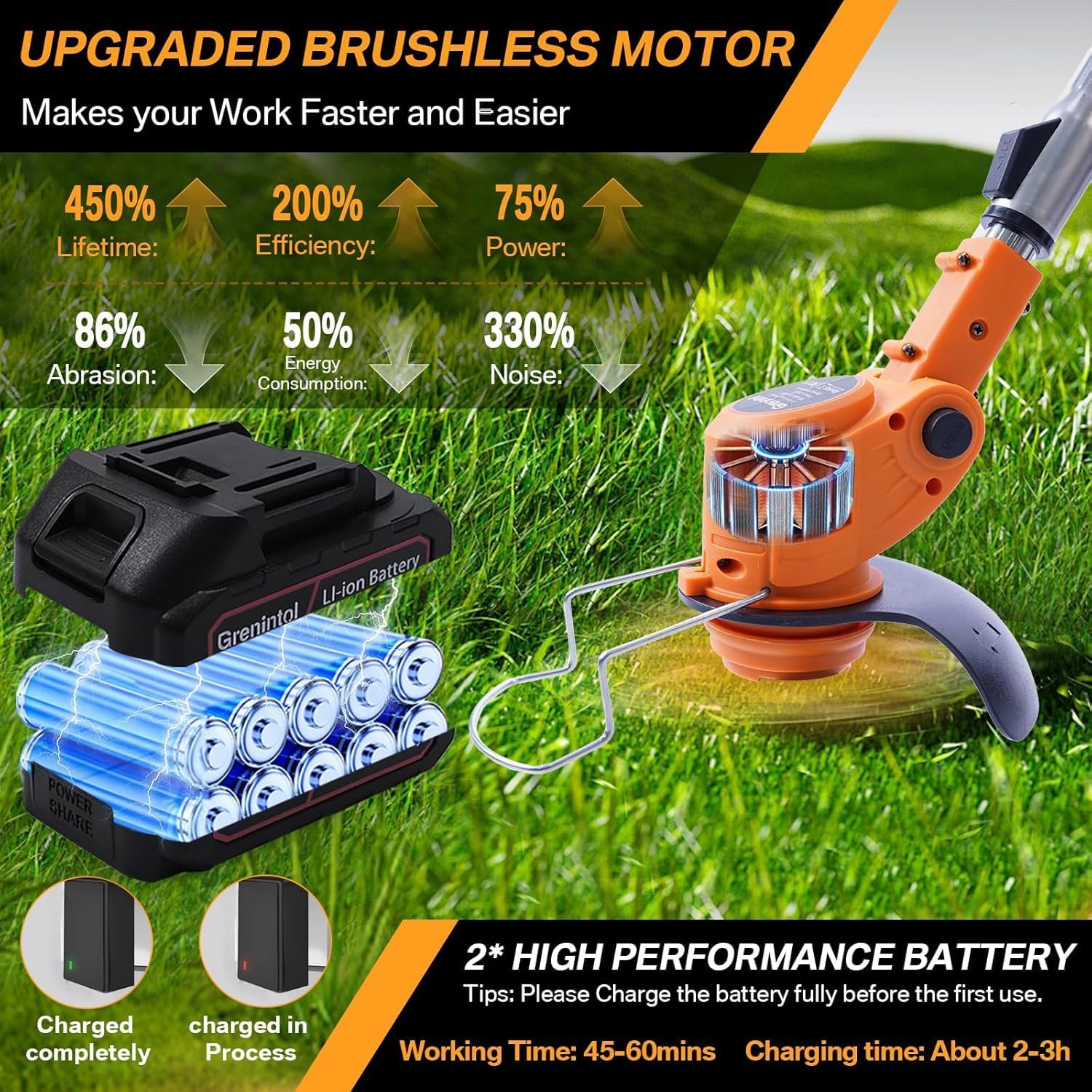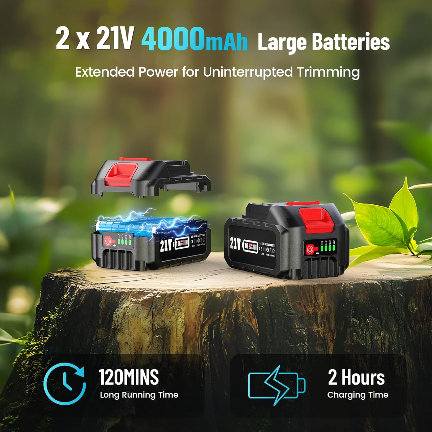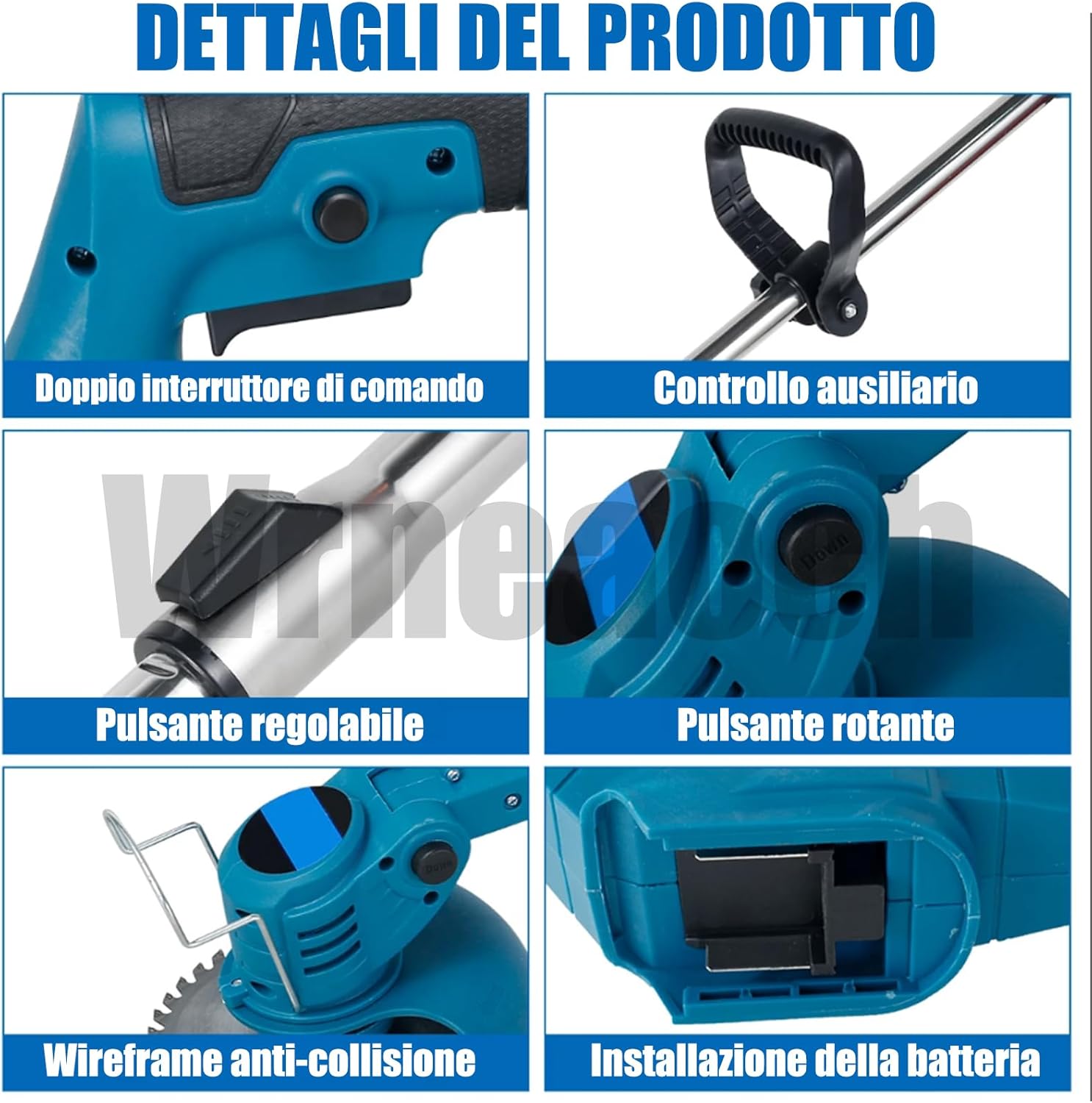 Wrneaoch Tagliabordi Decespugliatore a Batteria 21V Decespugliatore Elettrico con 11.000 RPM e motore da 750W con 2 Batterie da 4,0 Ah è Ideale per Tagliare l'erba in Modo Efficace e Senza Sforzo