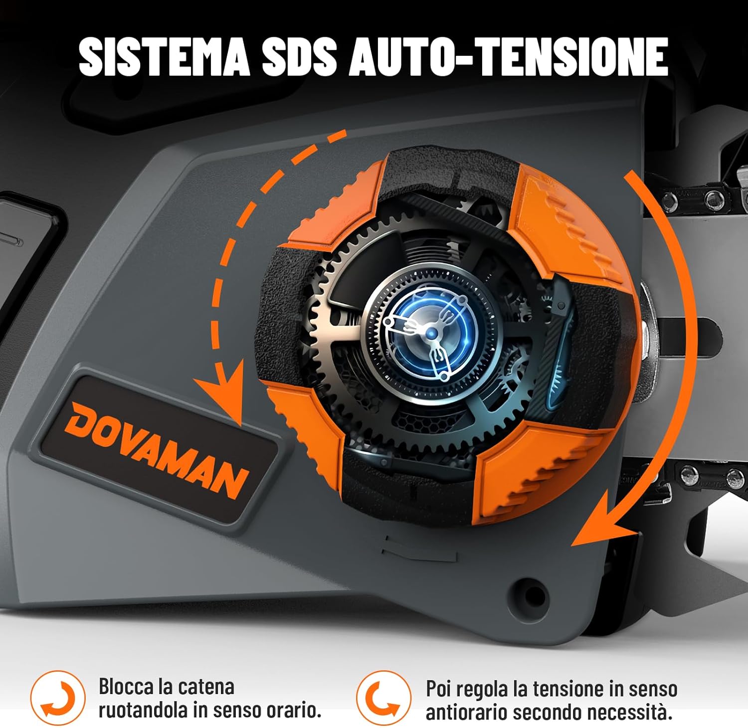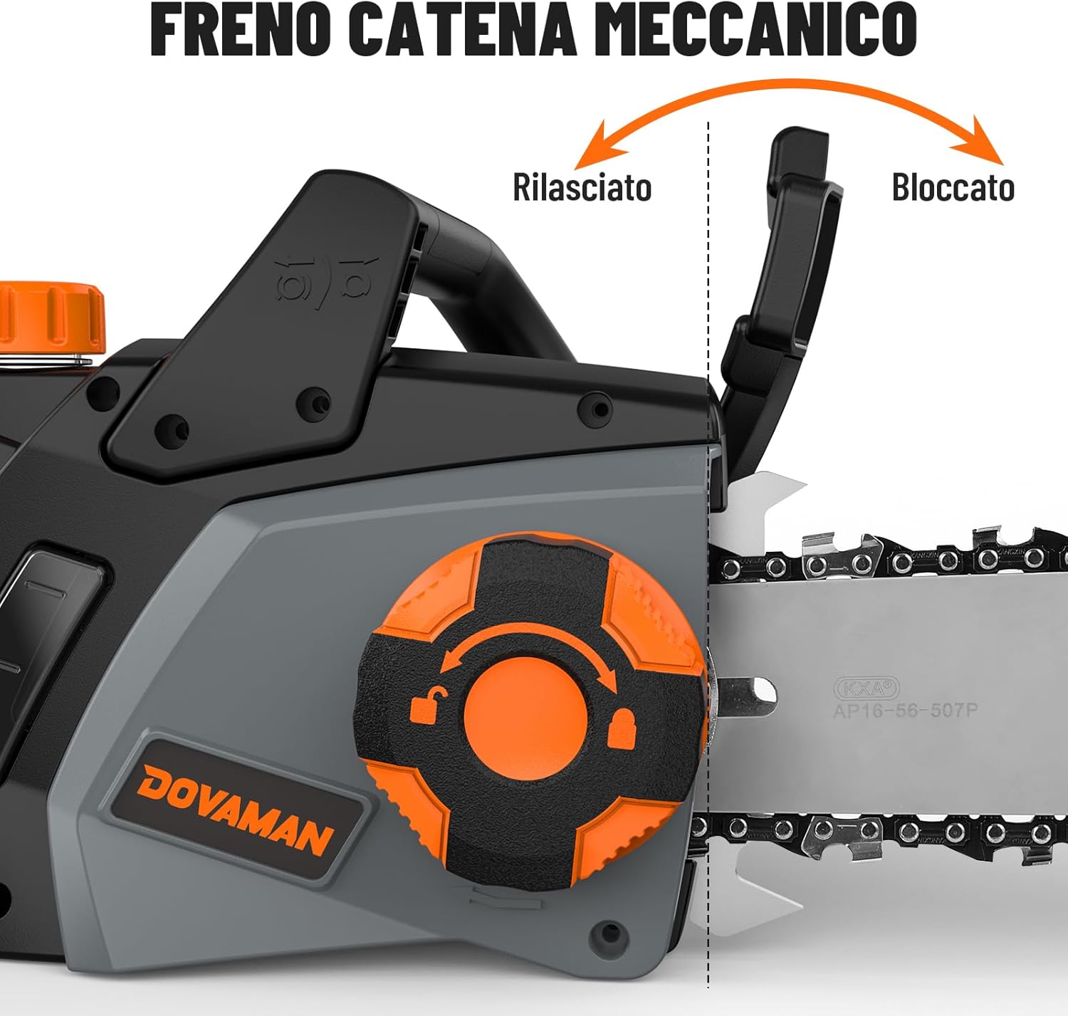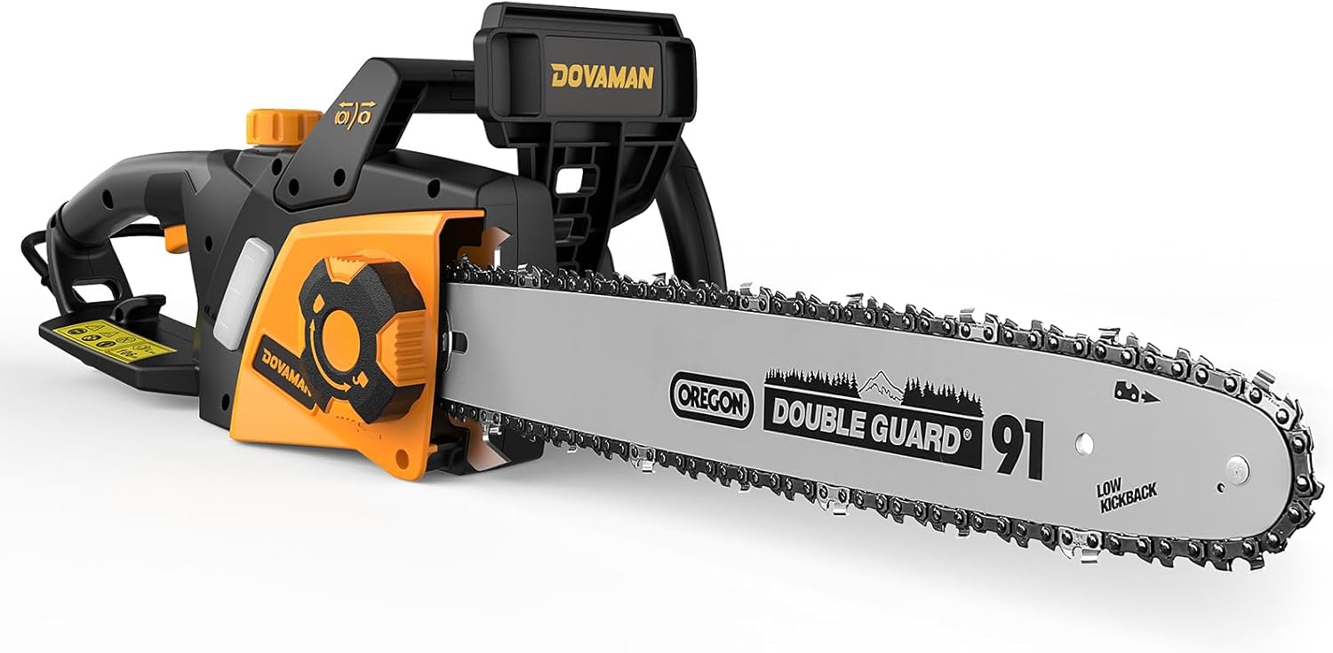 DOVAMAN 2400W Motosega Elettrica, 40cm Barra e Catena Oregon, Tensionamento Senza Attrezzi, Freno Sicurezza, 1 Catena Oregon e 1 Extra, Ideale per Legna da Ardere, Potatura e Uso in Giardino - DCS01A