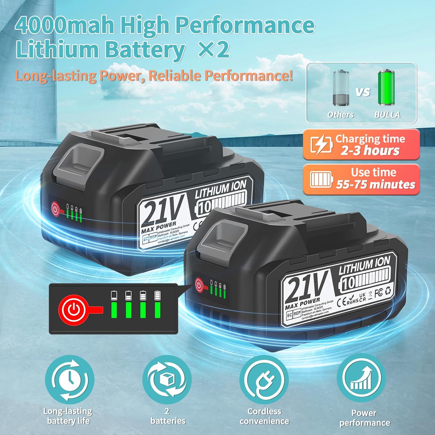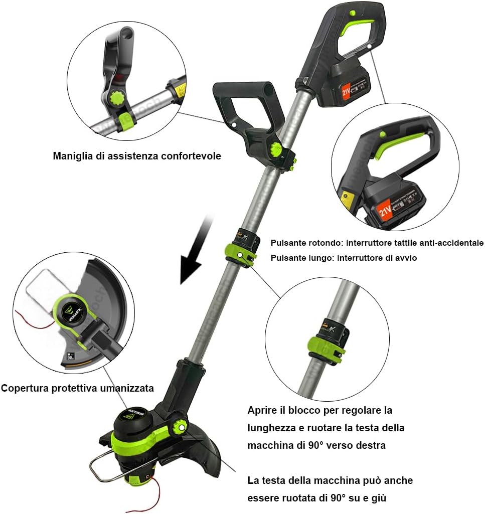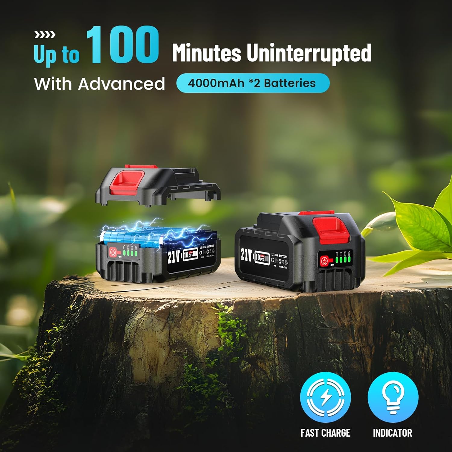 Olubfdh Tagliaerba con batteria 21 V 1000 W, motore senza spazzole 3 in 1, con batteria 8000 mAh con testa trimmer girevole a 90°, manico telescopico, display a cristalli liquidi, 2 batterie da 4,0 Ah
