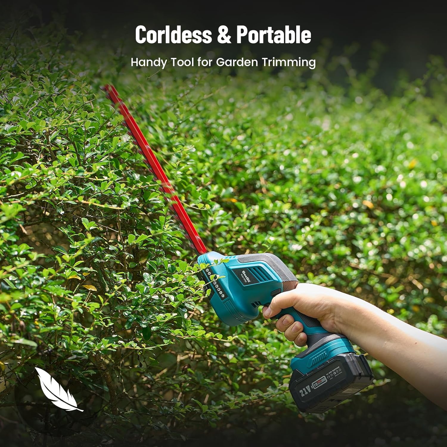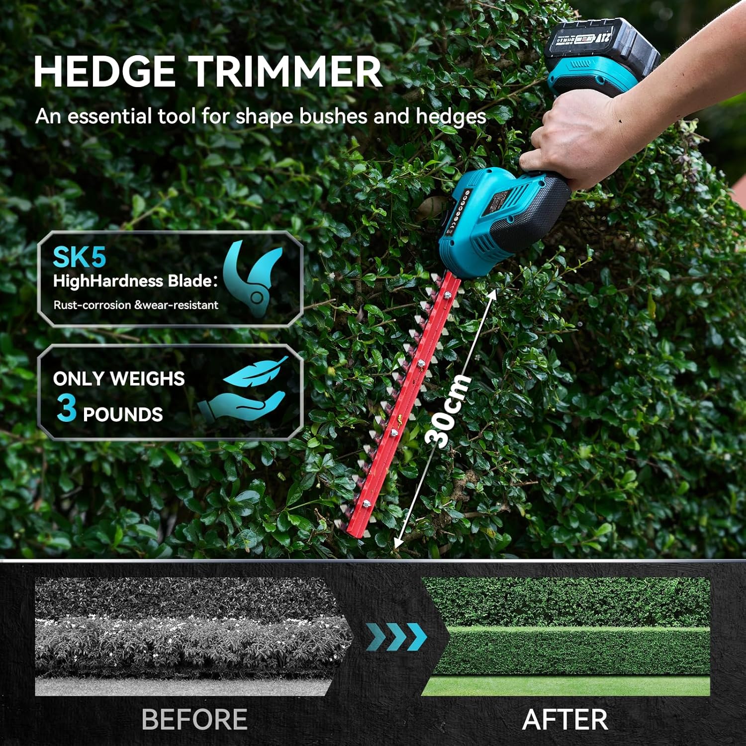 SEESII Electric Hedge Trimmer, 2 in 1 Battery Hedge Trimmer, Incl. 1 x 4000 mAh Battery and Charger, Blade Length 30 cm & 15 cm, for Cutting Hedges and Lawns