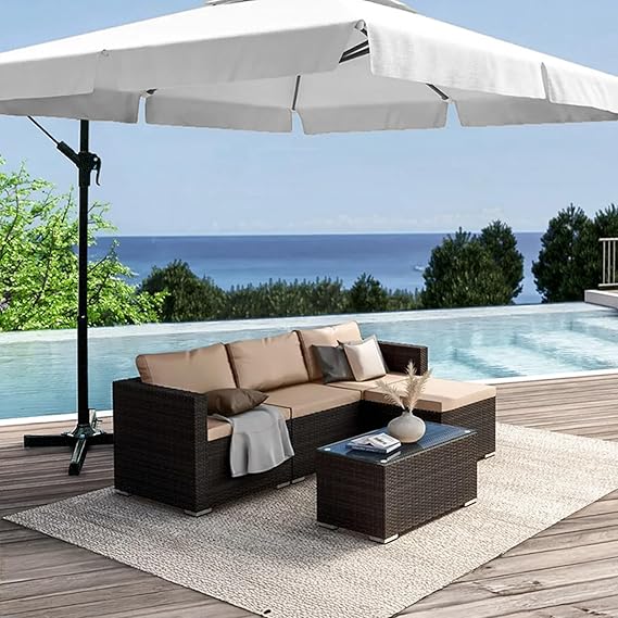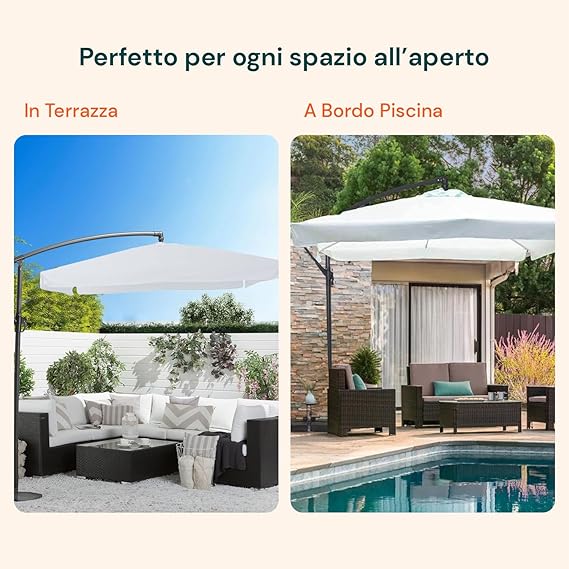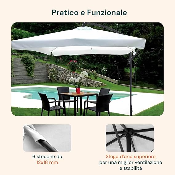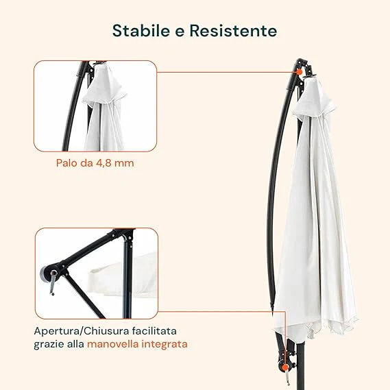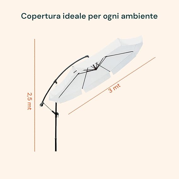 Ombrellone Rotondo ø3m Bianco Con Braccio Laterale In Acciaio E Manovella