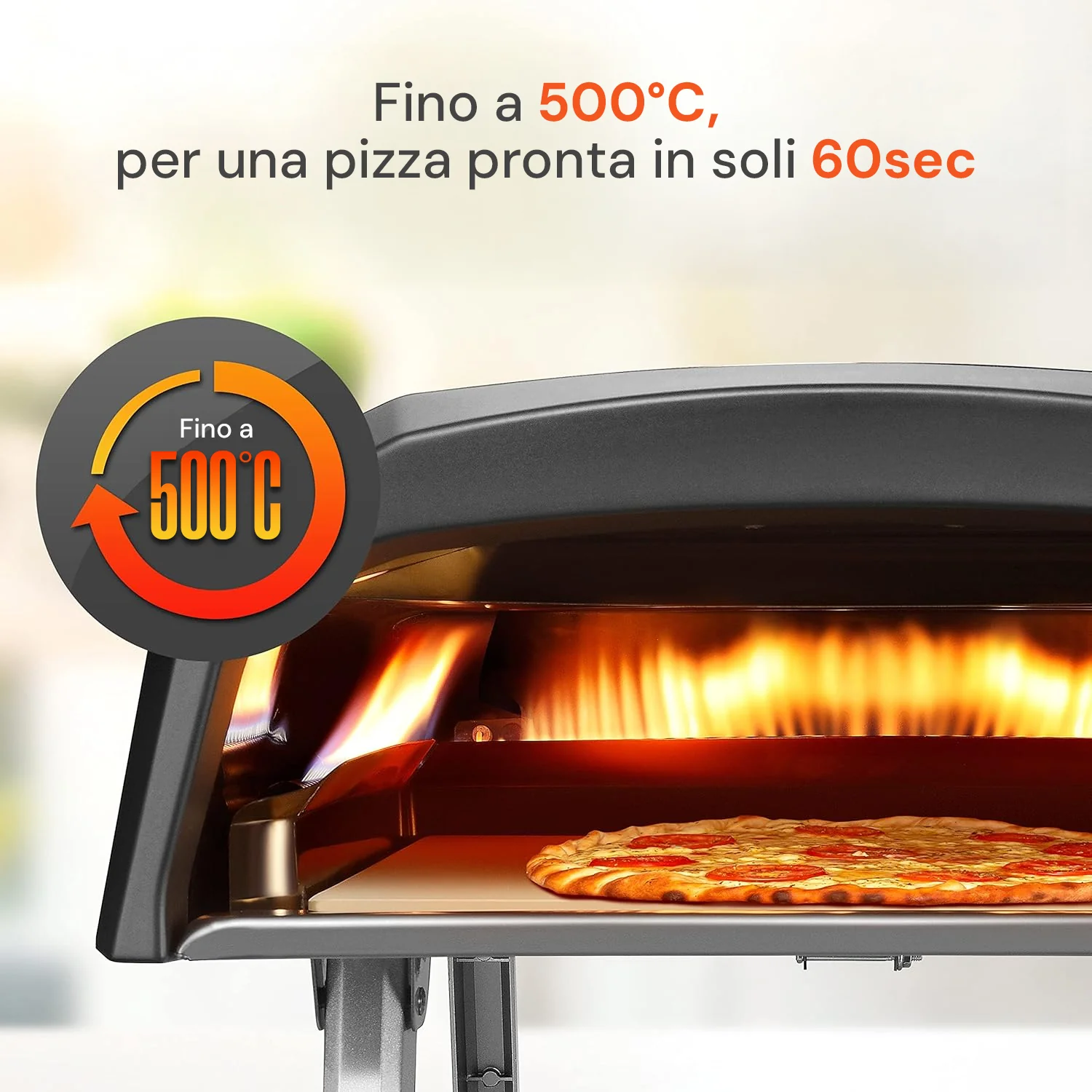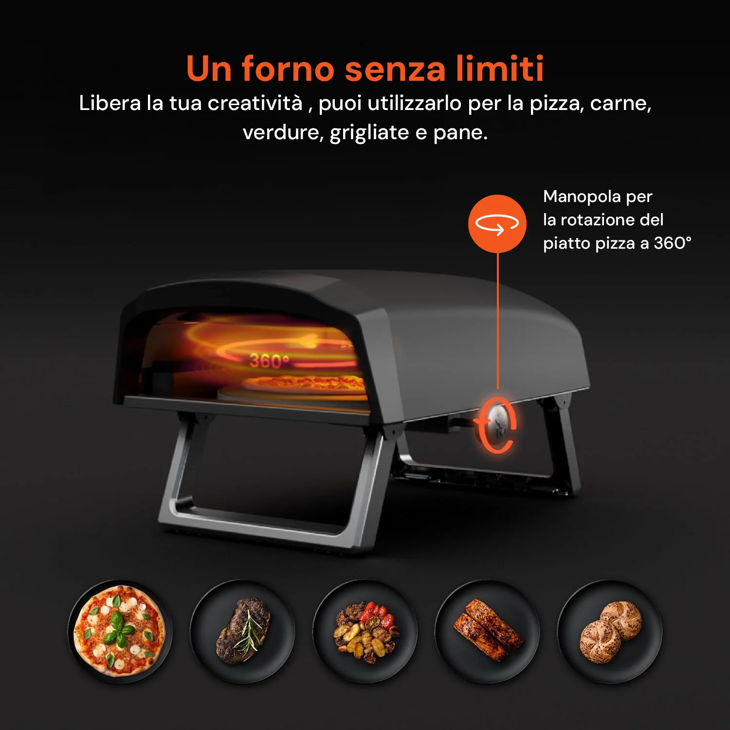 Forno Pizza A Gas Piatto Rotante con Rotella 4000w 64x44x31,5cm