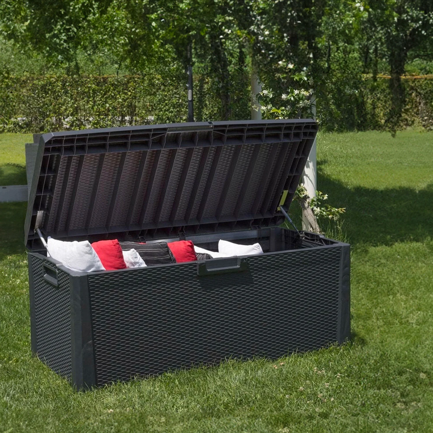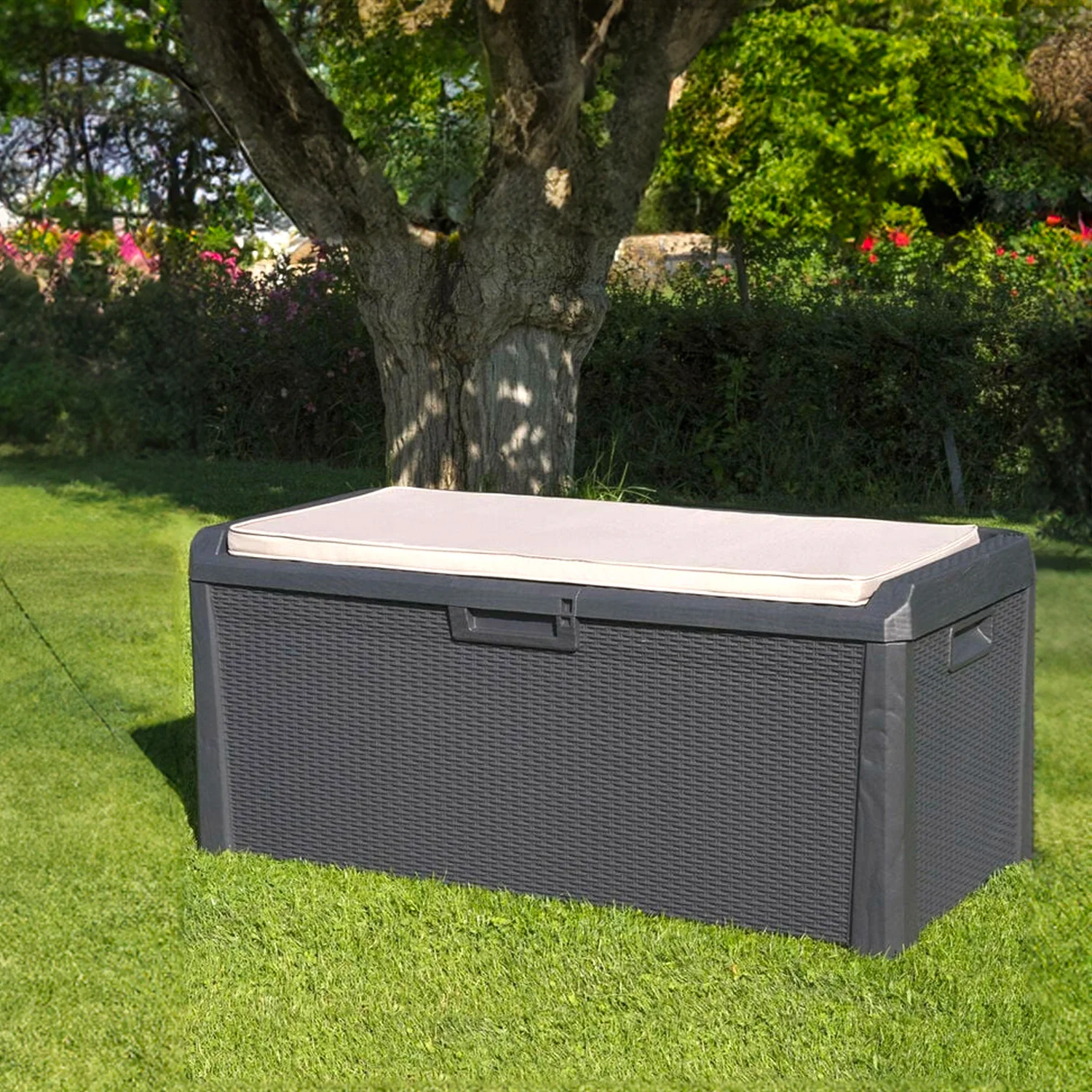 Baule Portaoggetti Con Seduta E Cuscino Da Esterno 340l