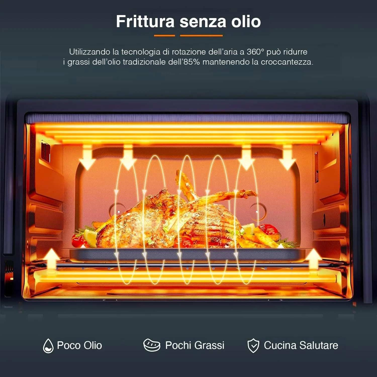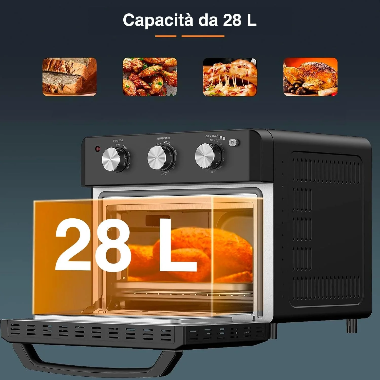 Fornetto Ad Aria 28l 2000w Con Teglia, Cestello E Griglia