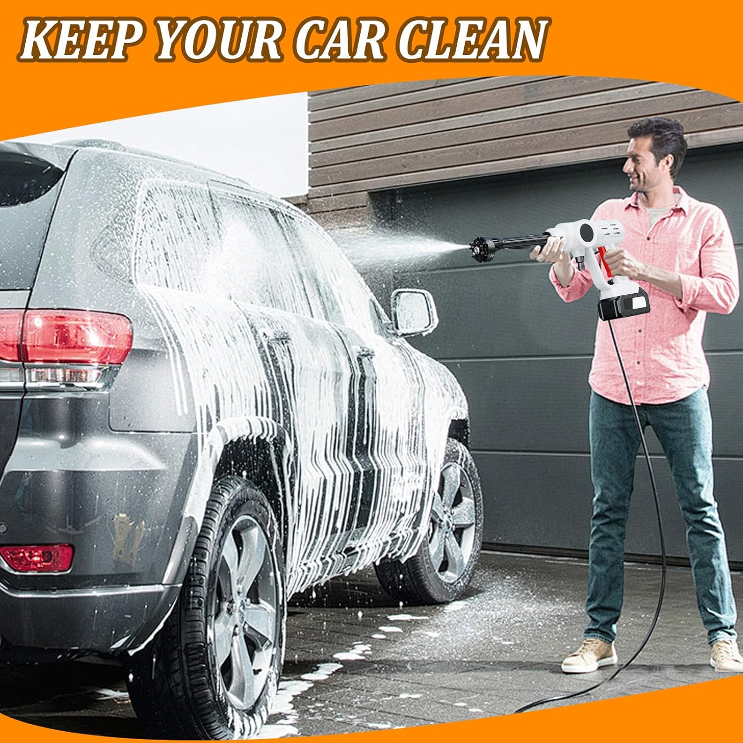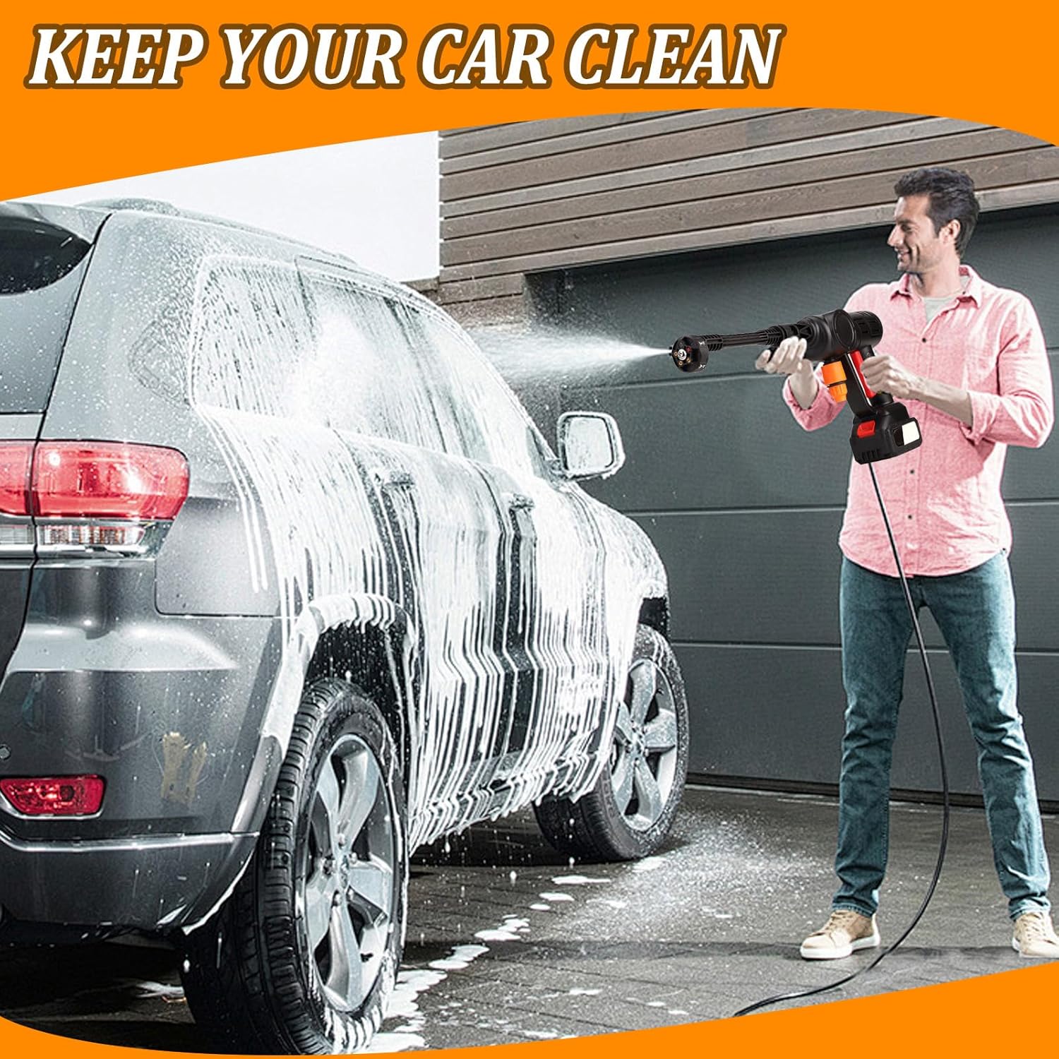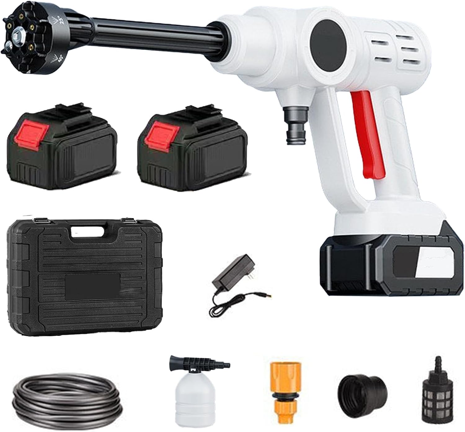 SQUADO Wireless Pressure Washer Gun with Adjustable Jet and 2 Rechargeable Batteries 8000 mAh, 50 PSI High Pressure Washer 3 m Hose and Convenient Case