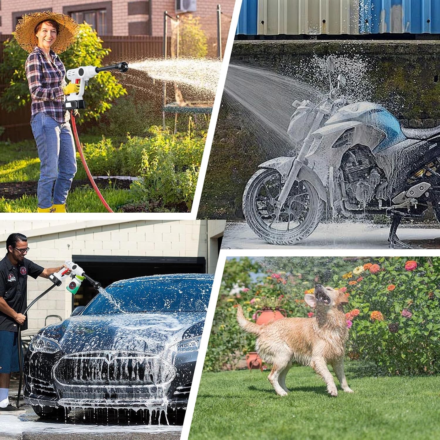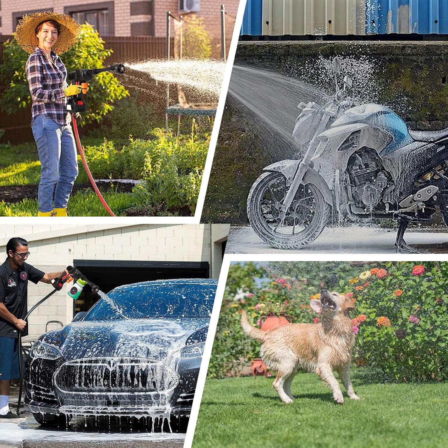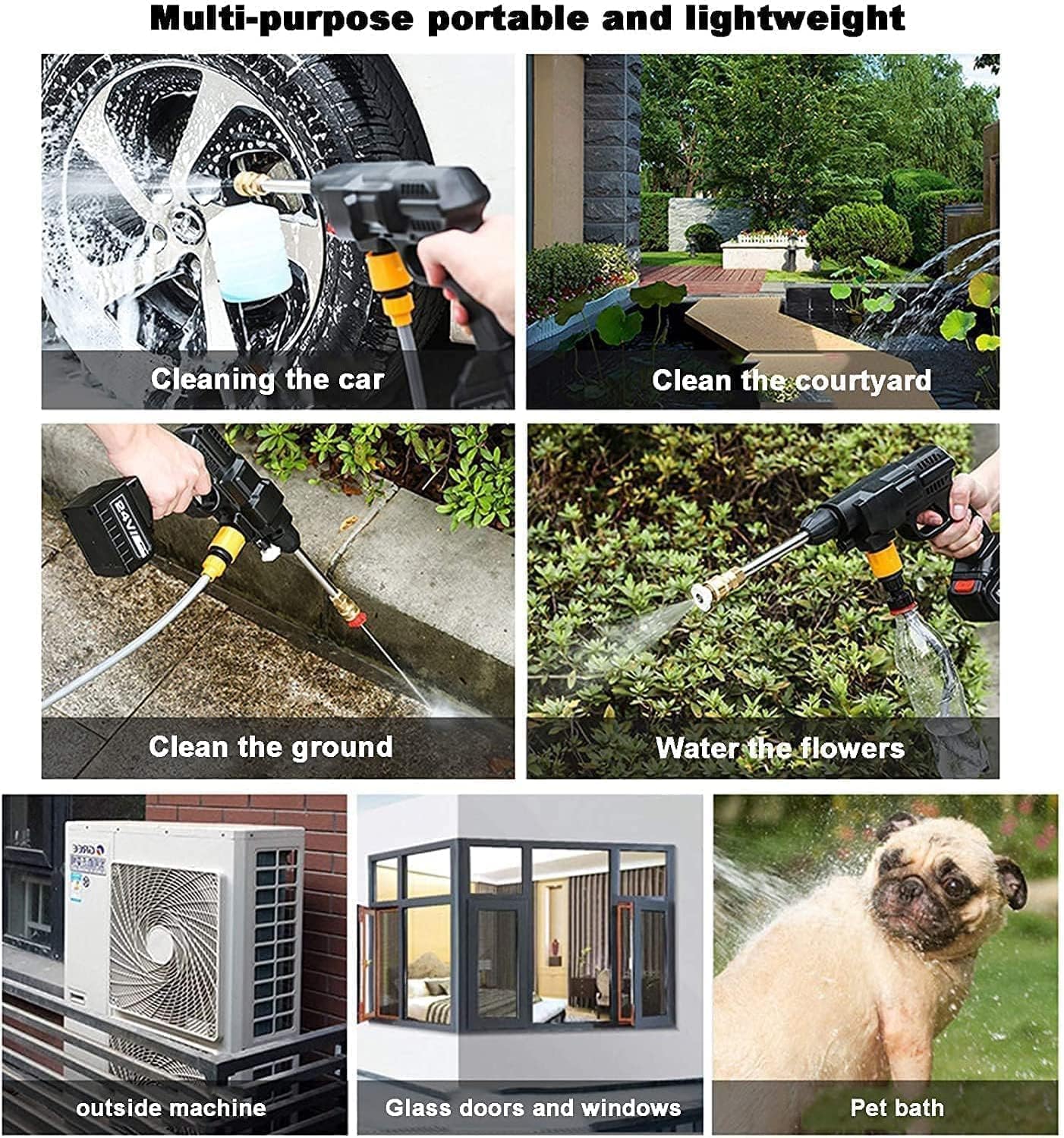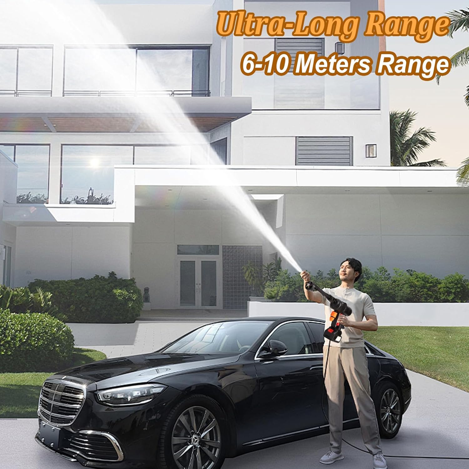 SQUADO Wireless Pressure Washer Gun with Adjustable Jet and 2 Rechargeable Batteries 8000 mAh, 50 PSI High Pressure Washer 3 m Hose and Convenient Case