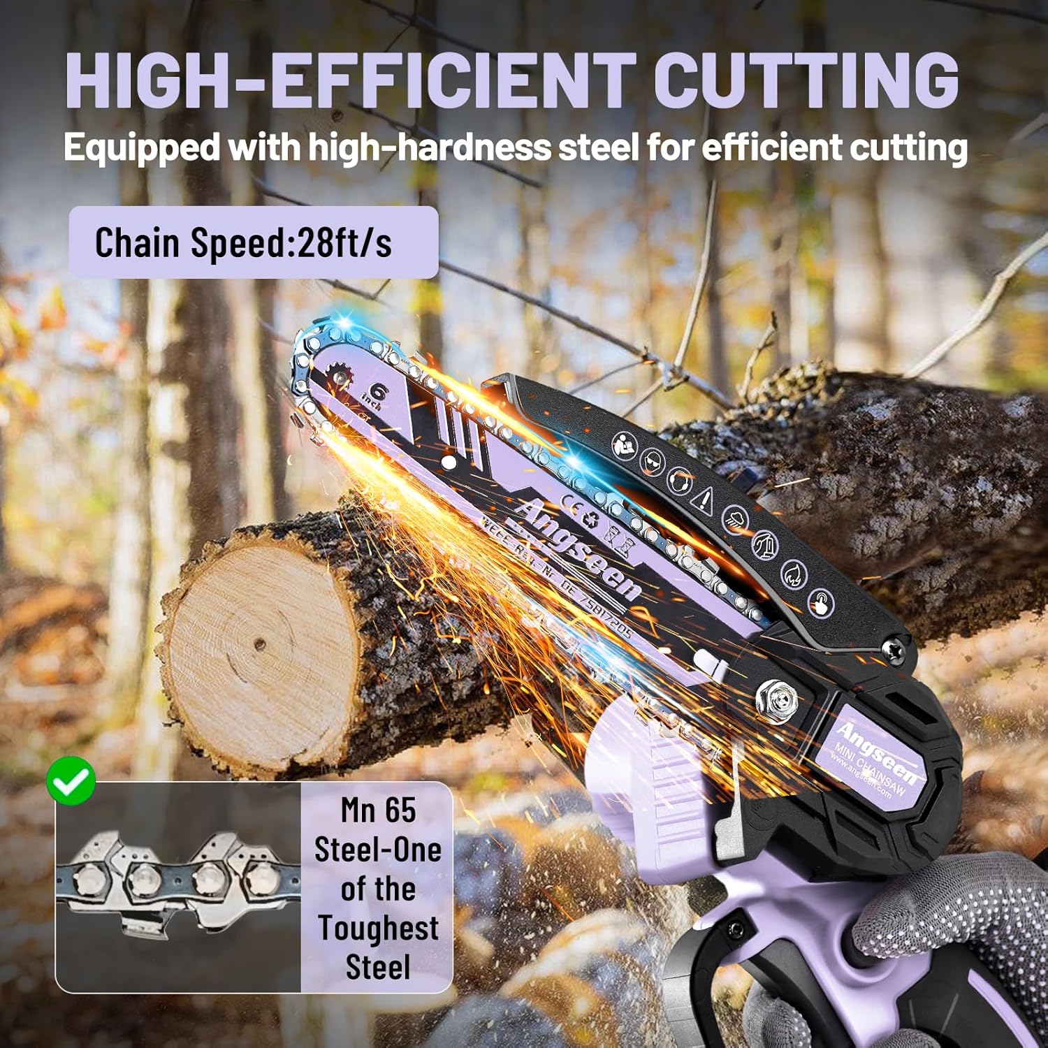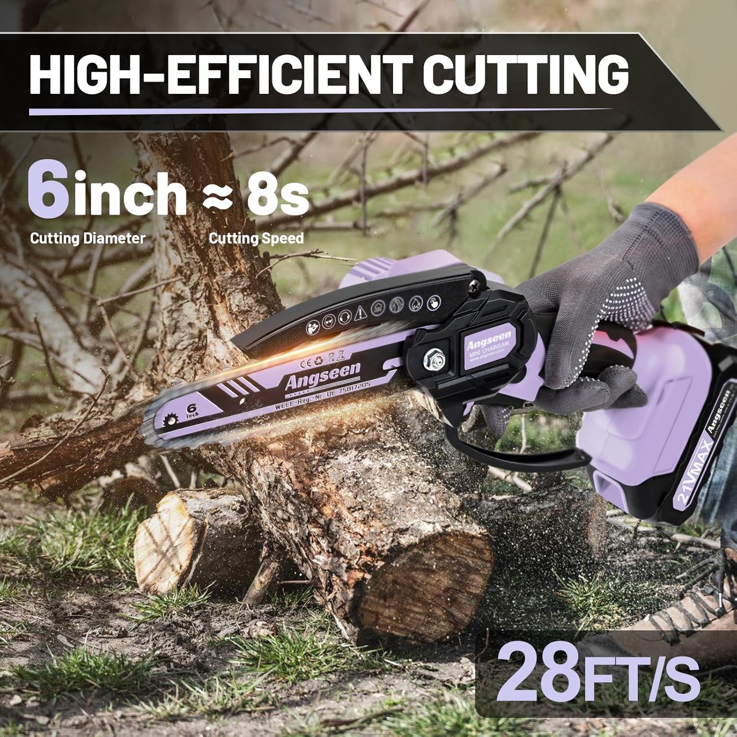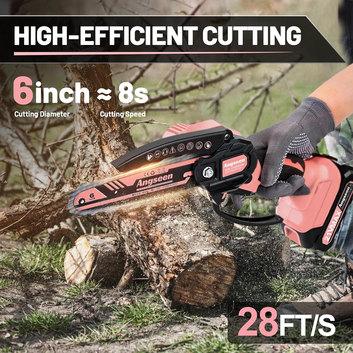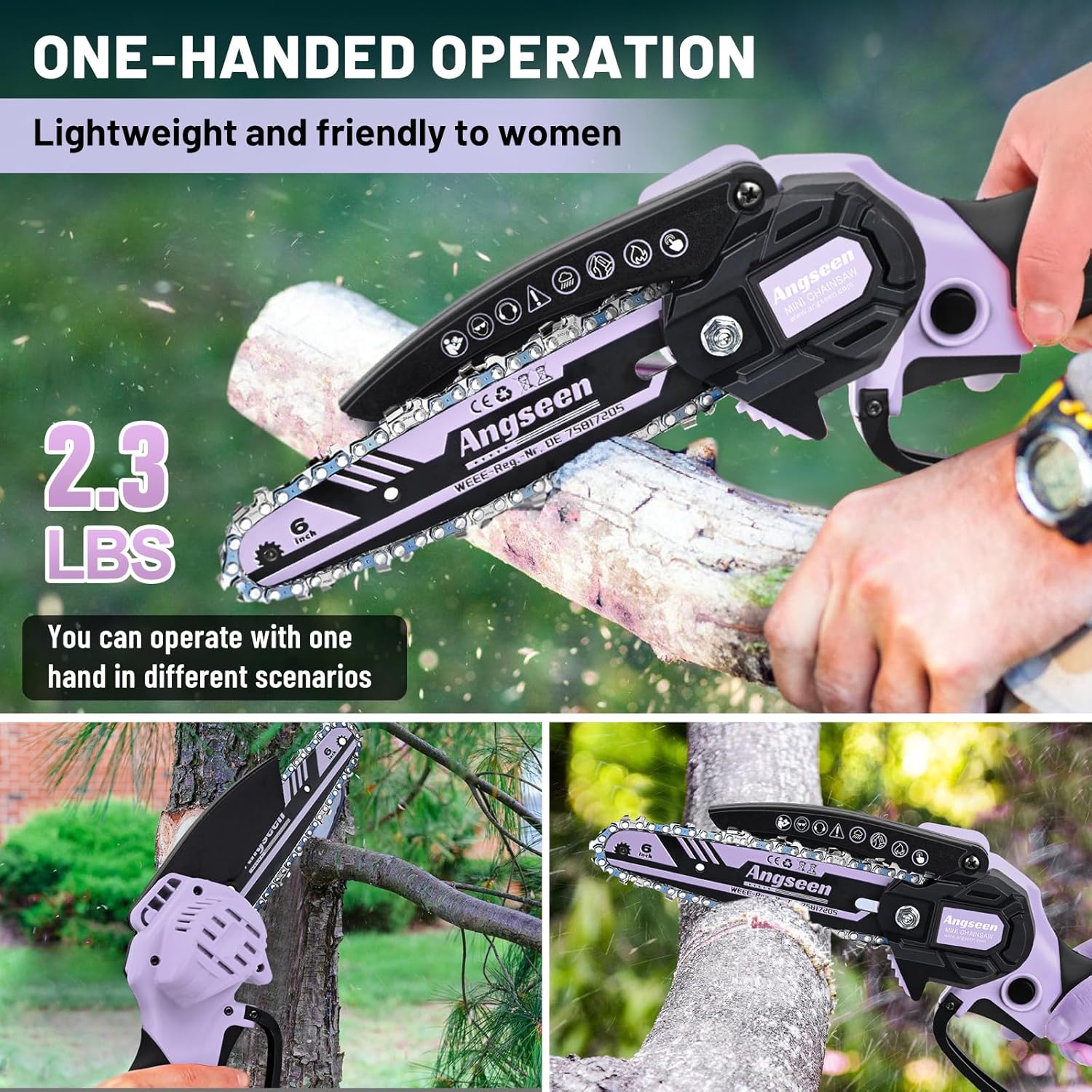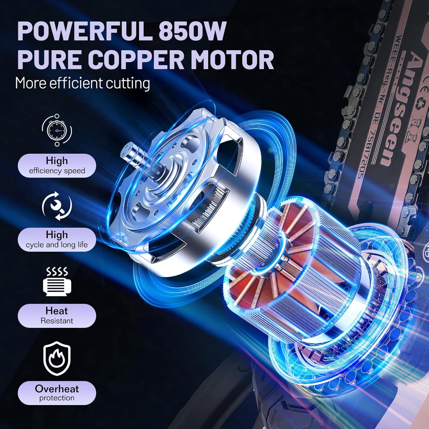 Angseen 850W 6 Inch Cordless Chainsaw for Pruning with 3 Chains, Battery Saw with 1 Batteries and Safety Lock, Electric Chainsaw for Wood Cutting and Gardening