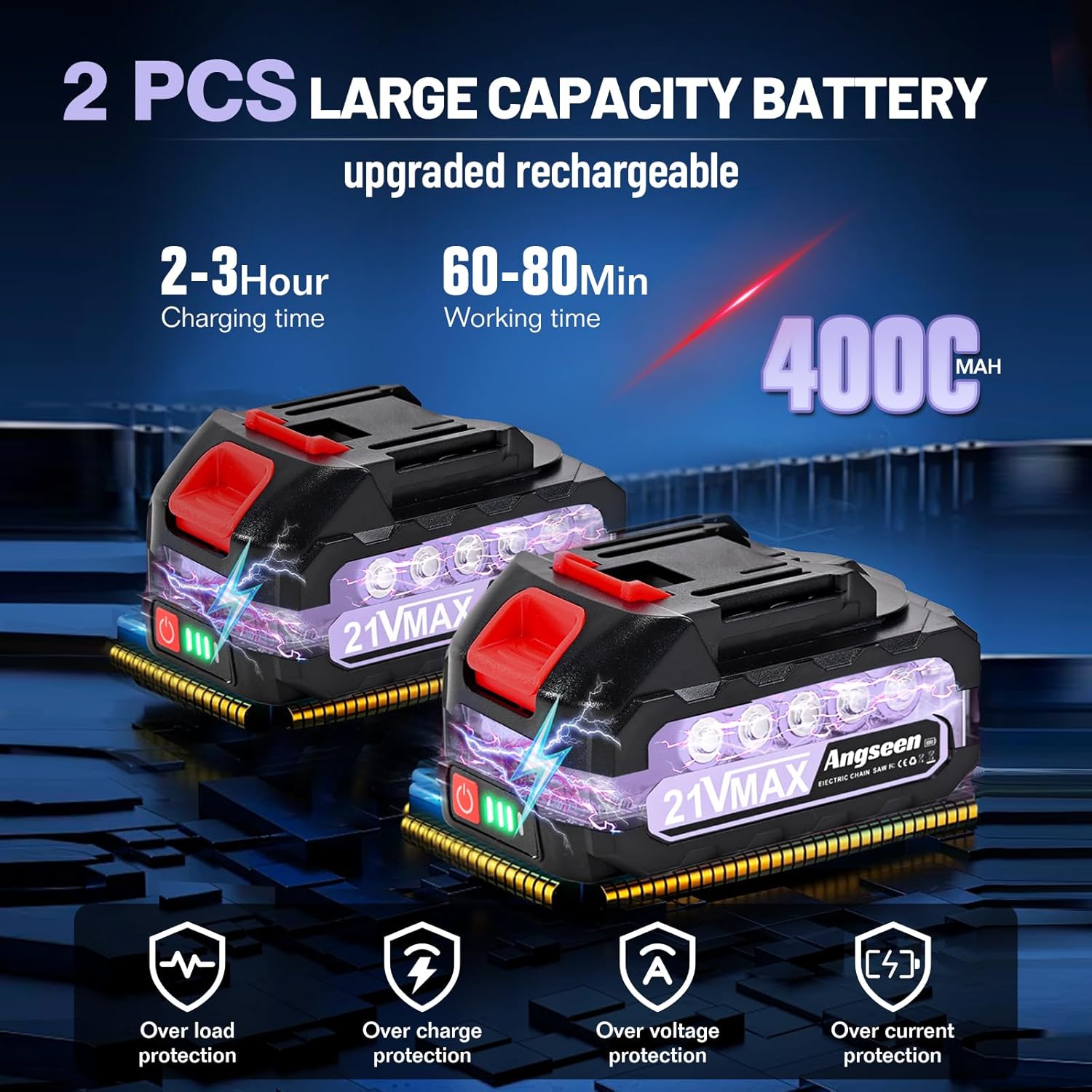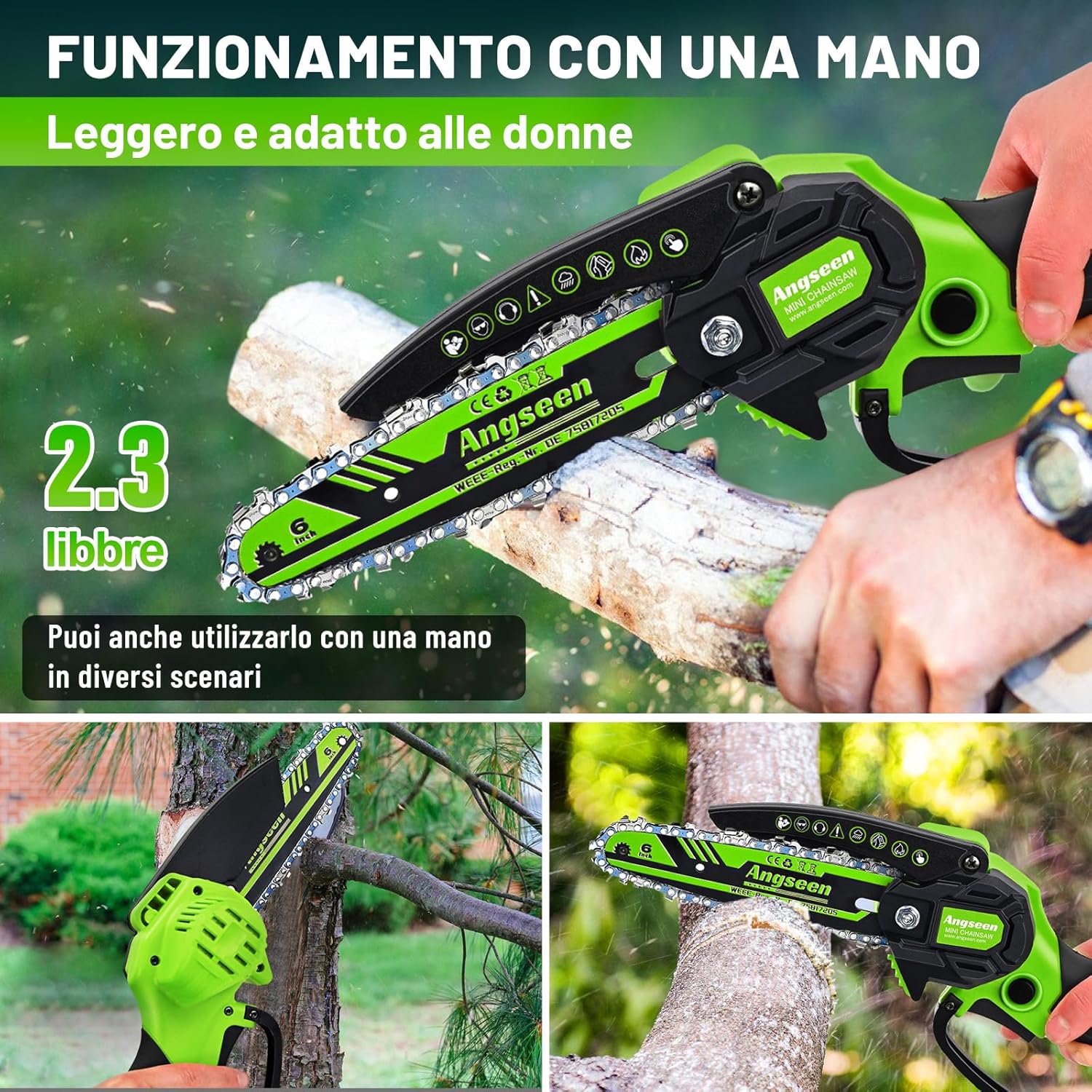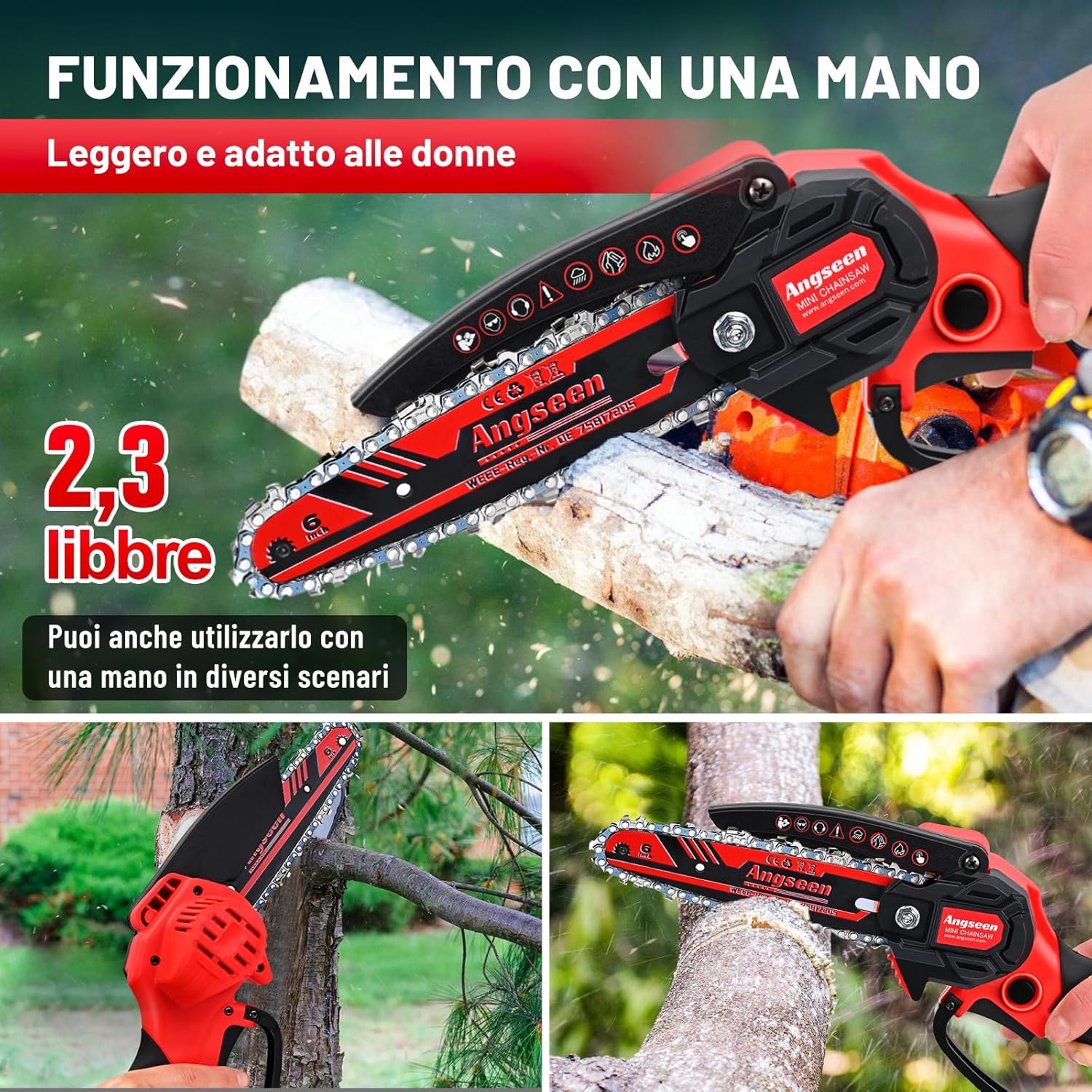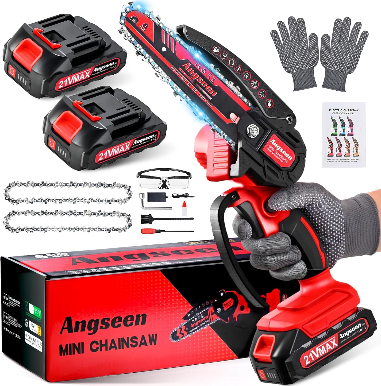 Angseen 850W 6 Inch Cordless Chainsaw for Pruning with 3 Chains, Battery Saw with 1 Batteries and Safety Lock, Electric Chainsaw for Wood Cutting and Gardening