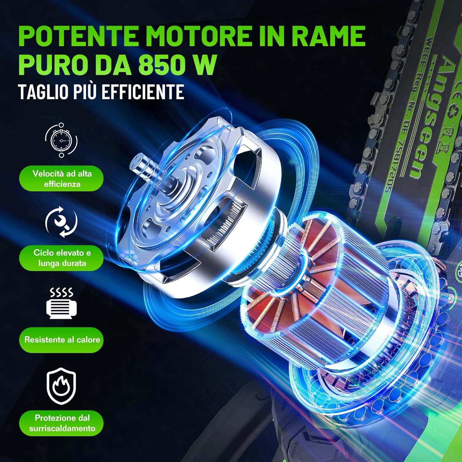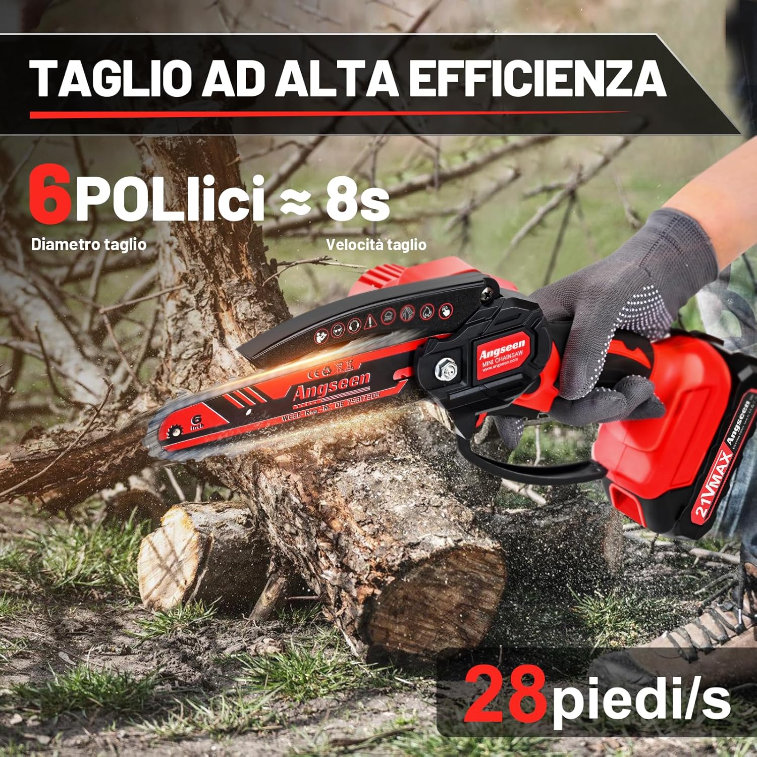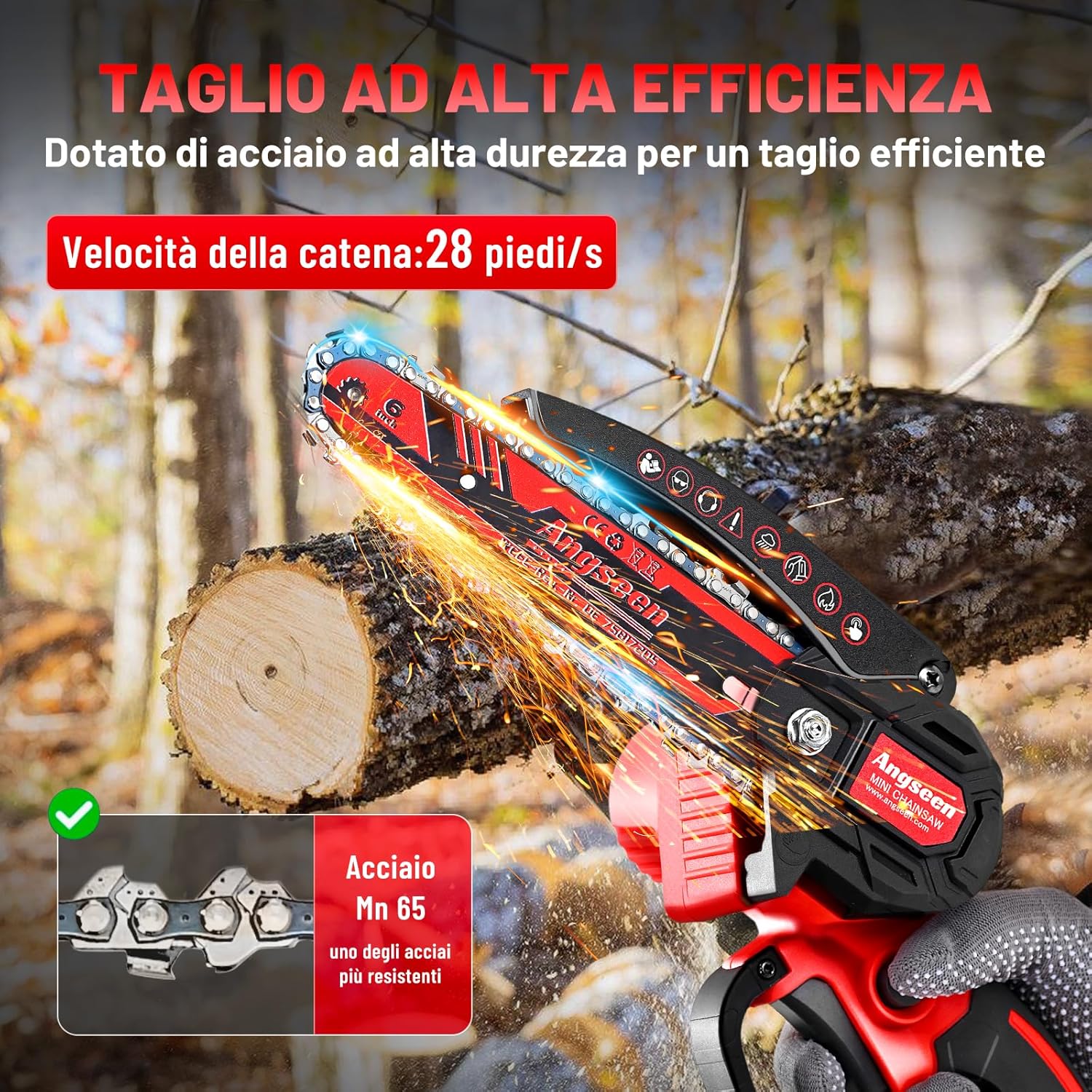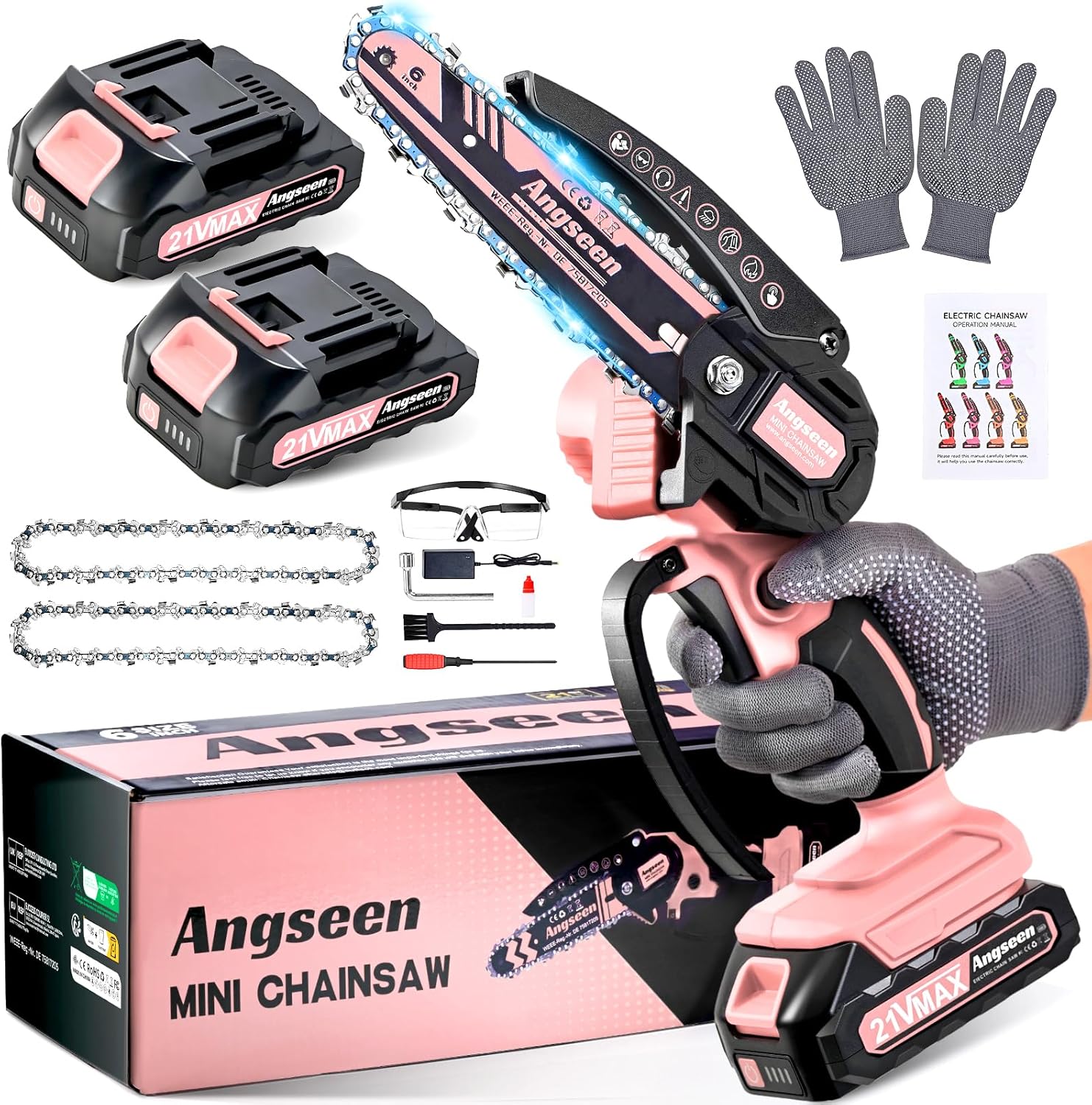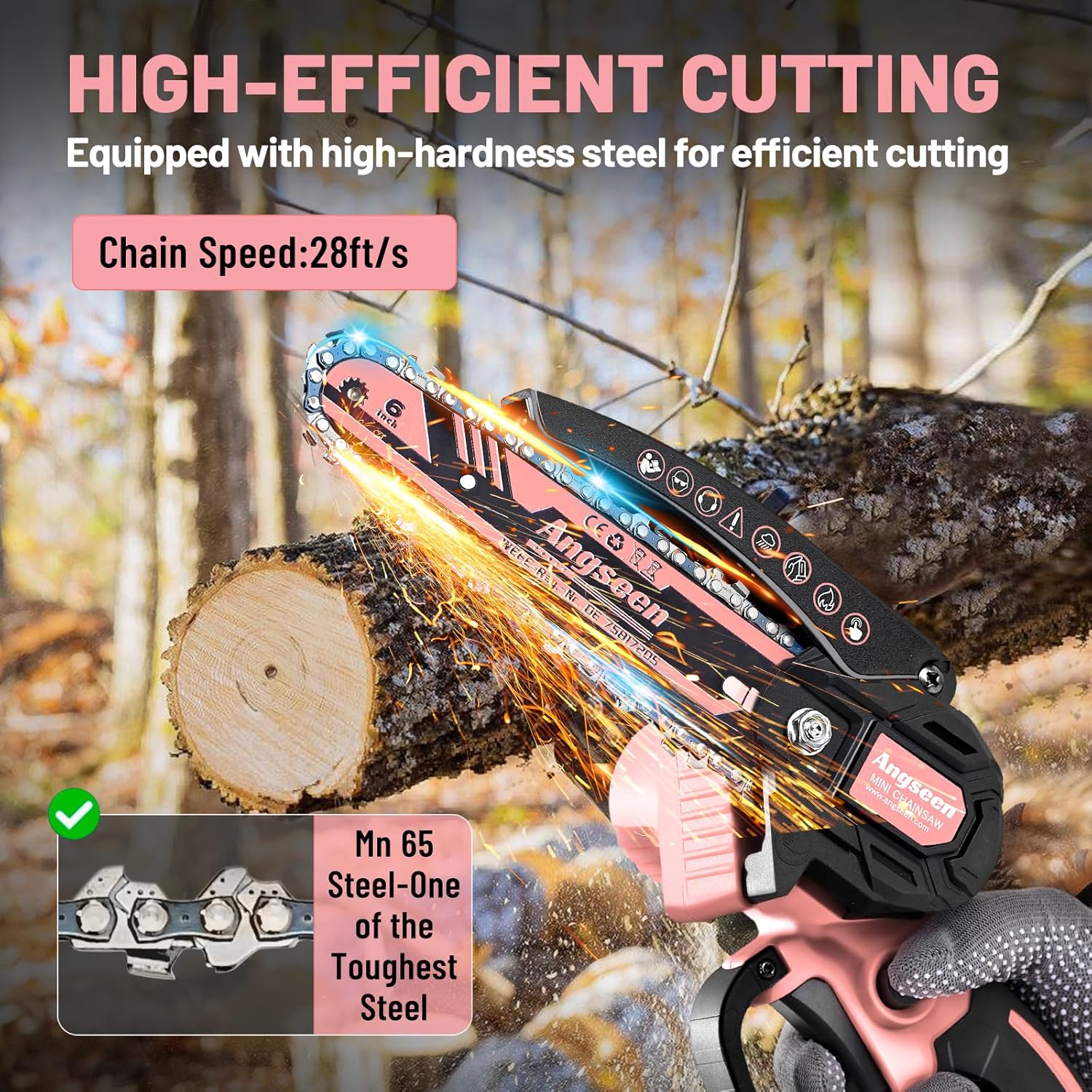 Angseen 850W 6 Inch Cordless Chainsaw for Pruning with 3 Chains, Battery Saw with 1 Batteries and Safety Lock, Electric Chainsaw for Wood Cutting and Gardening