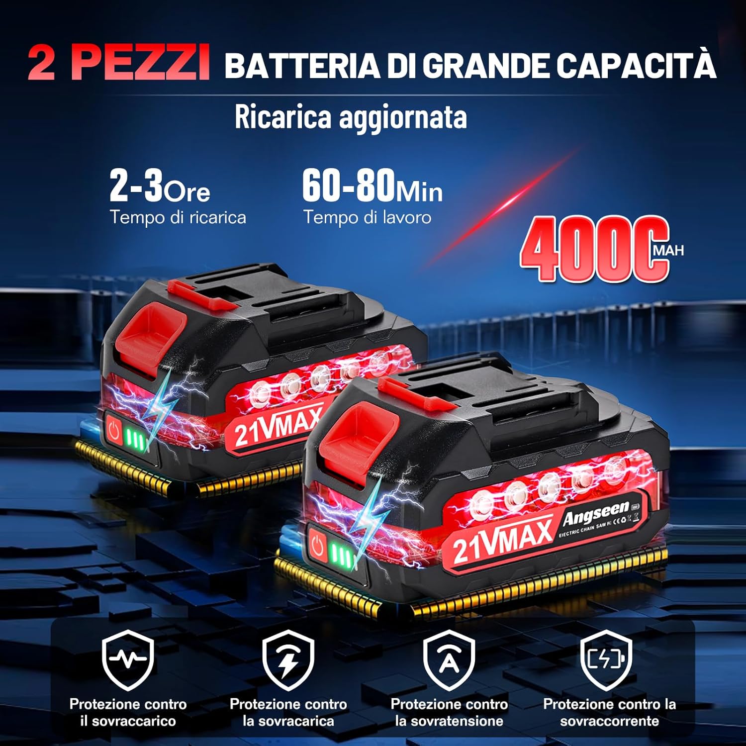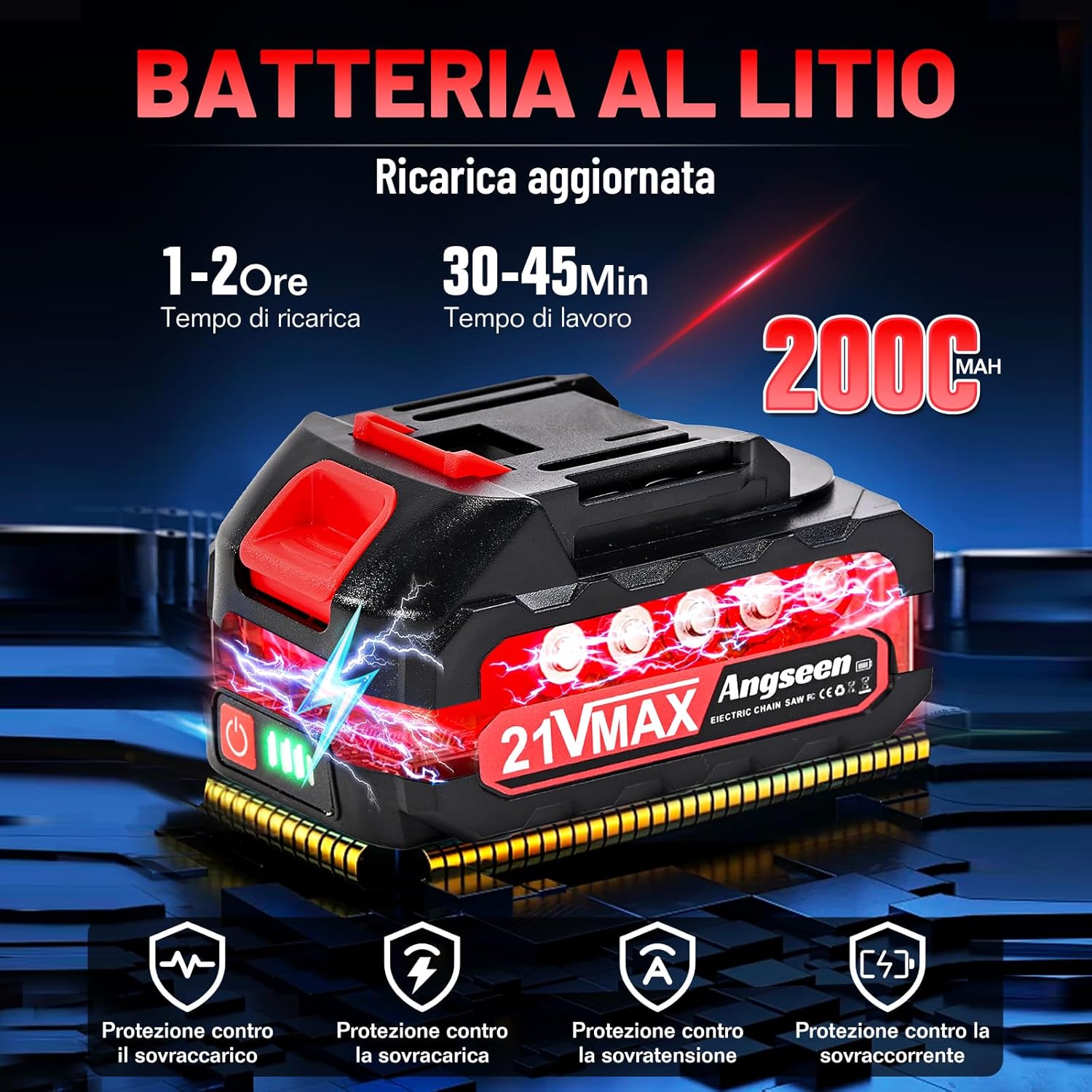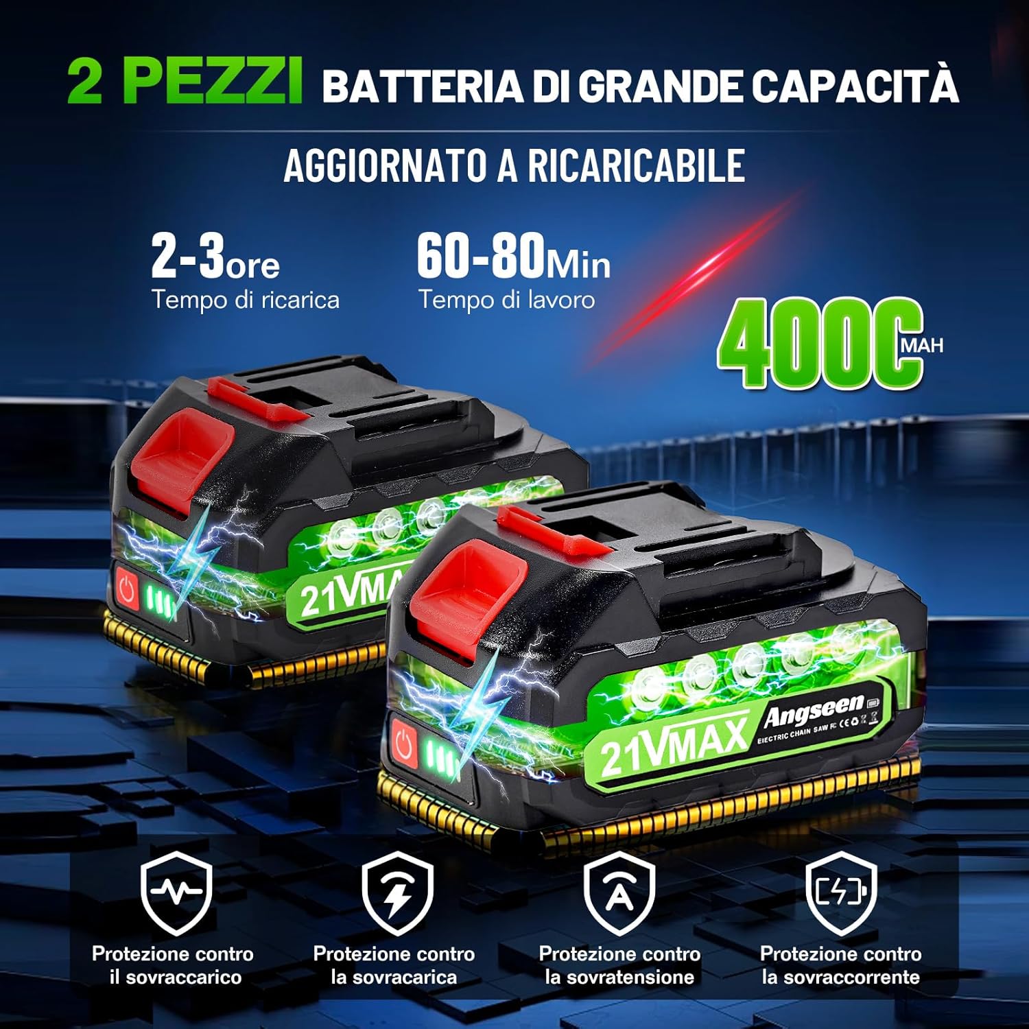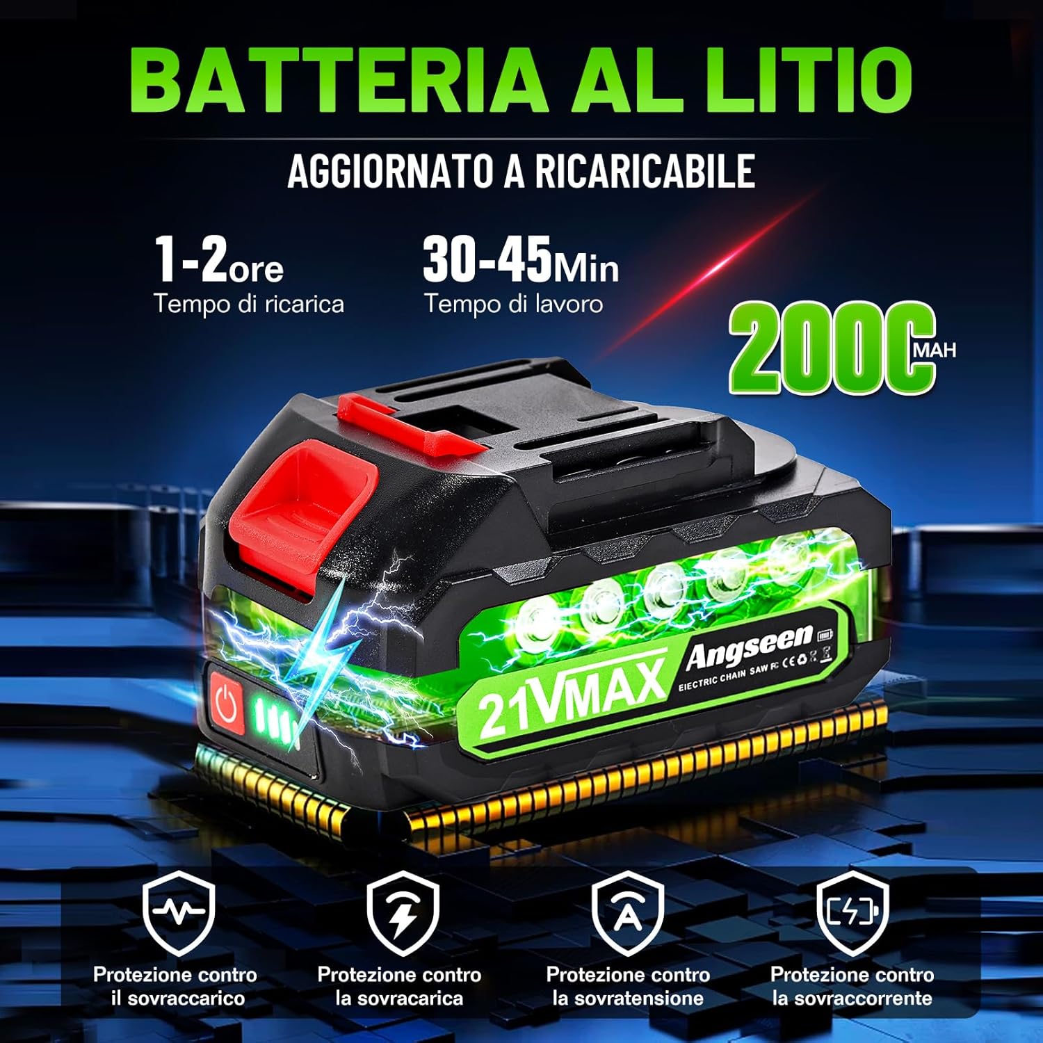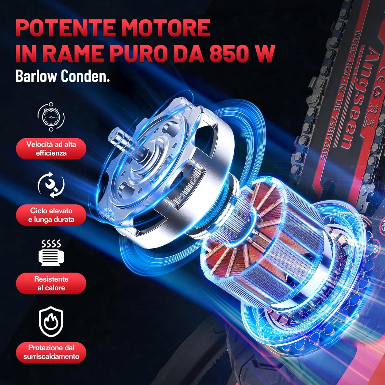 Angseen 850W 6 Inch Cordless Chainsaw for Pruning with 3 Chains, Battery Saw with 1 Batteries and Safety Lock, Electric Chainsaw for Wood Cutting and Gardening