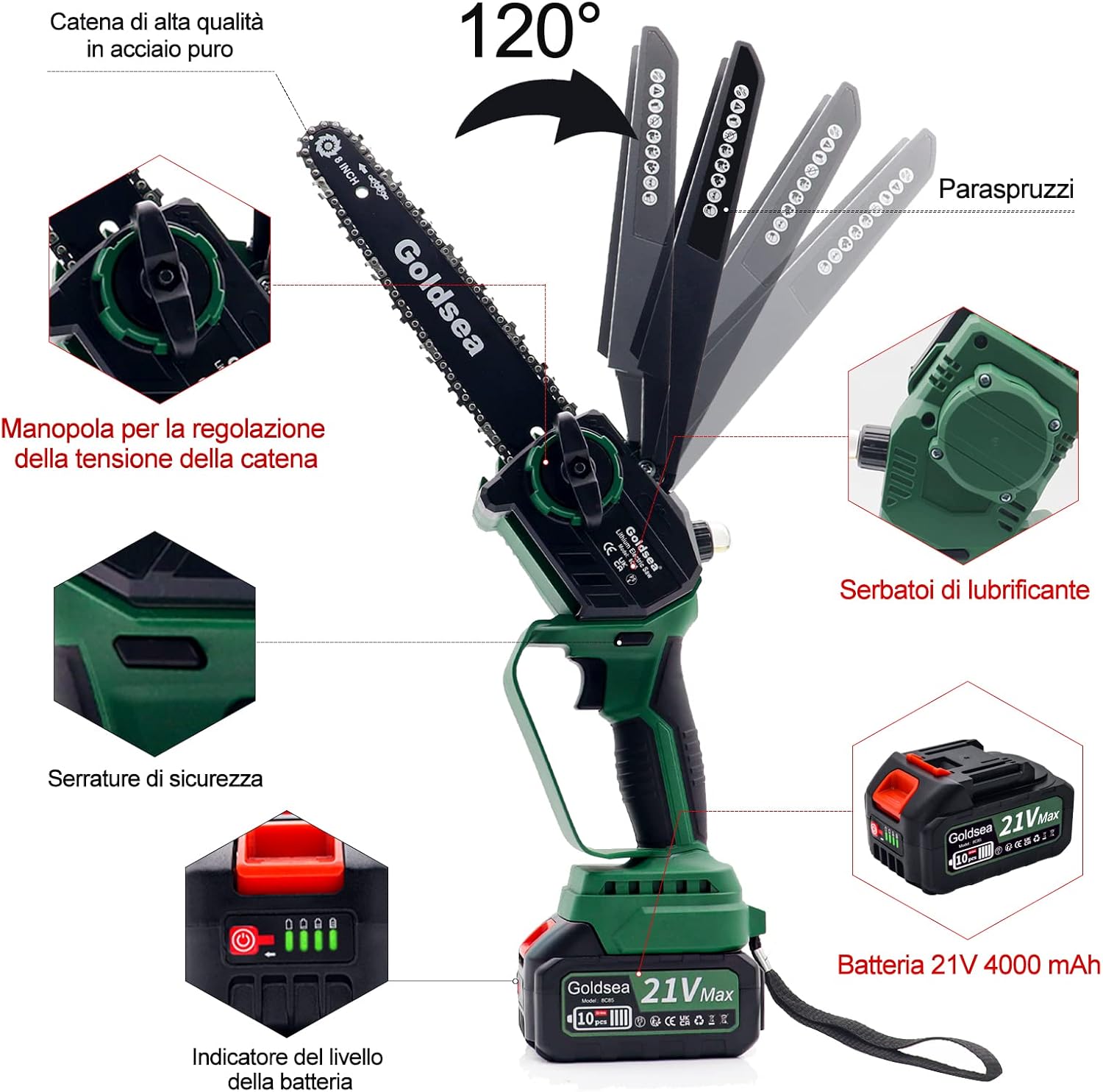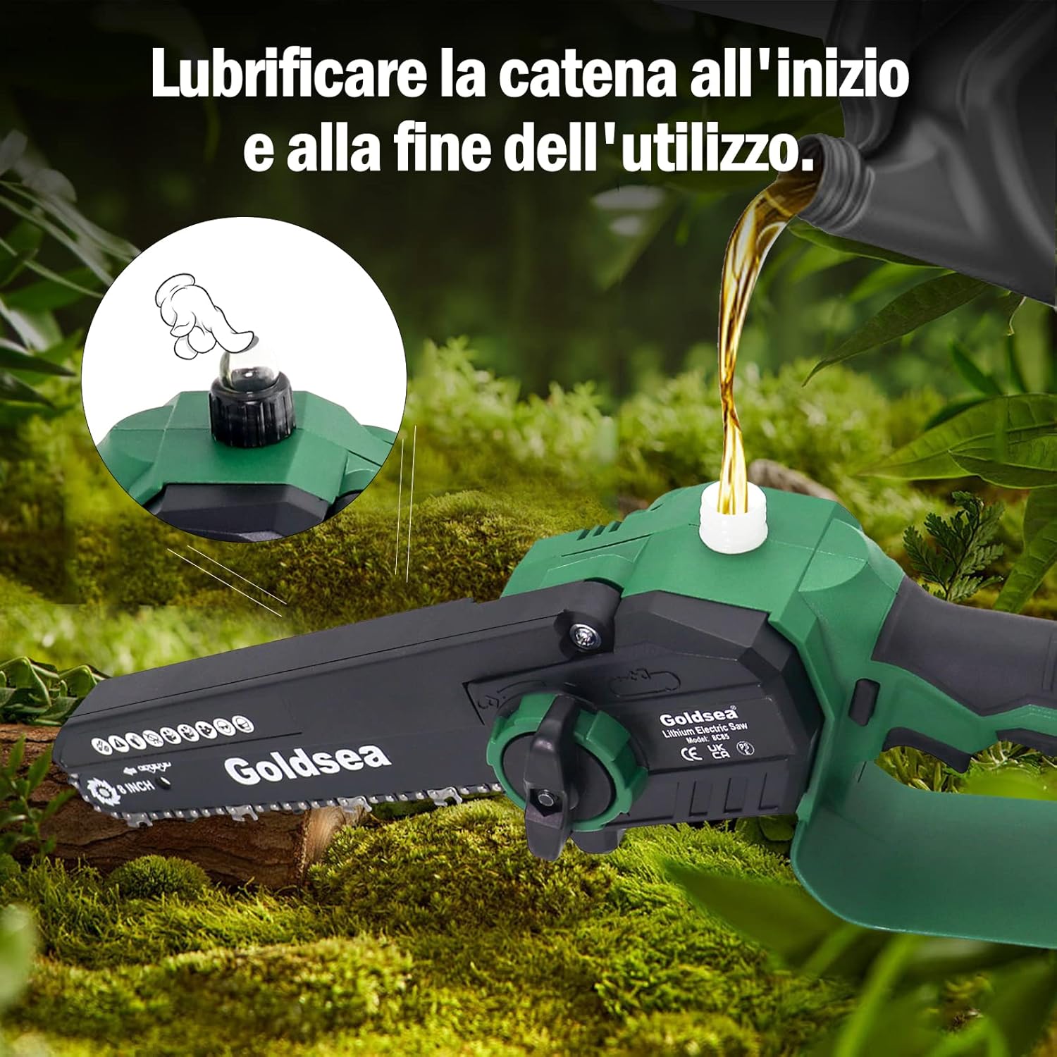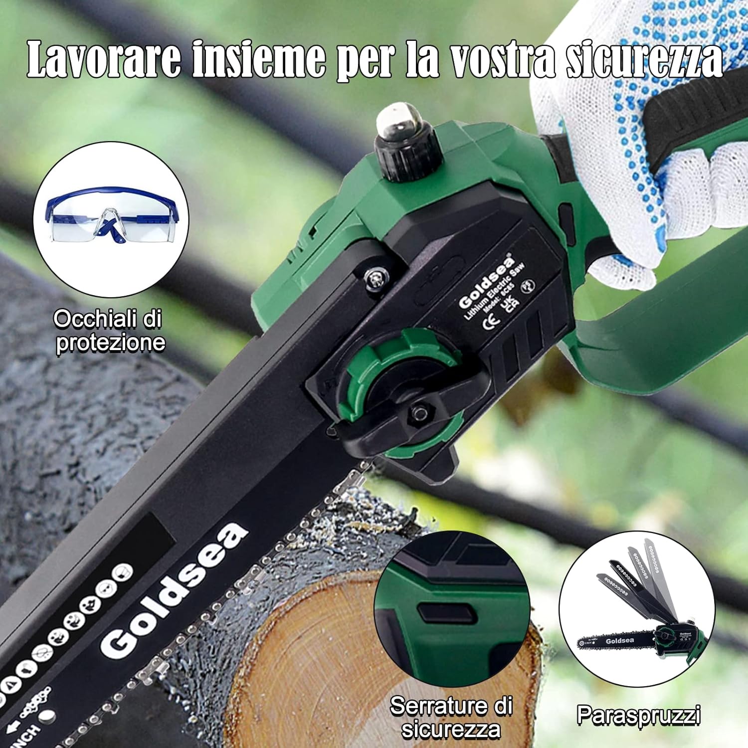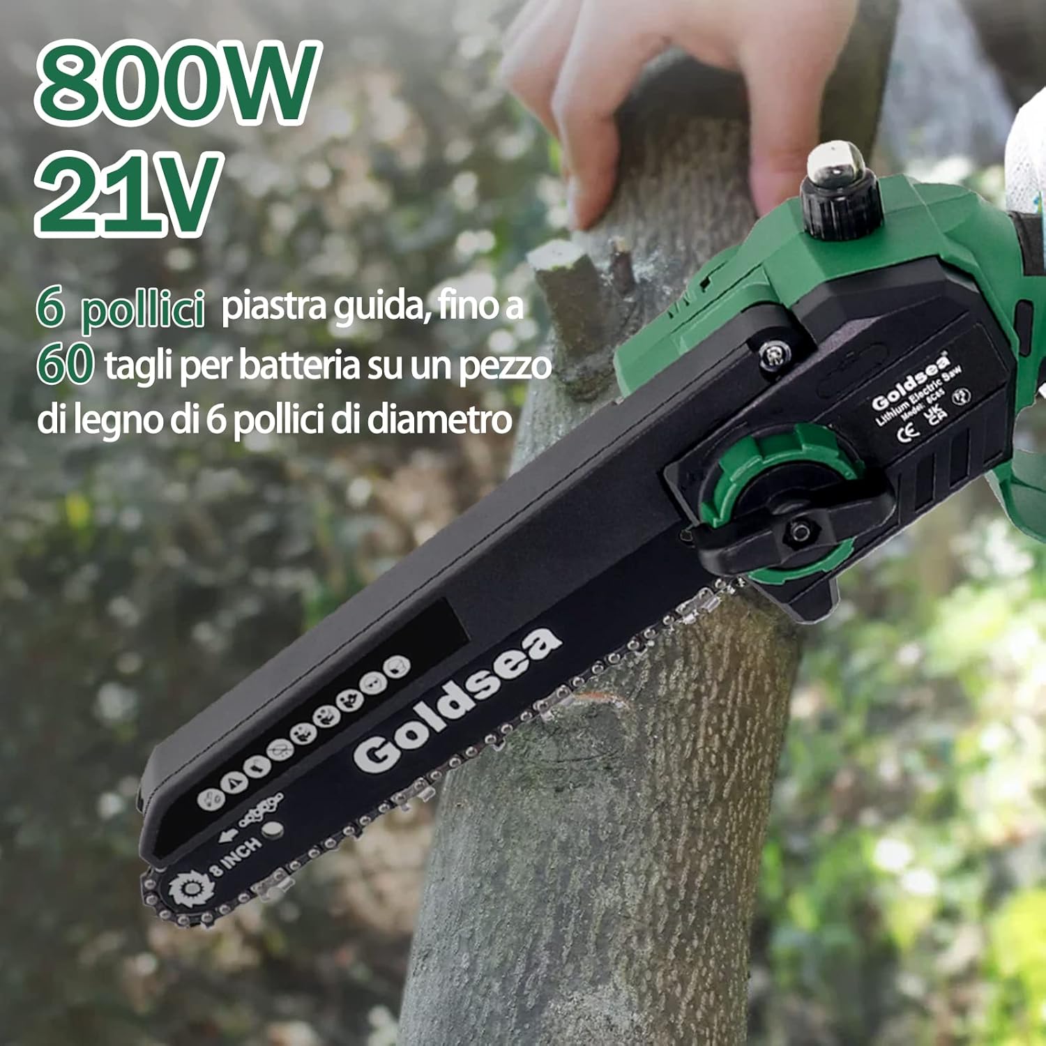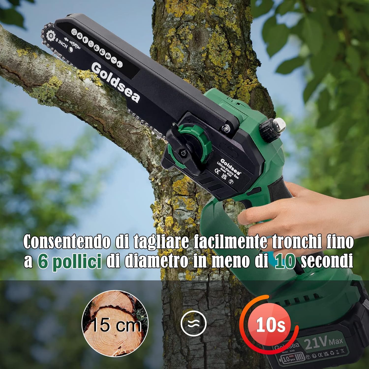 Mini Motosega a Batteria, 8 Pollici Motosega a Batteria per Potatura con 8000mAh Batterie, Goldsea Sega a Batteria per Potatura con Motori Brushless per il Giardinaggio Potatura Albero Taglio del