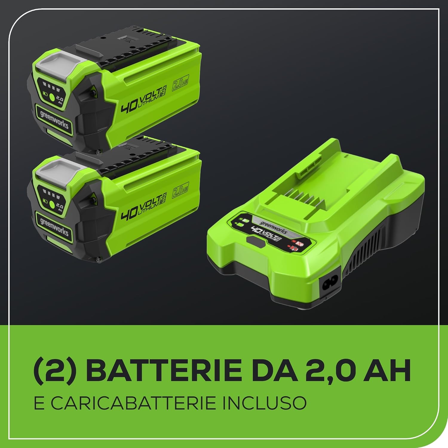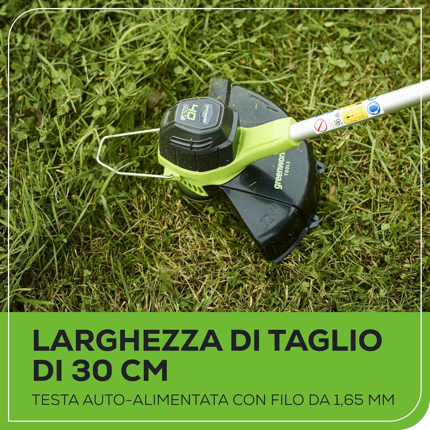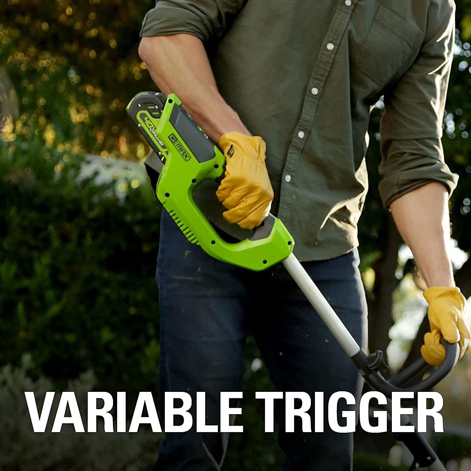 Greenworks 40V Battery Trimmer for Medium Gardens, Adjustable Height, 30 cm Cutting Width, 1.65 mm Nylon Wire with Autofeed, 2 x 40V 2Ah Batteries and G40LTK2X Charger