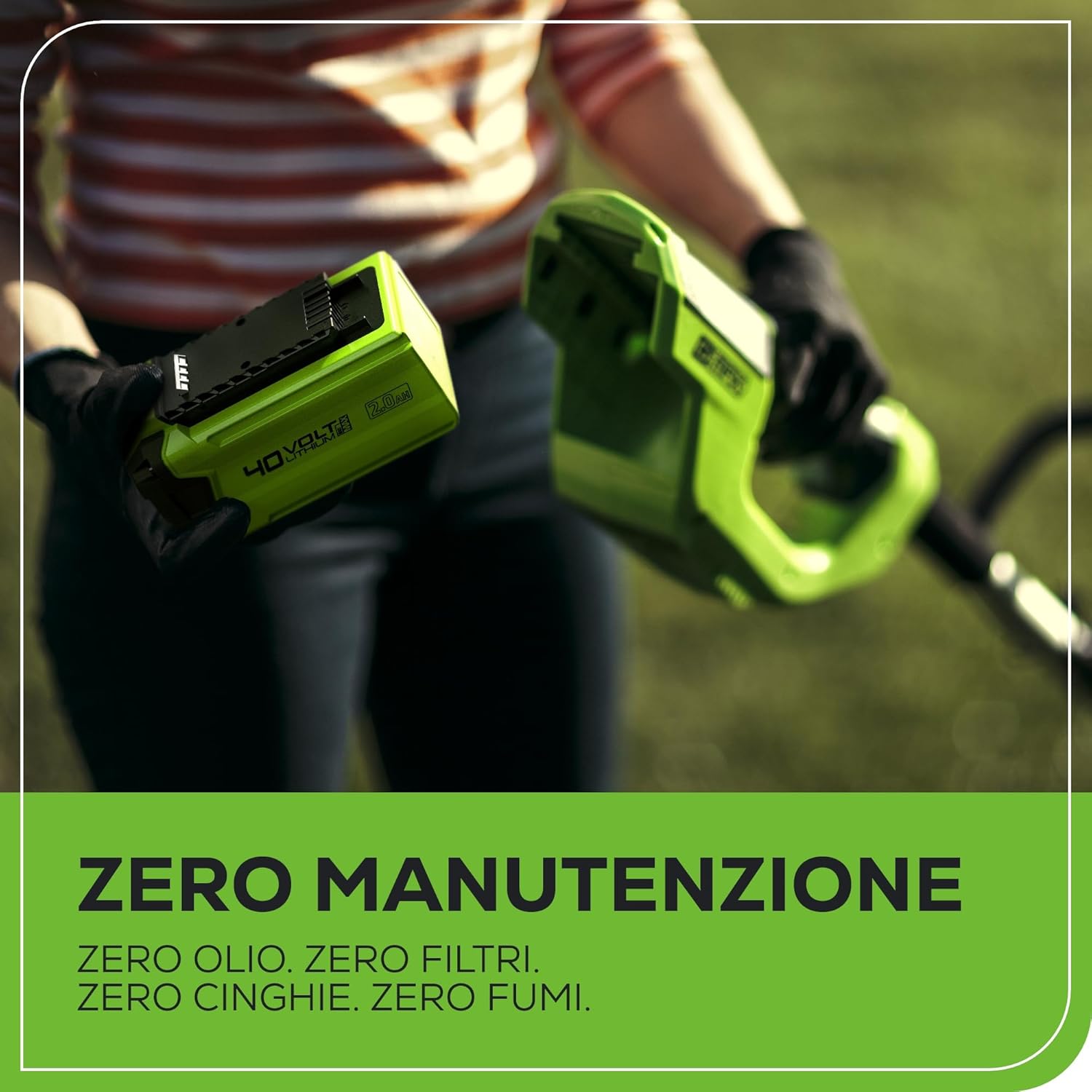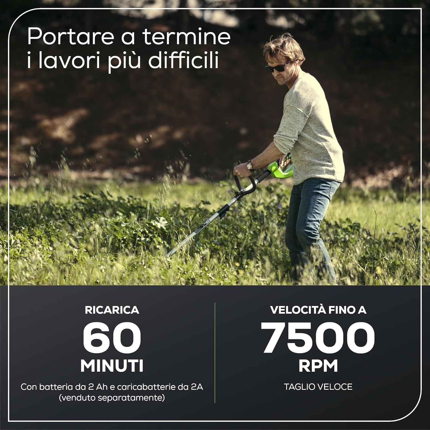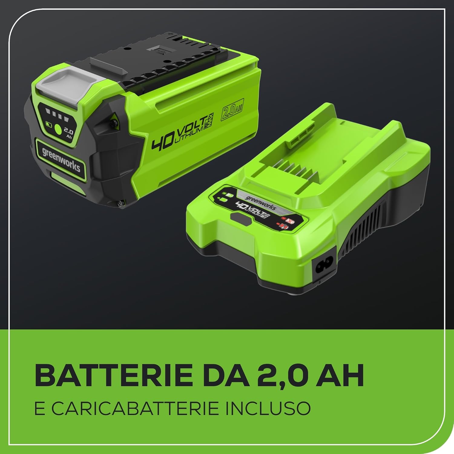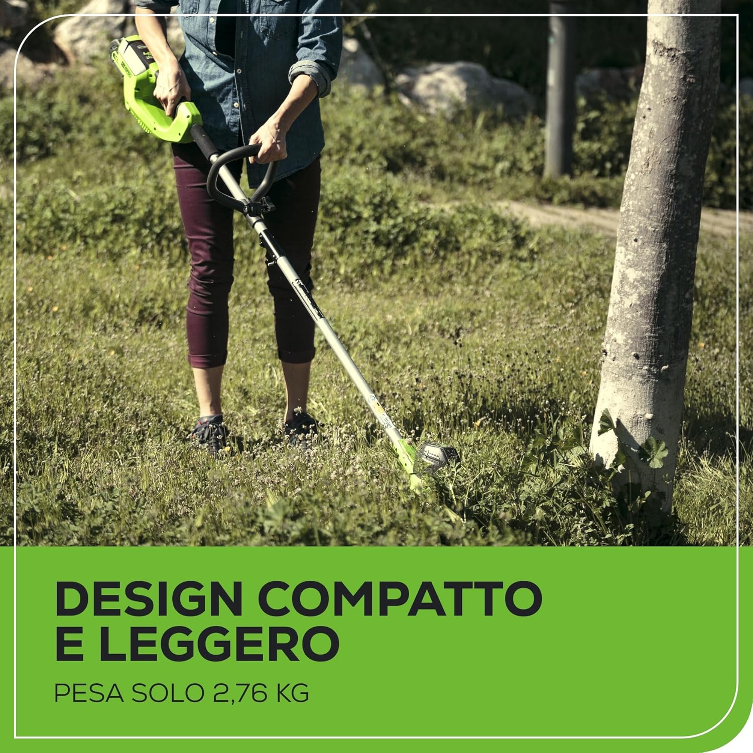 Greenworks 40V Battery Trimmer for Medium Gardens, Adjustable Height, 30 cm Cutting Width, 1.65 mm Nylon Wire with Autofeed, 2 x 40V 2Ah Batteries and G40LTK2X Charger