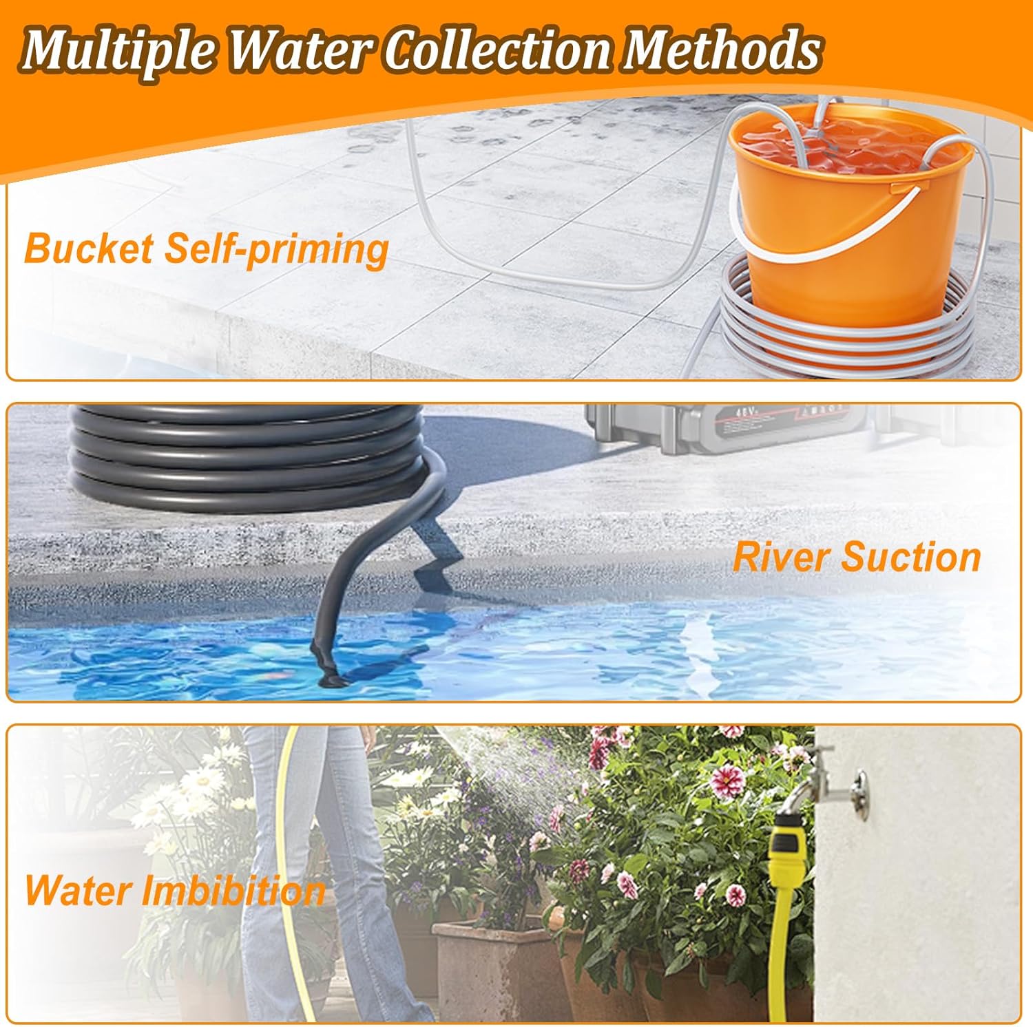 Idropulitrice a batteria, 2 Batterie 21V Idropulitrice portatile con Tubo 10mt, 6 in 1 Ugello Pistola Idropulitrice Wireless per Auto Giardino Terrazza Prato e Irrigazione (Nero)
