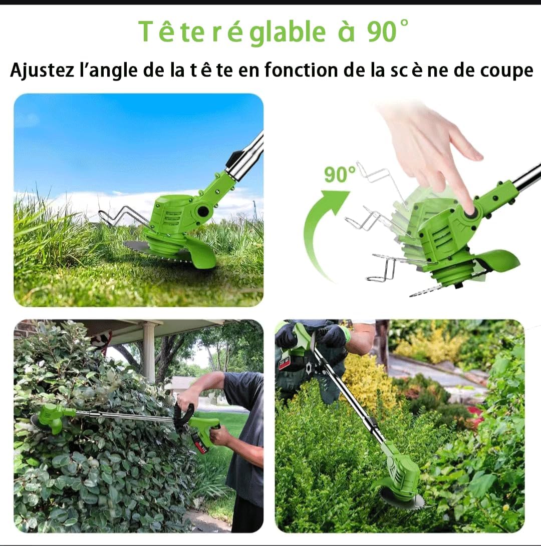 Decespugliatore a Batteria,21V 2000mAh Tagliabordi Elettrico, Con Lama in Metallo3 in 1Tagliabordi a batteria ,Maniglia a scomparsa e rotazione della testa di 90°,Adatto per prati, giardini e campi