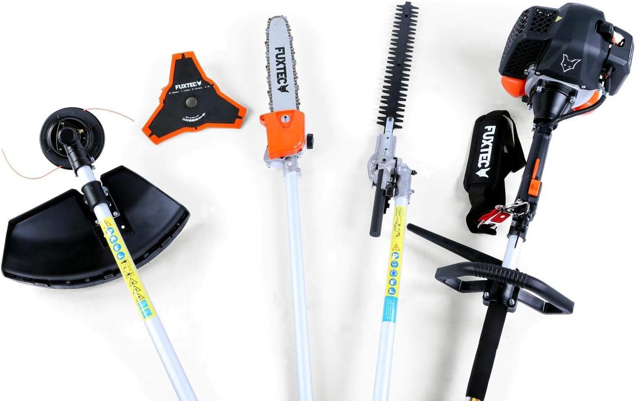 Fuxtec 4 in 1 Multi-Function Petrol Brush Cutter, Hedge Trimmer, Pruning Chainsaw, Lawn Trimmer, Multi-Tool Garden 52cc 2-Stroke Petrol Blend Engine FX-MT152