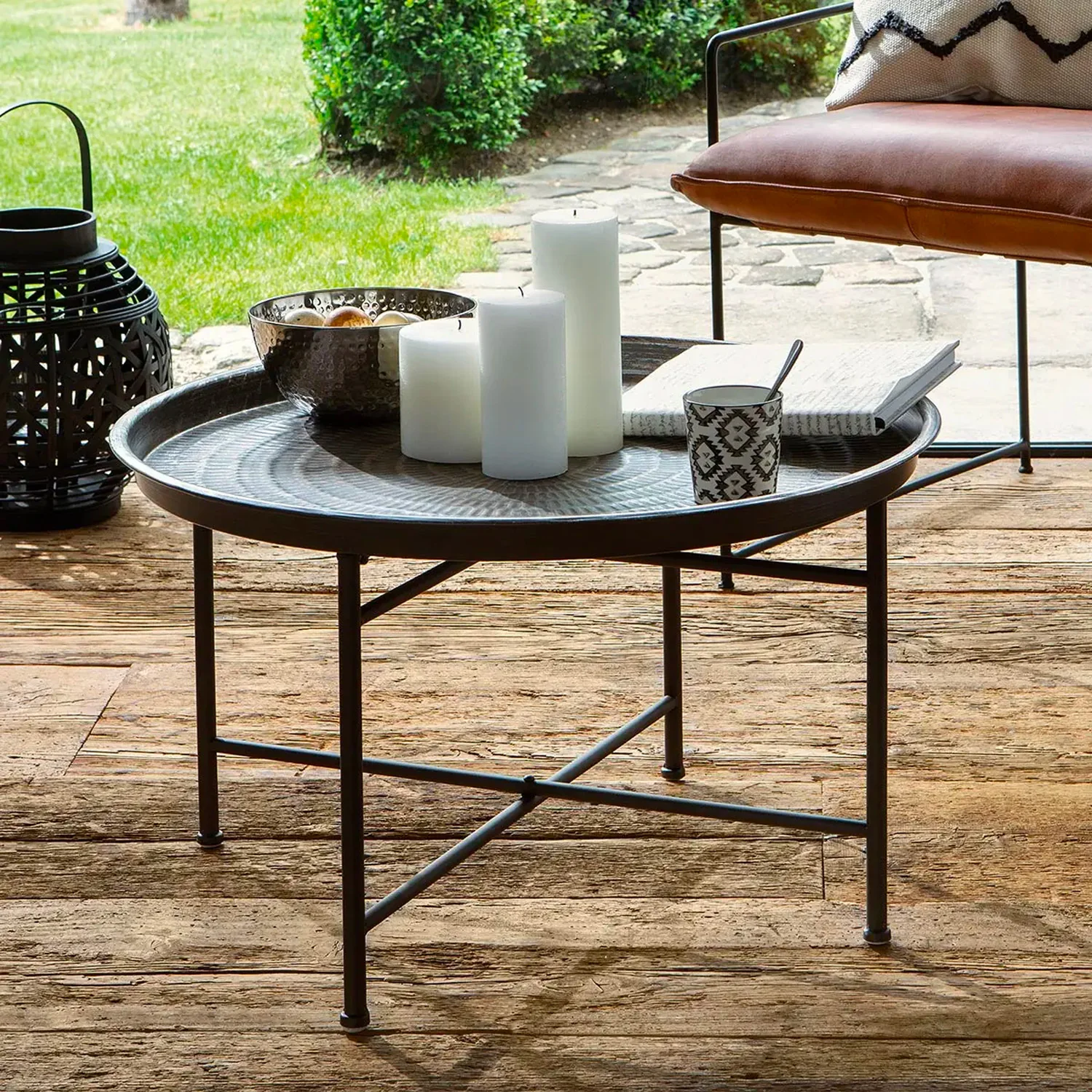 Tavolino Rotondo Con Bordo In Stile Marocchino