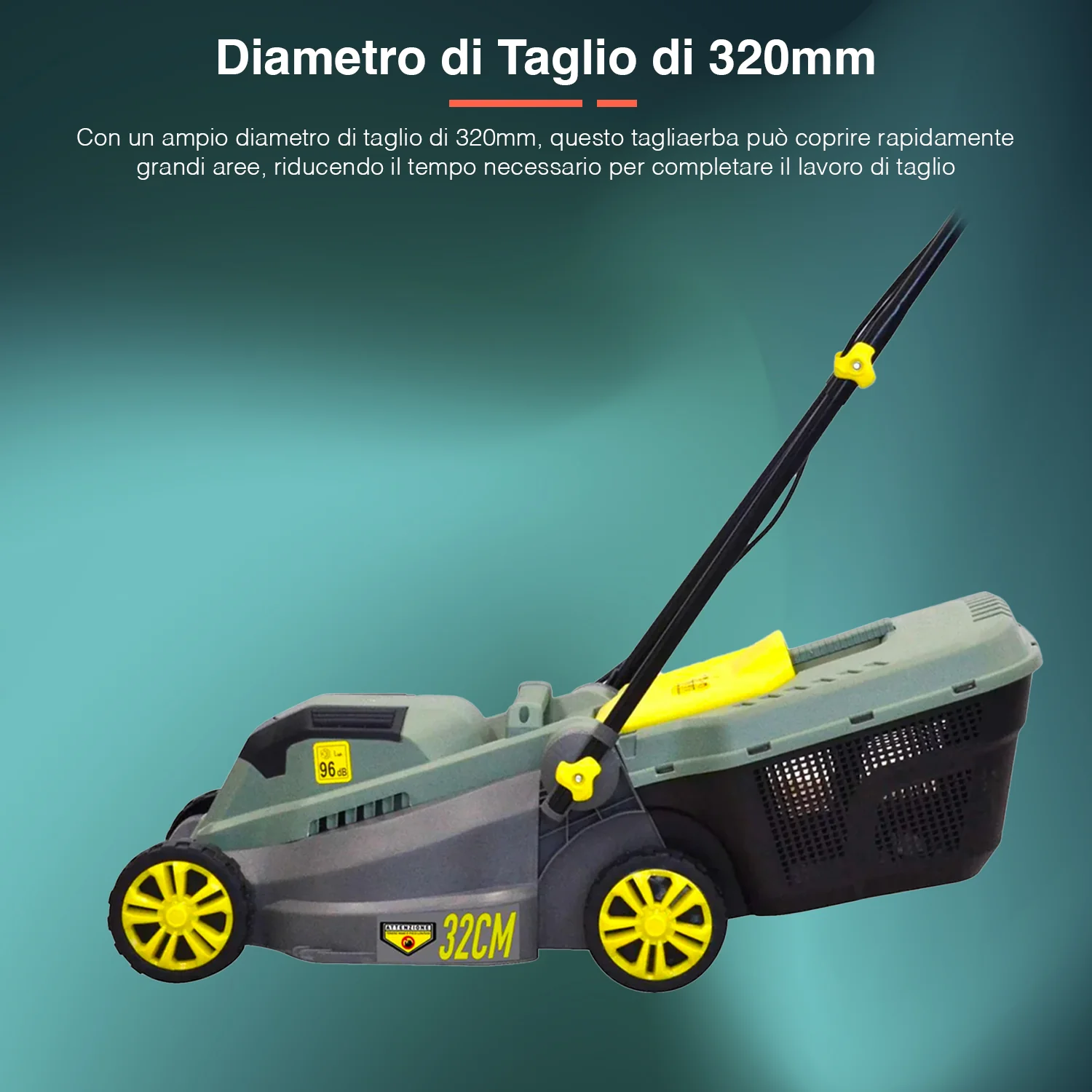 Tagliaerba Elettrico Con Serbatoio 30l E Ruote 14cm 230v - 50hz 1200w