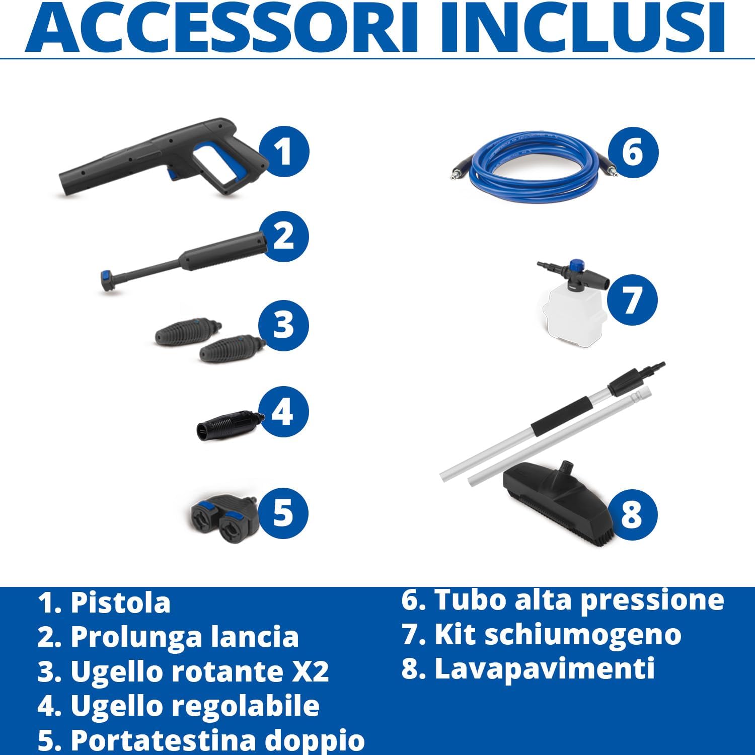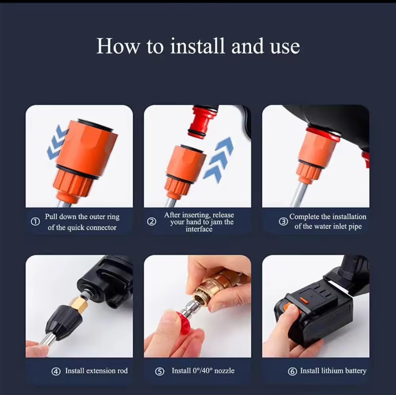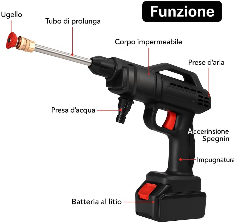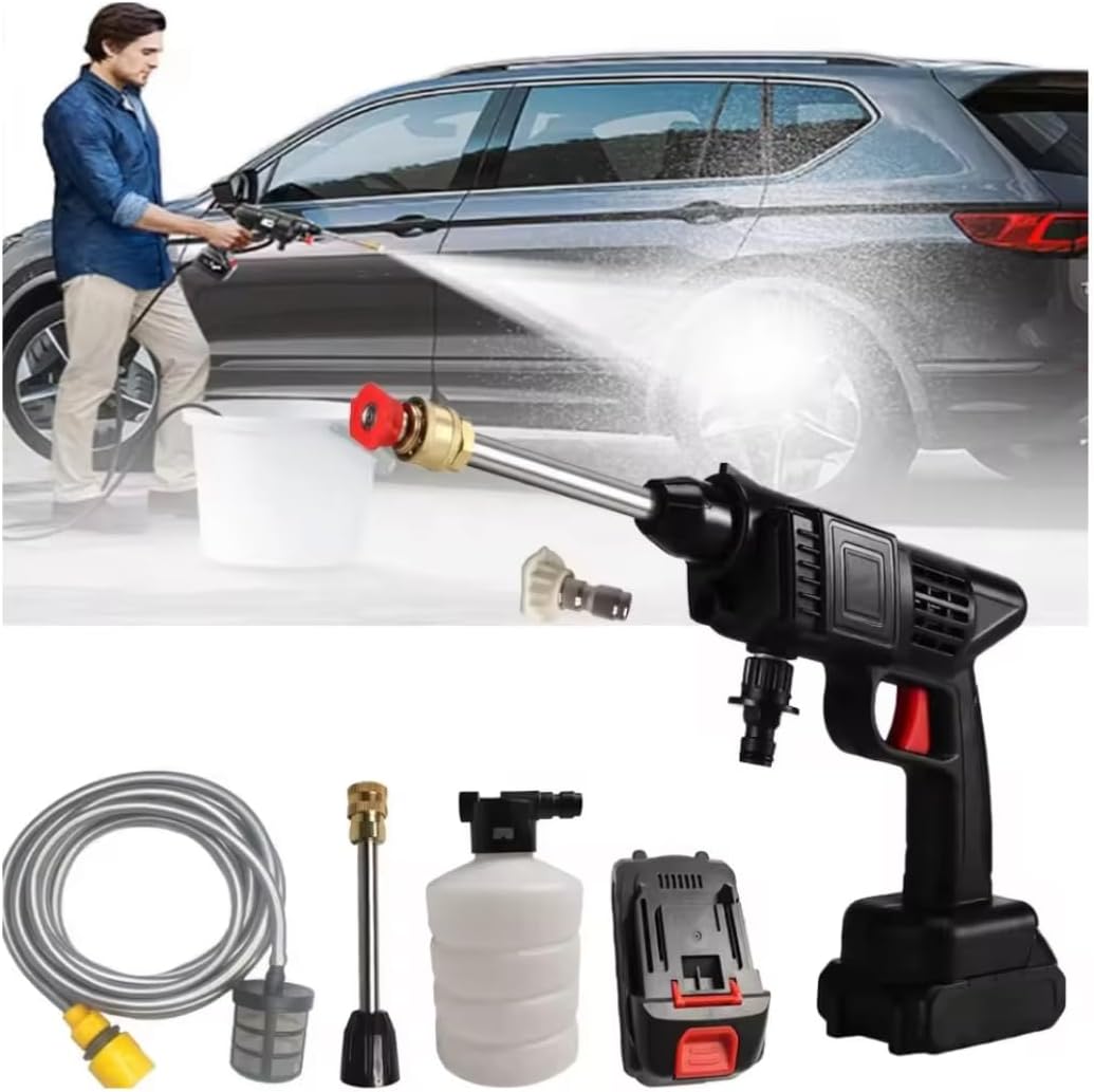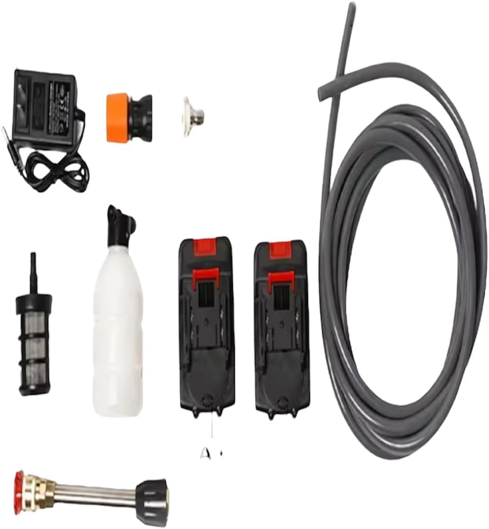 Idropulitrice a Doppia Batteria 48V 8000Mah, Ugello 6 in 1, Idropulitrice Portatile con 2 Batterie e Tubo da 5M, Pulitore ad Alta Pressione Senza Fili per Auto, Giardino, Pavimenti e Esterni