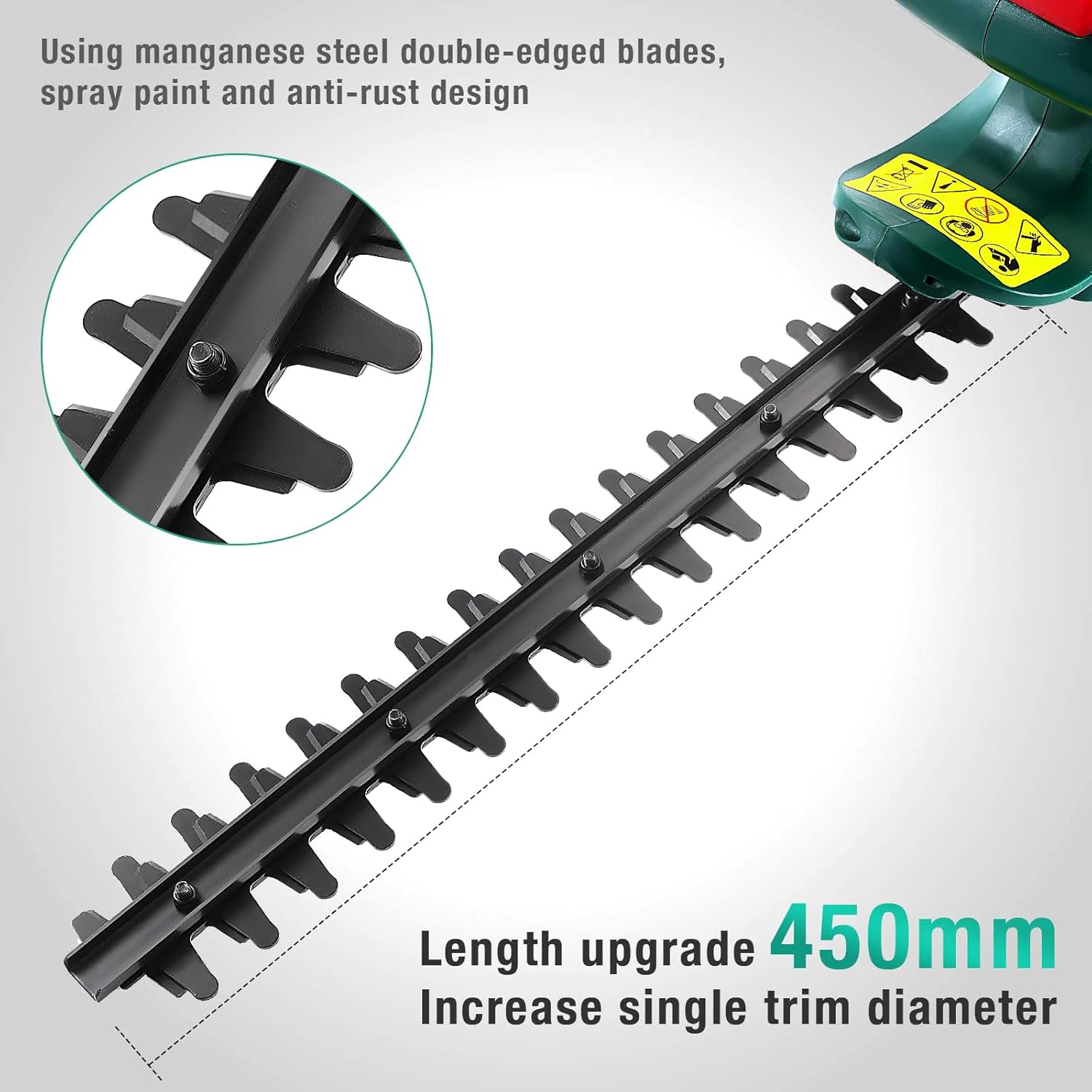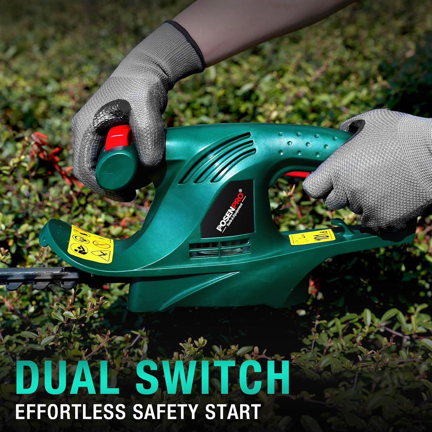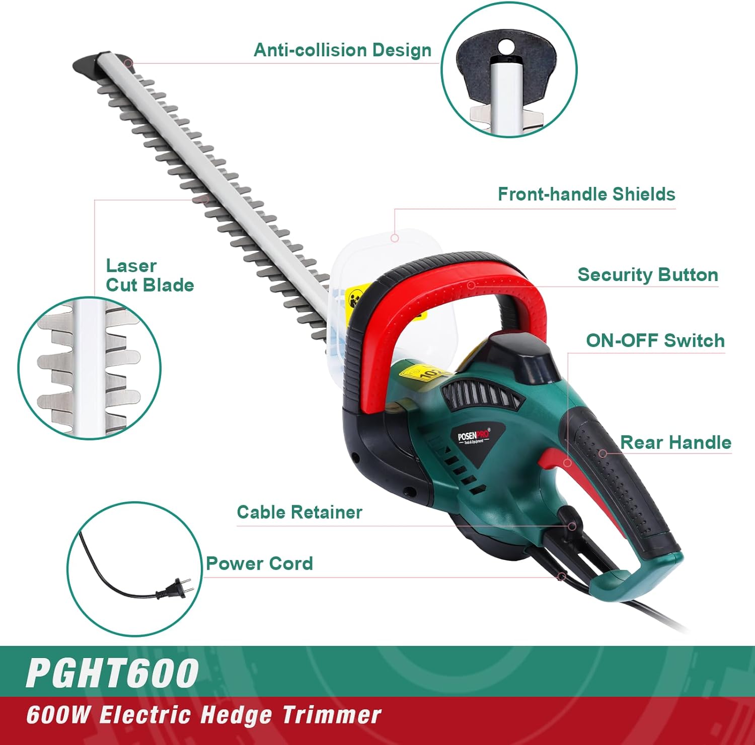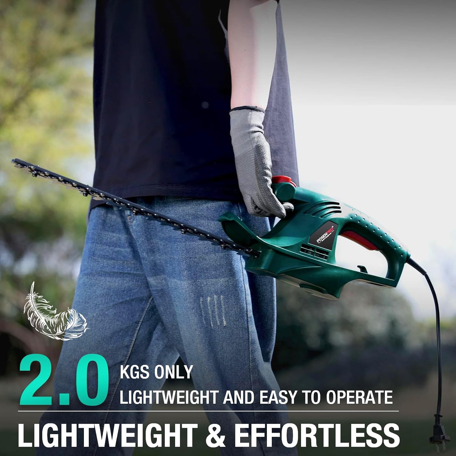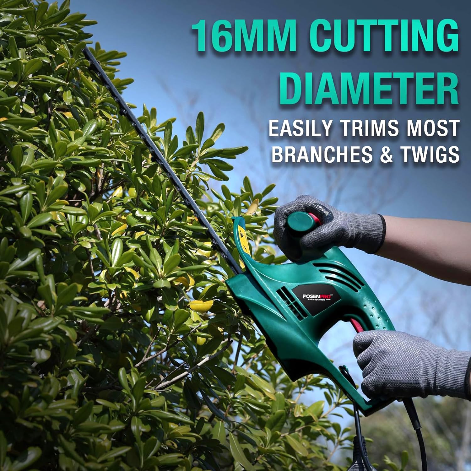 POSENPRO Electric Hedge Trimmer, 450 W, Electric Hedge Trimmer 230-240 V, Blade Length 450 mm, Teeth Distance 16 mm, Super Light 2 kg, Ideal for Pruning Hedges and Shrubs