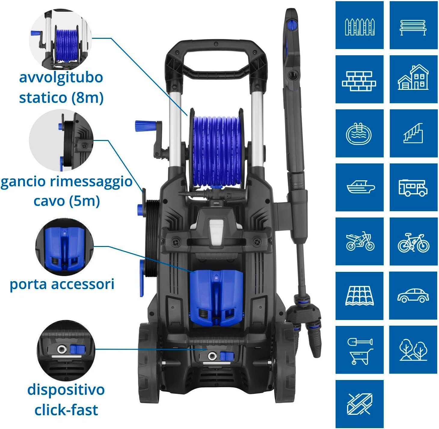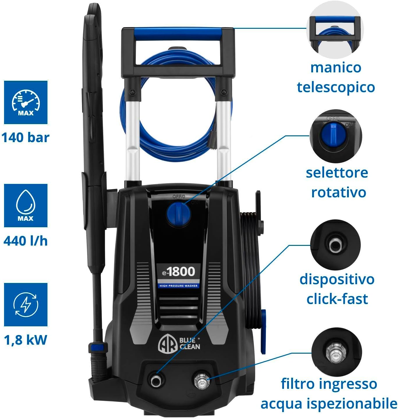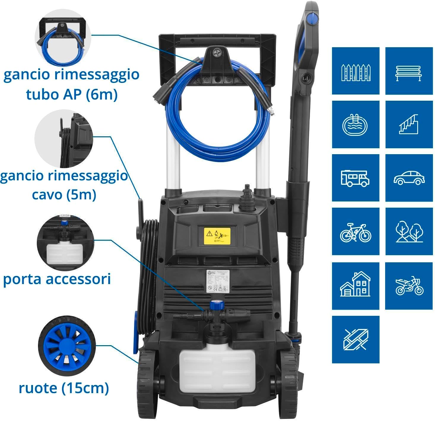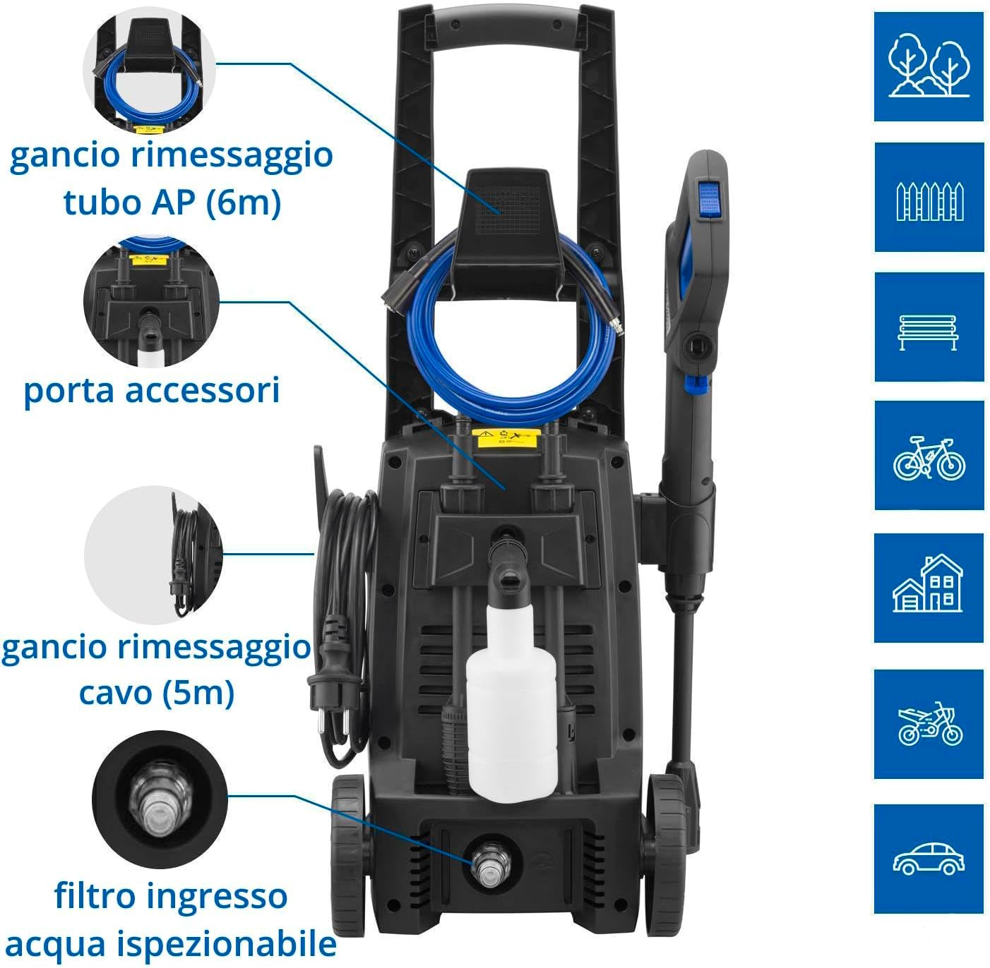 Cecotec Idropulitrice ad alta pressione HydroBoost 1400 Essential. 1400 W, casa, giardino o auto, portata max 426 l/h, pressione massima 105 bar, pompa in alluminio, raggio d'azione 9 m