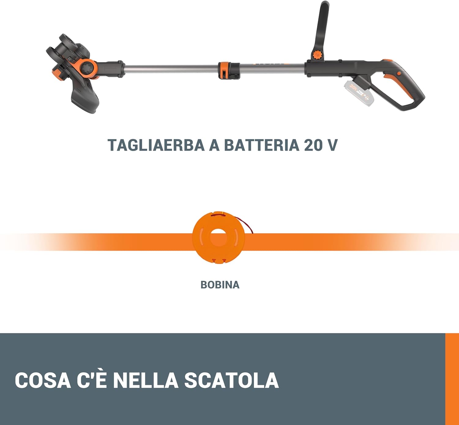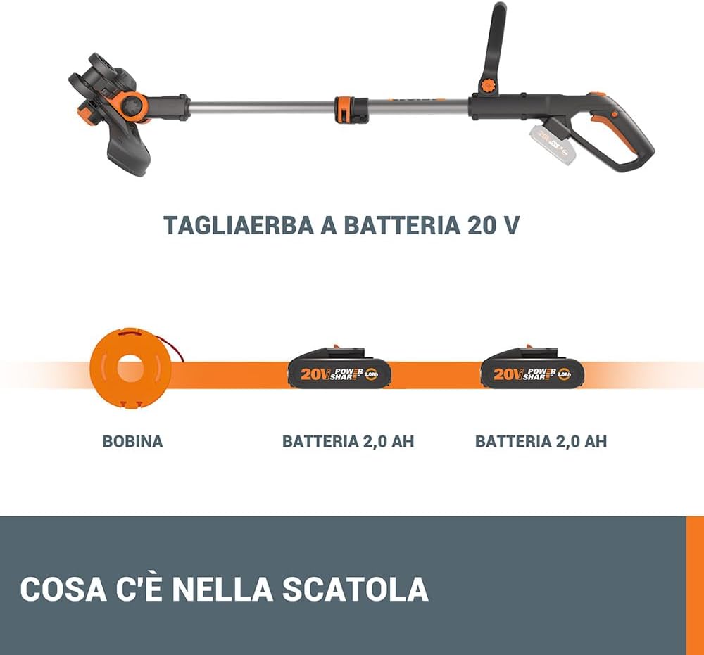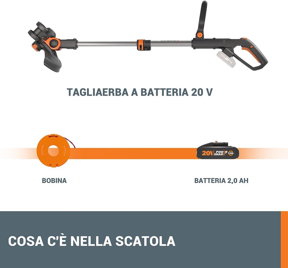 WORX WG163E.9 Cordless Strimmer Trimmer, Cutting Diameter 30 cm, 1 Wire 1.65 mm, 20 V – Machine Body Only without Battery and Charger
