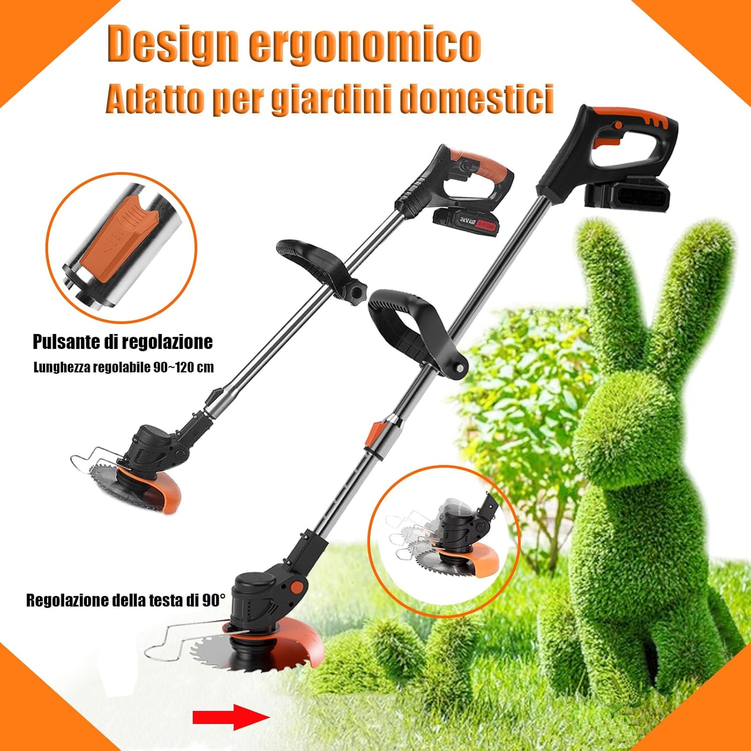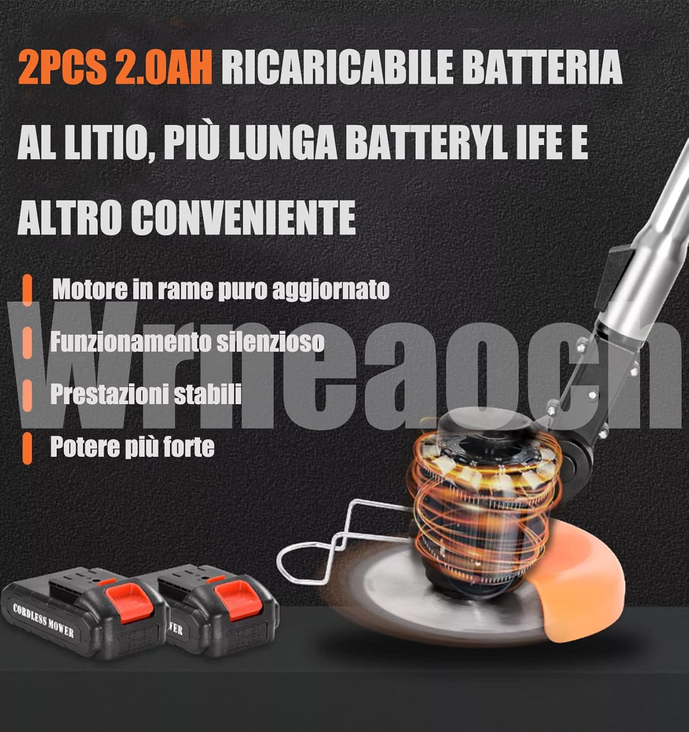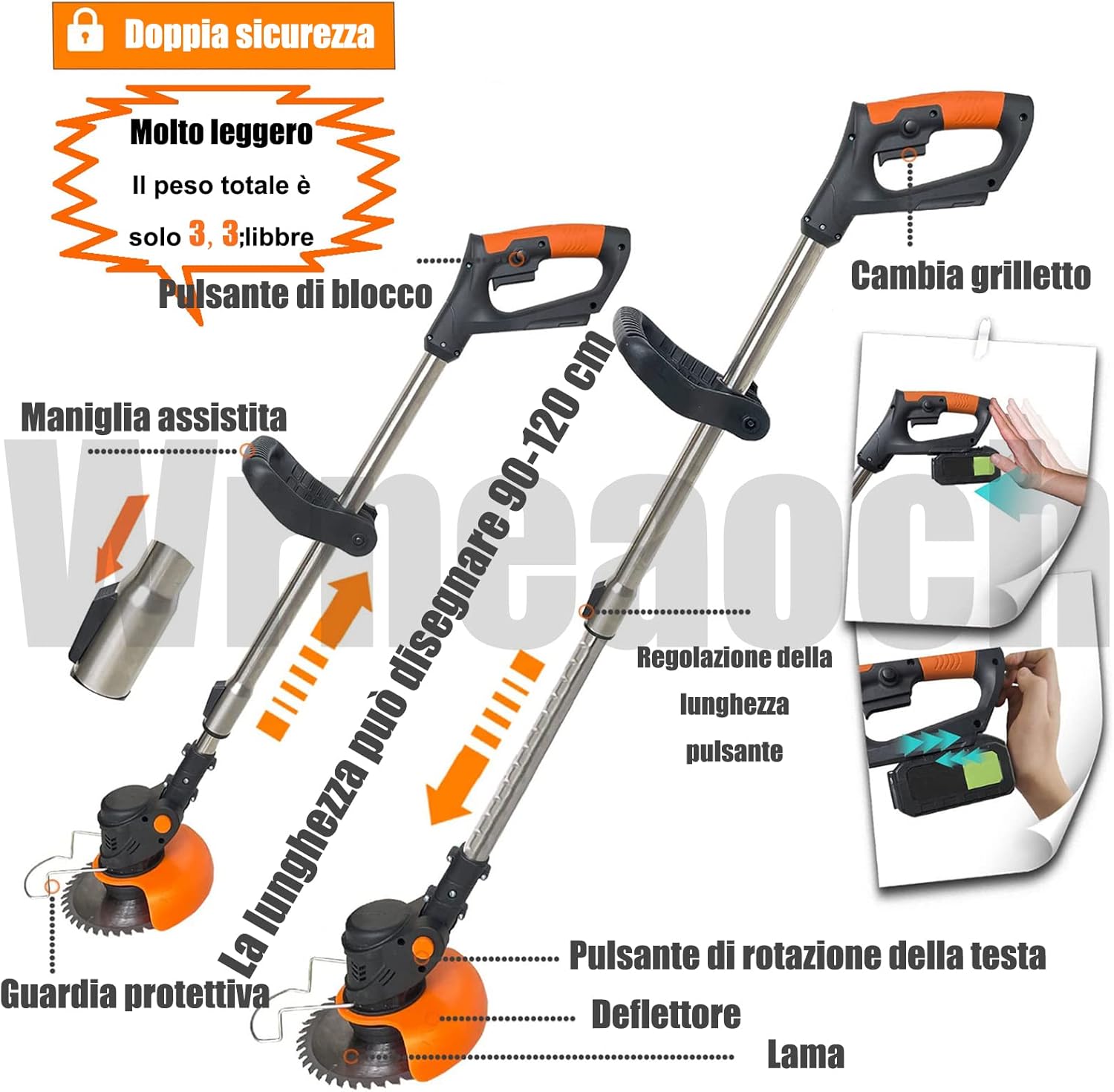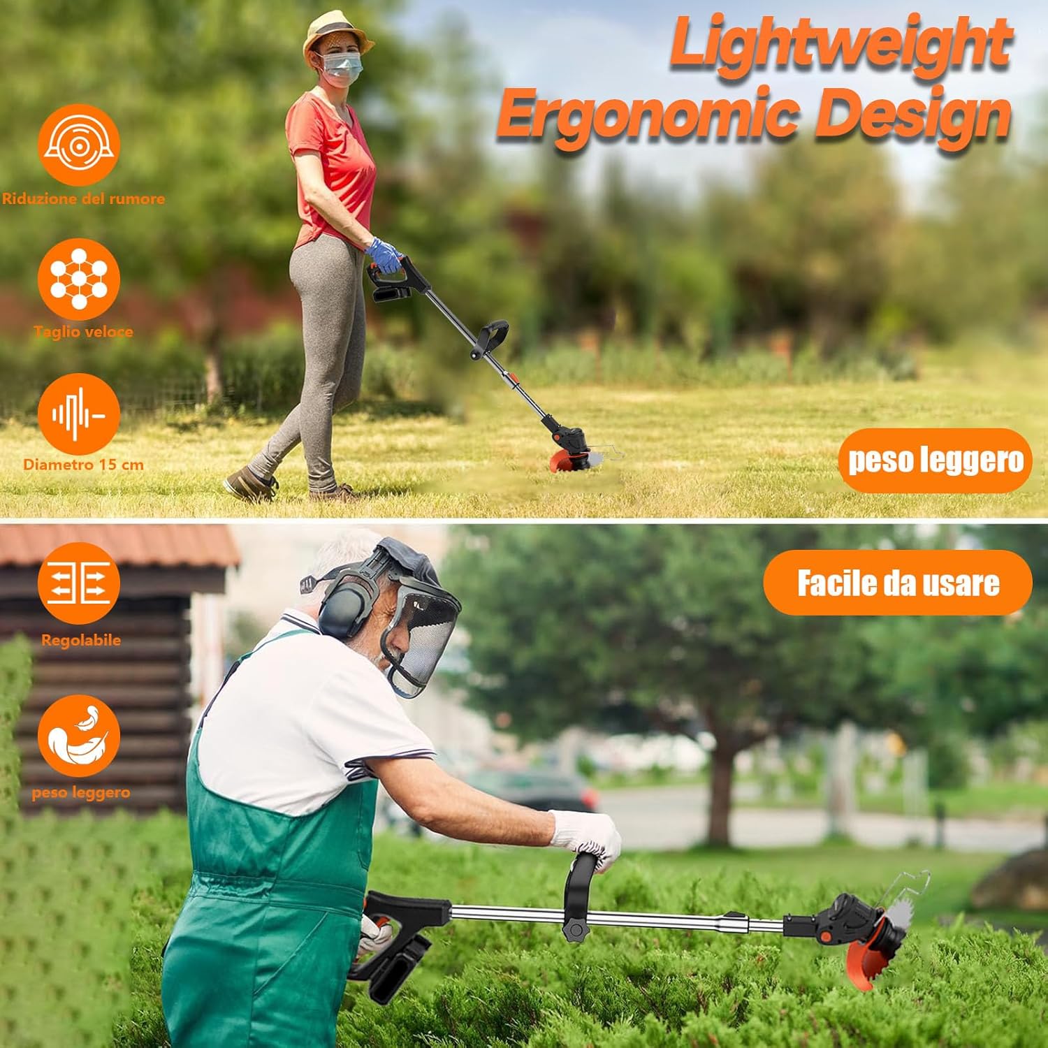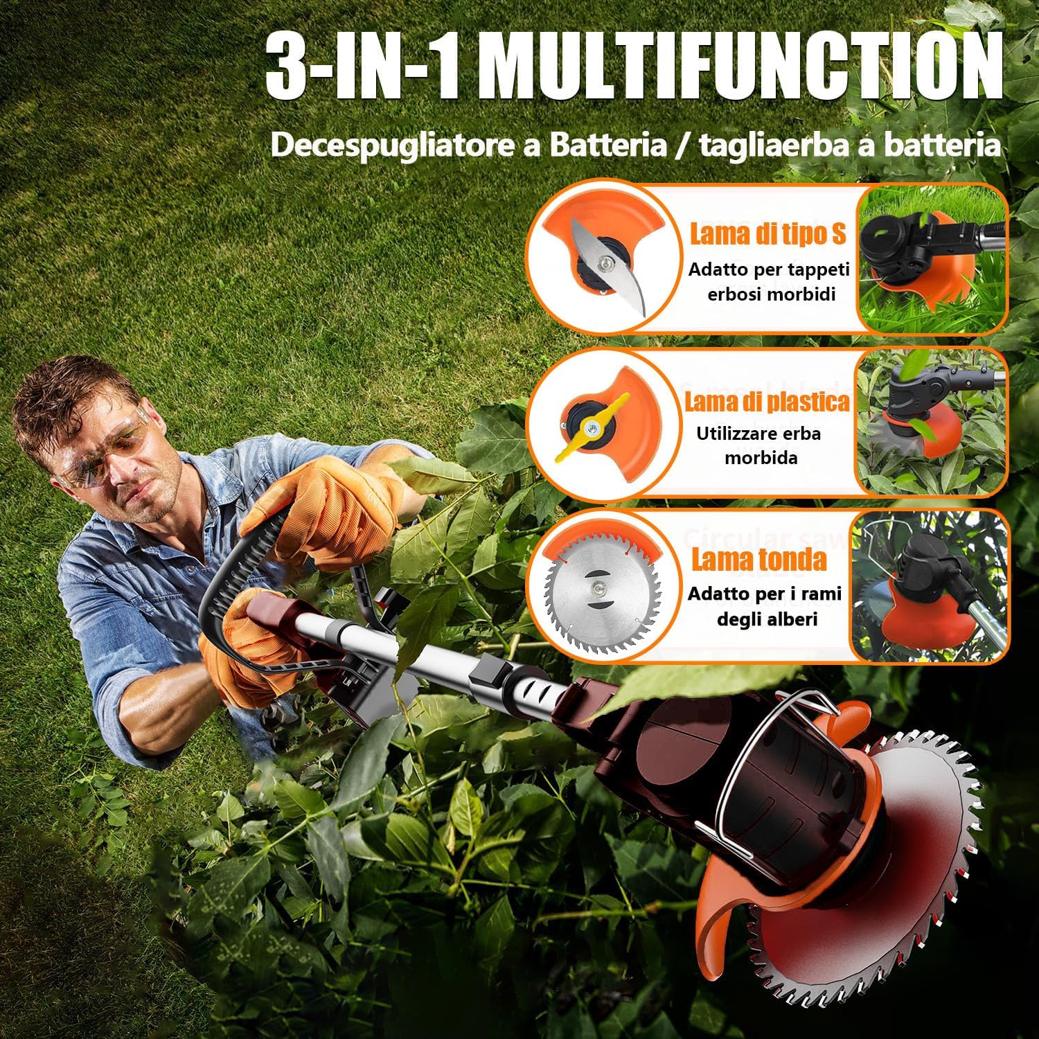 Wrneaoch 21V Decespugliatore a Batteria, 3 en 1 Tagliaerba Elettrico, Tagliaerba a Batteria Testa regolabile e manico telescopico, Decespugliatore Elettrico Leggero per terreni agricoli da giardino