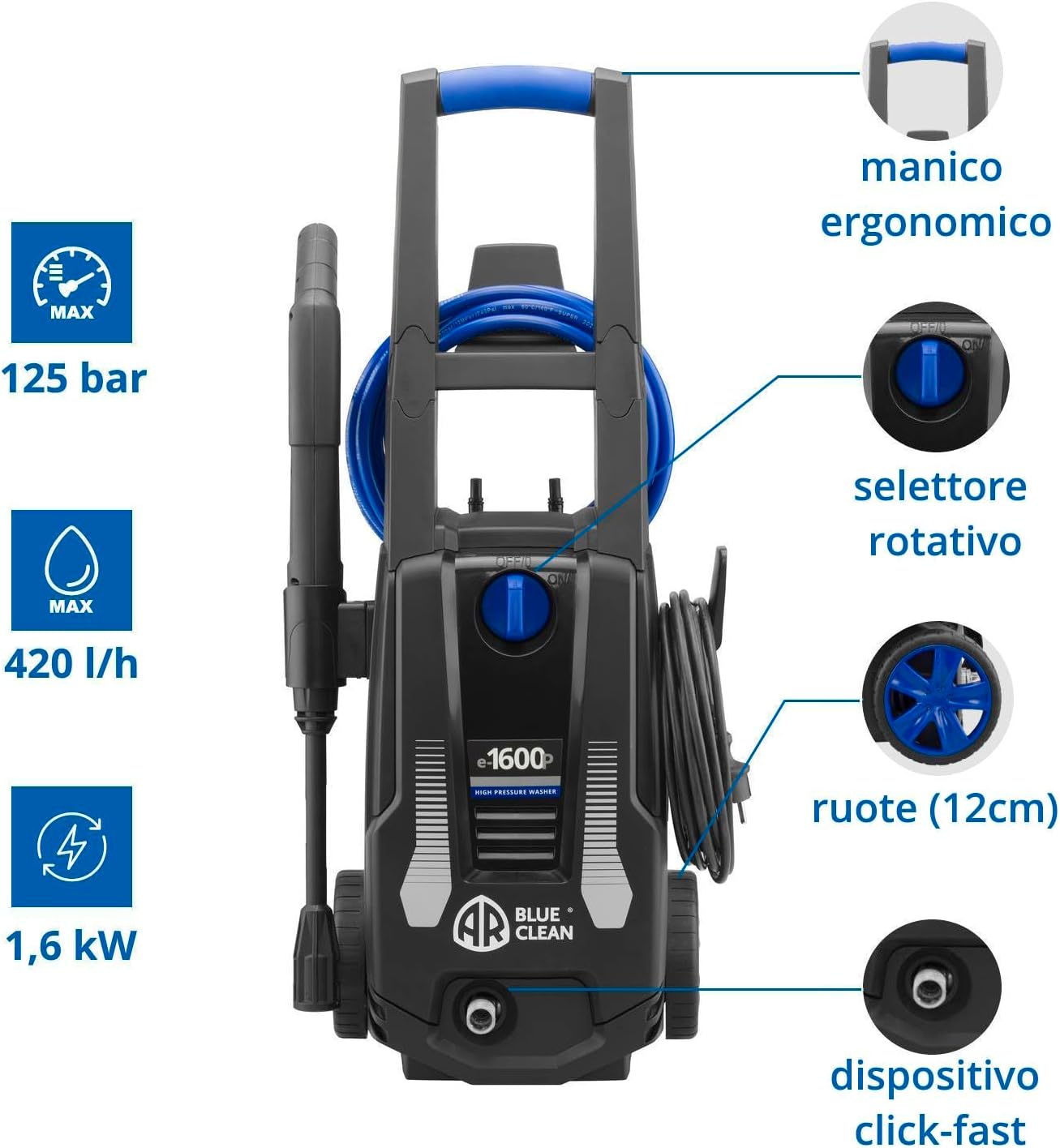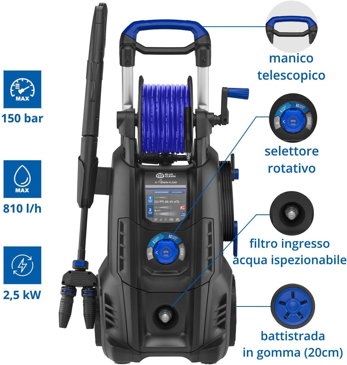 AR Blue Clean High Pressure Washer e-4 TWINFLOW D with Dualtech System and Power Brush (2500 W, 150 bar, 810 l/h)