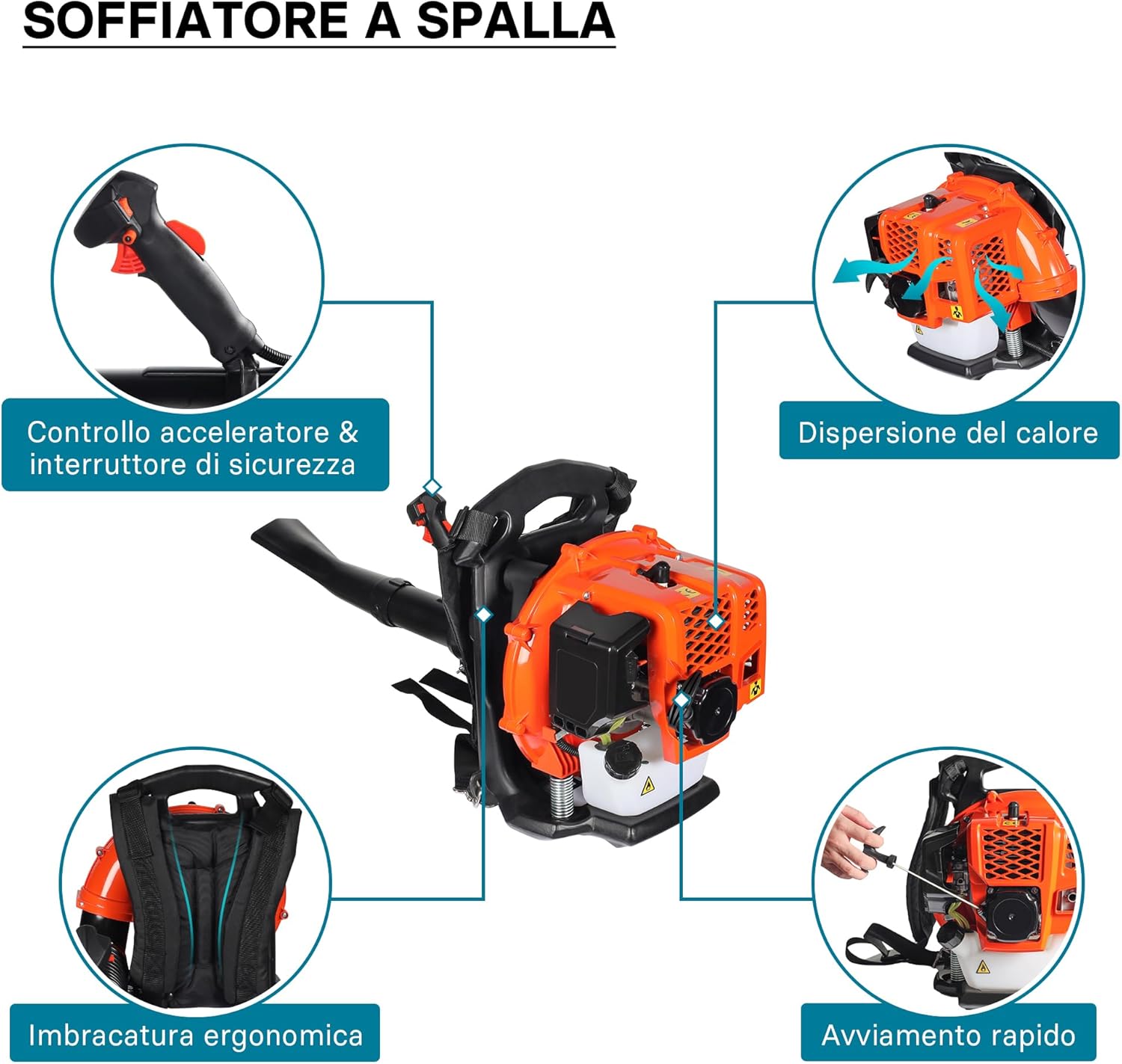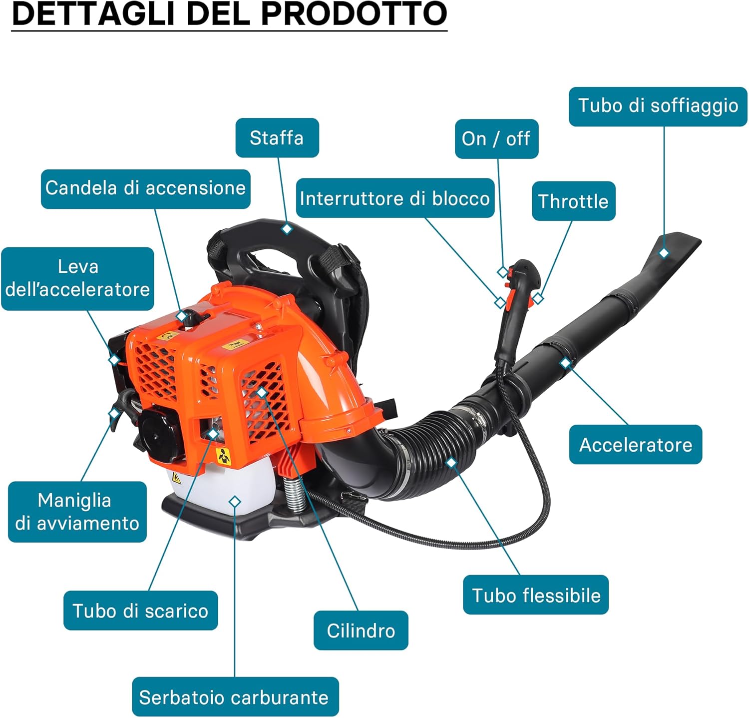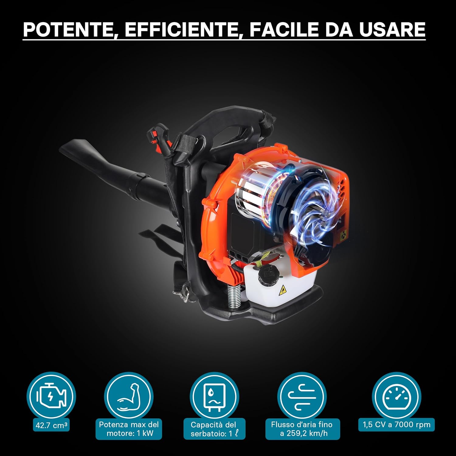 Wiltec Leaf Vacuum, Leaf Blower & Leaf Cutter 3in1 Petrol 1 CV 26 ccm Collection Bag 50 L