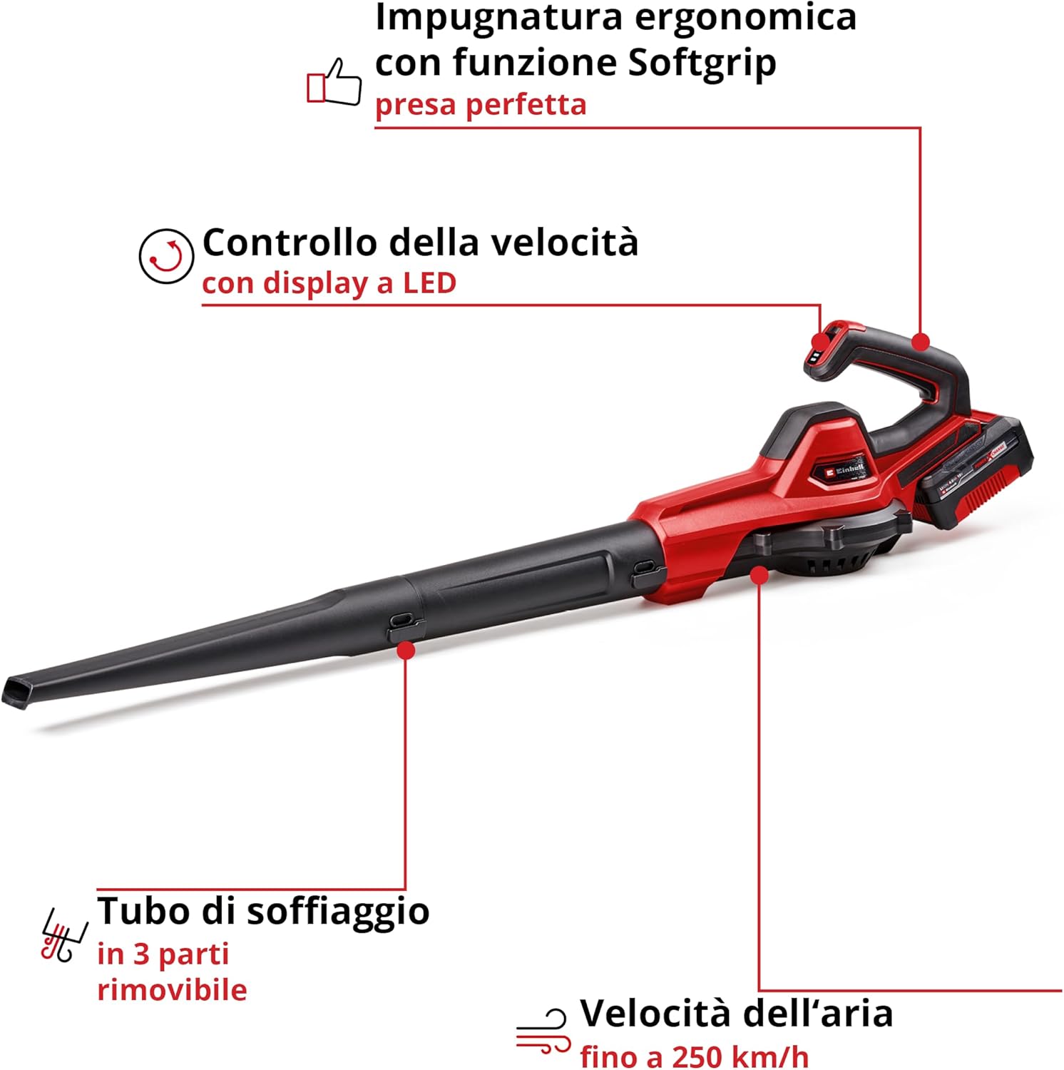 Einhell Universal Battery Blower GE-UB 18/250 Li E (1x4.0Ah) Power X-Change (18V, Air Speed 250km/h, 3 Piece Tube and Speed Control with LED Display, No Battery)
