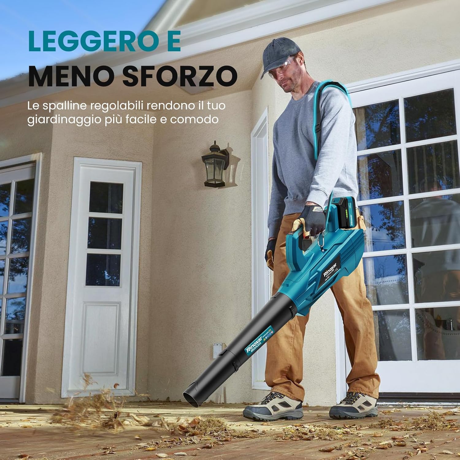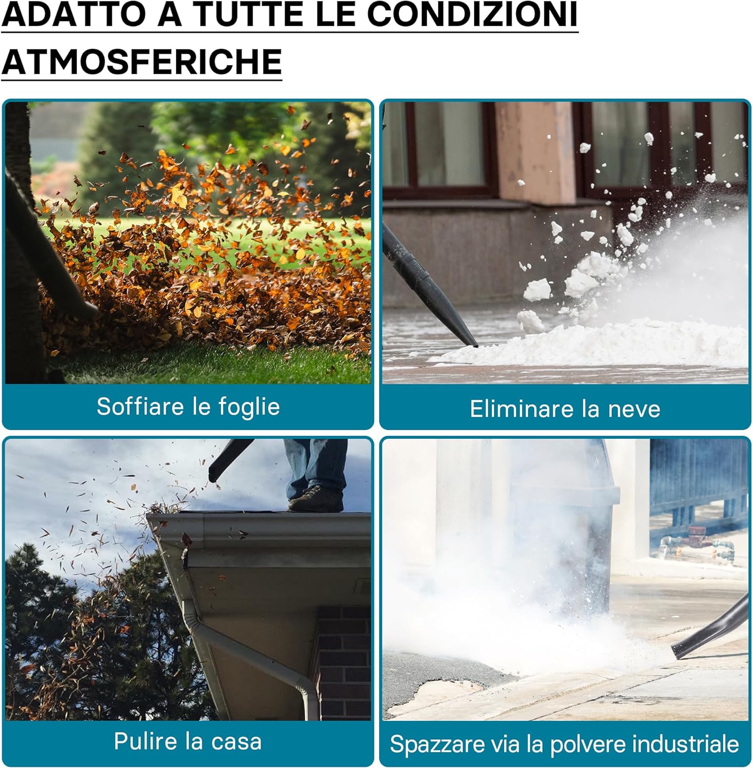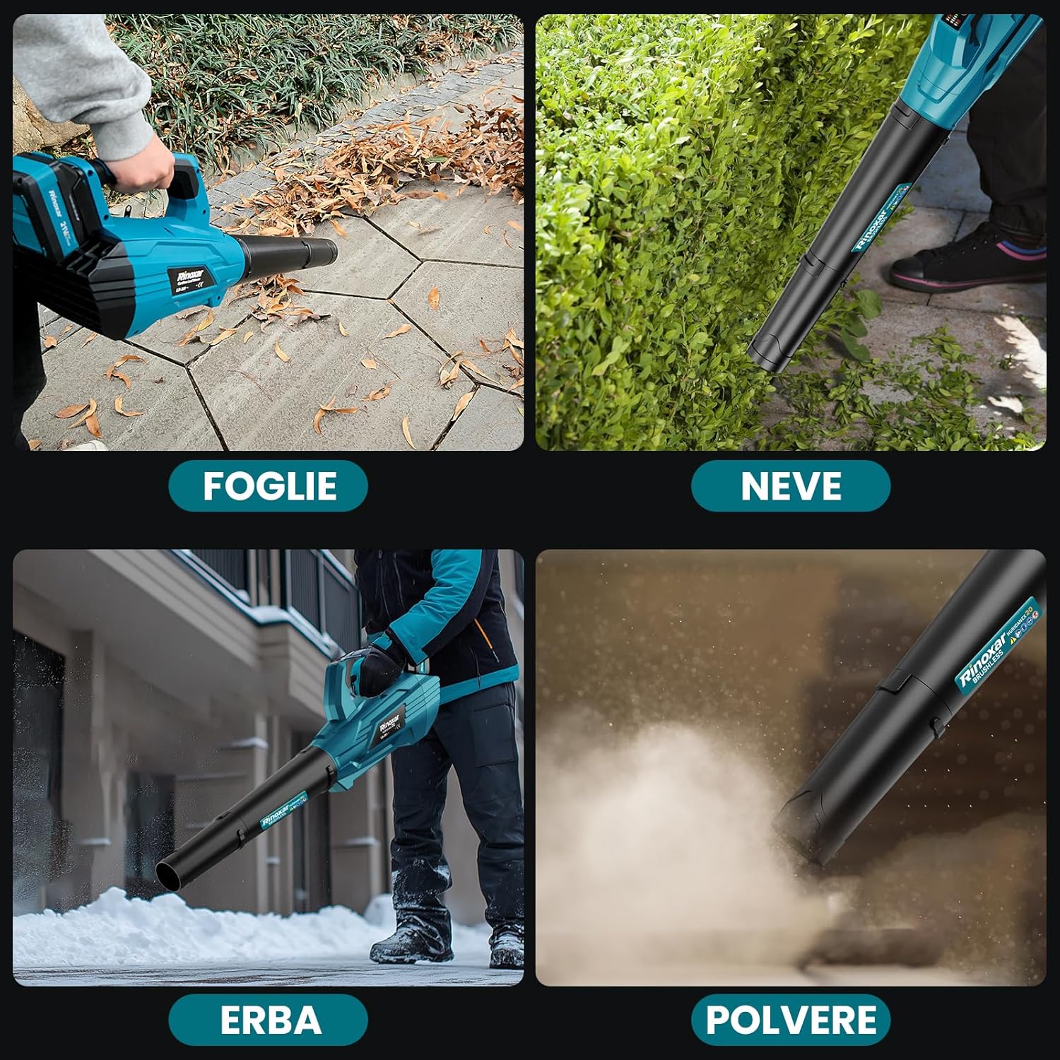 Battery Blower, 5 Speeds Cordless Electric Blower with Brushless Motor, 2 Batteries of 5.2Ah/18 V, 35,000 RPM, Air Speed 180 km/h, Air Flow 800 m³/h, 2 Interchangeable Nozzles