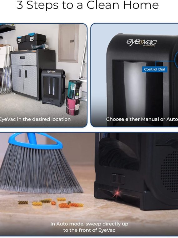 EyeVac Pro 2025 Aspirapolvere automatico Touchless con paletta – Ultra veloce e potente – Ideale per spazzare, peli di animali, cibo, sporco, cucina, aspirapolvere con cavo, senza sacco, sensori automatici, 1400 Watt (nero)