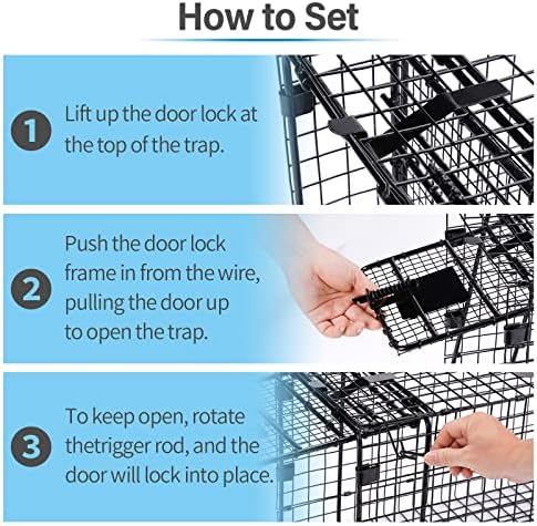 Trappola pieghevole per animali vivi Humane Way da 32 pollici - Trappola sicura per tutti gli animali - Procioni, gatti, marmotte, opossum - 32''x10''x12'' Nero