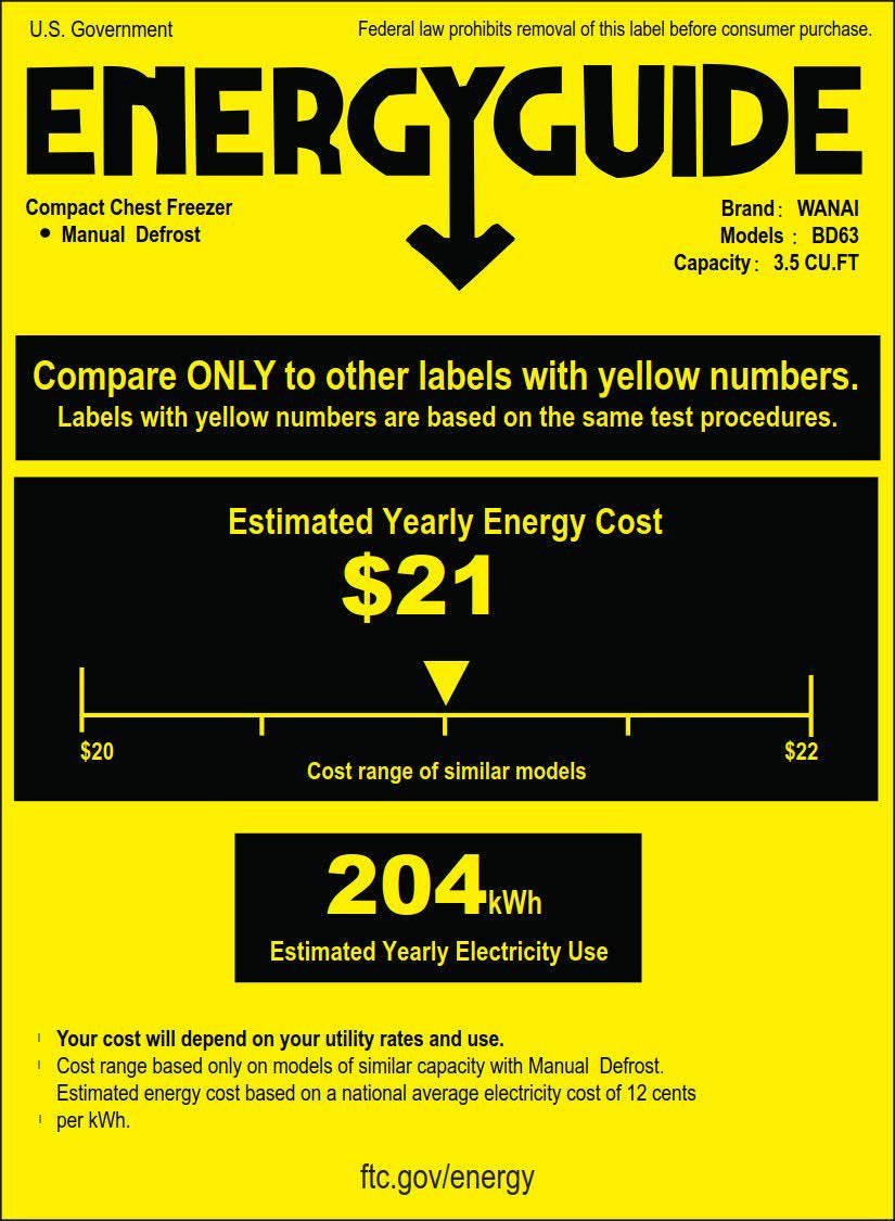 Congelatore a pozzetto Wanai, congelatore profondo da 3,5 cubi con sportello superiore apribile e cestello portaoggetti rimovibile